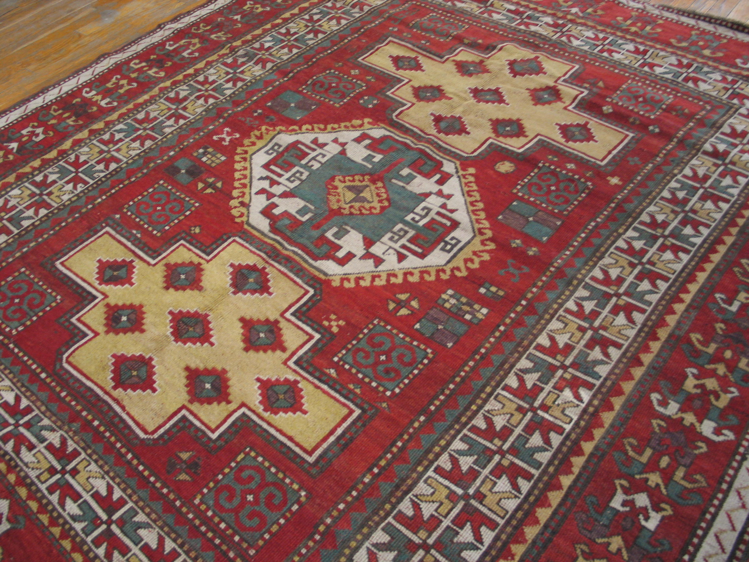 This rug is more than merely a floor covering; it is a meticulously preserved artifact of textile history, displaying the powerful, earthy palette and intricate knotting techniques of the Caucasus. It represents a rare opportunity for collectors seeking authentic provenance and exceptional visual impact, joining our curated selection of exemplary antique rugs.