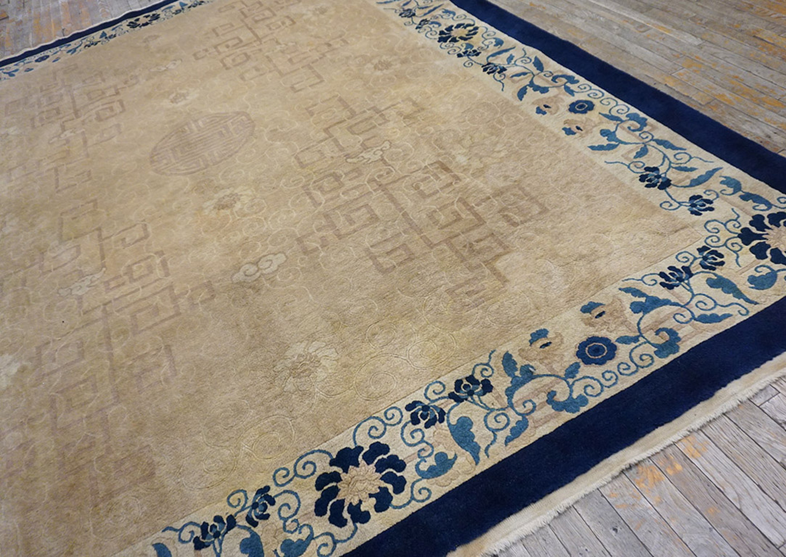 1920s Chinese – Peking Ivory Knotted Antique Rectangle Room Size Wool Rug