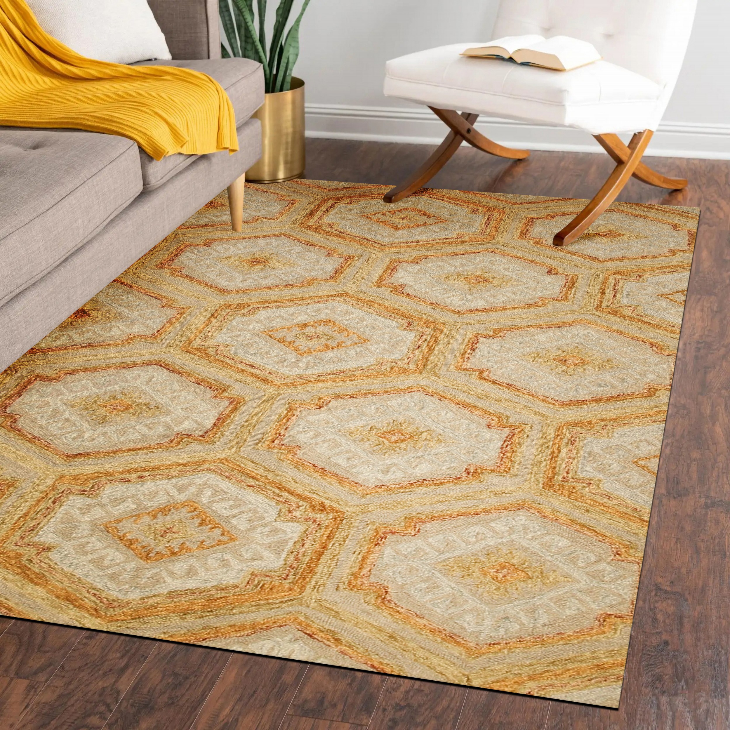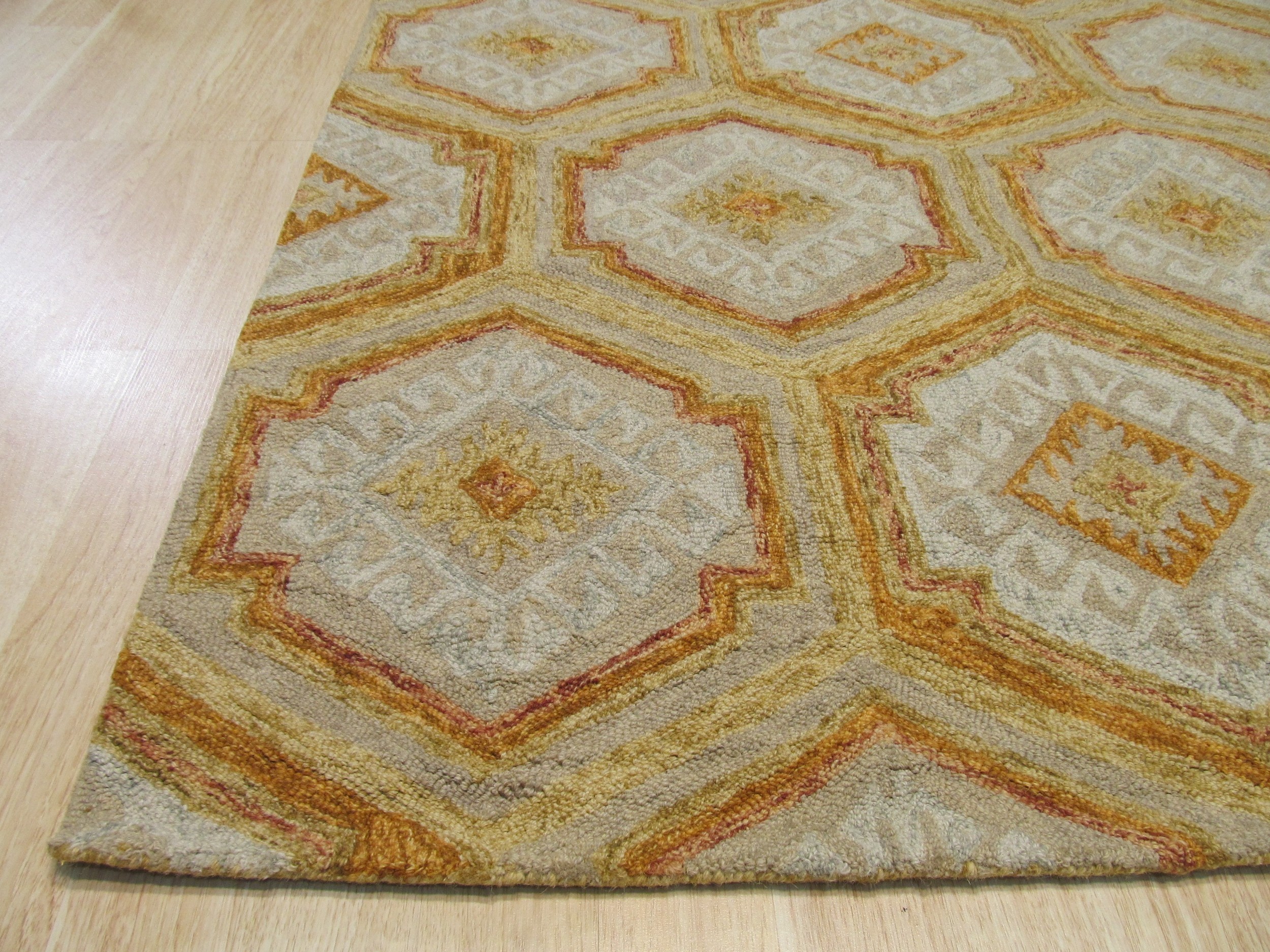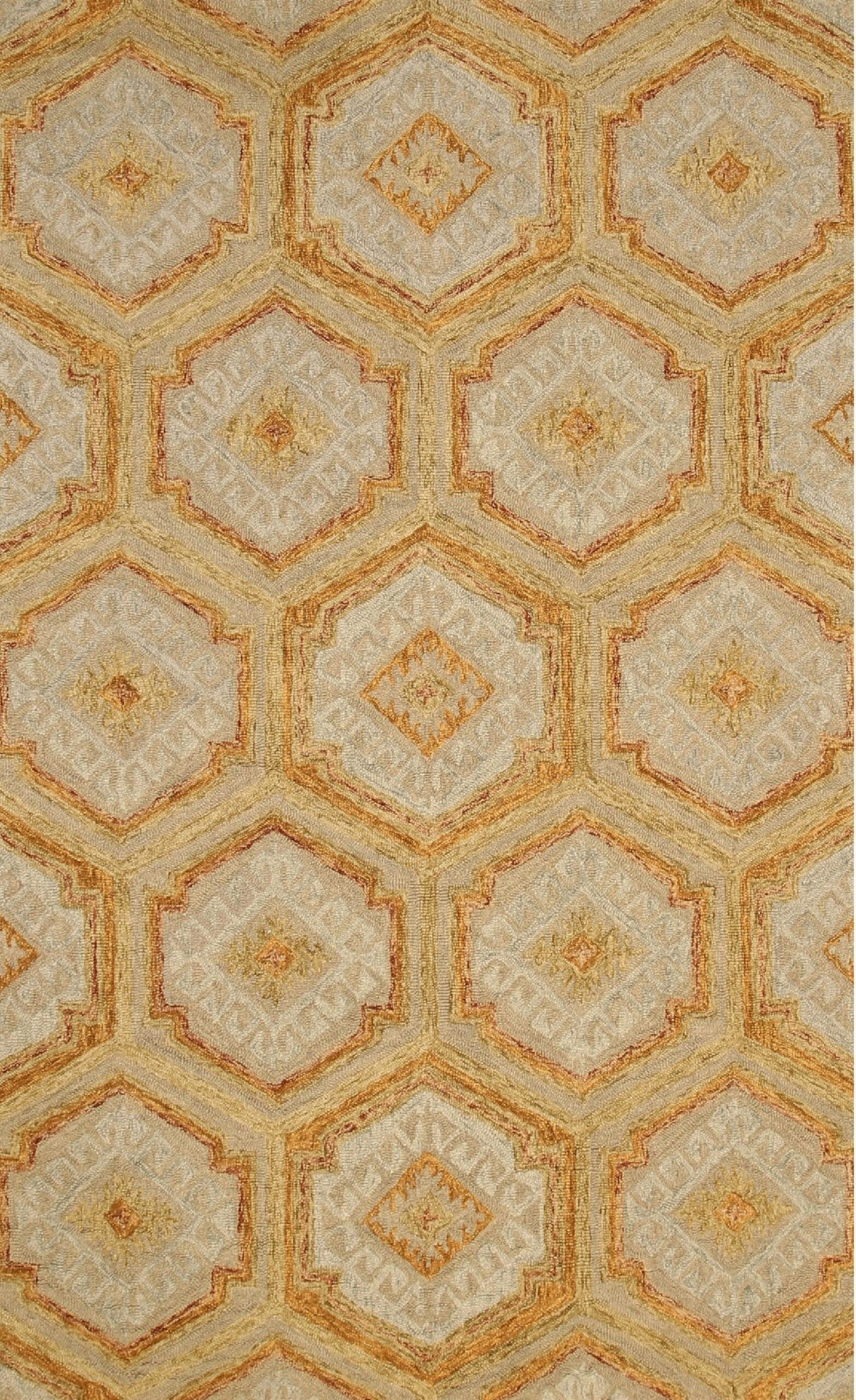 Alluring Laine Gold Hand Tufted Wool Rug, Country of Origin: India. This contemporary piece offers a refined interpretation of classic geometric motifs, expertly crafted in the tradition of Indian rugs. The hand-tufted construction ensures a luxurious, dense pile that provides both comfort and durability, making it suitable for high-traffic areas.