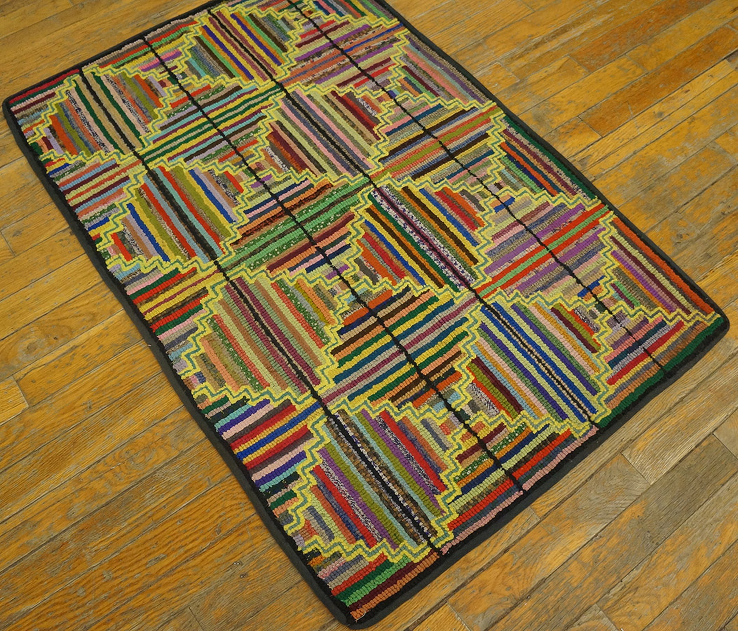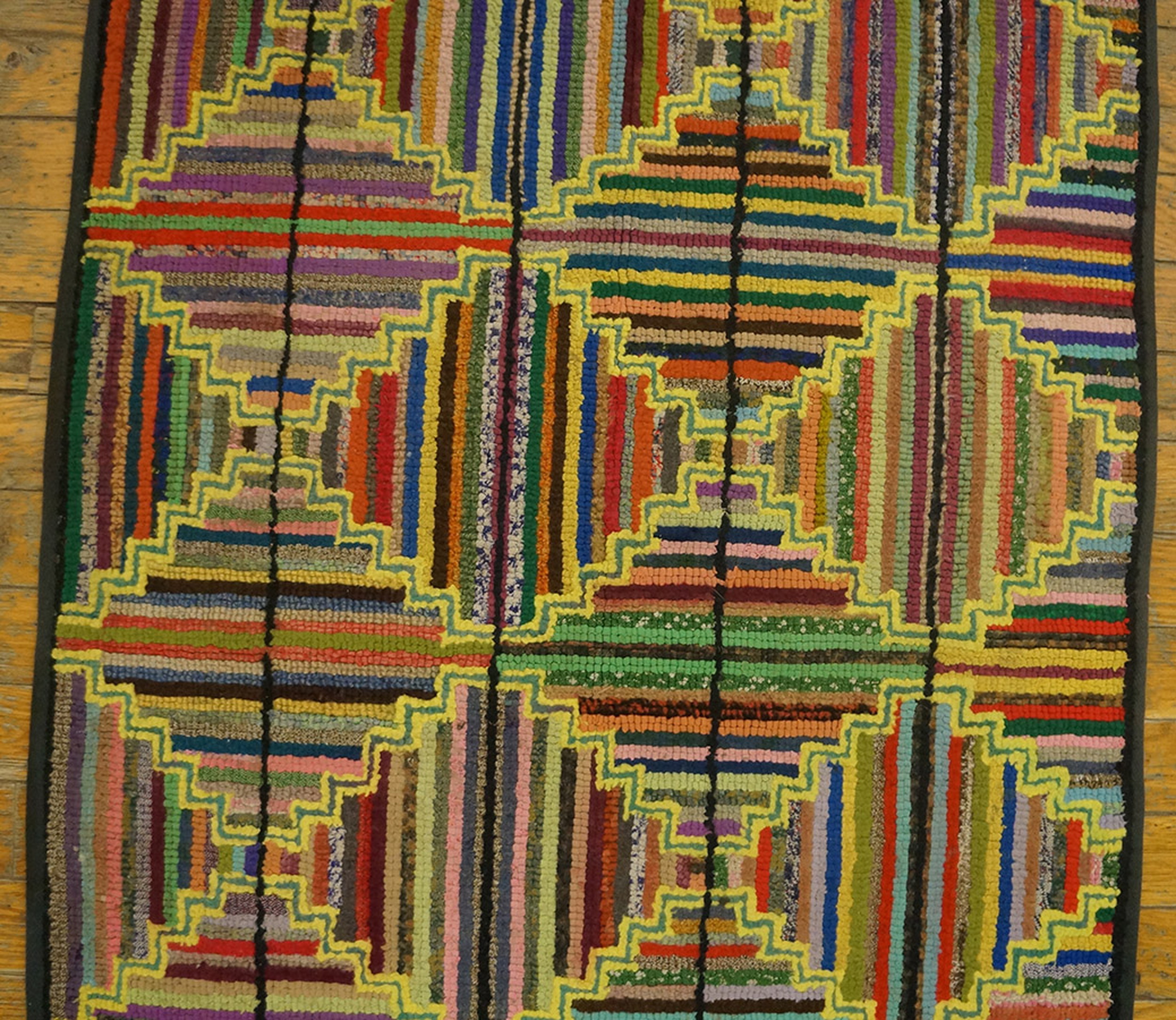 The deliberate use of variegated and salvaged materials typical of the 1930s gives this rug its unique character and depth of color saturation, emphasizing its origin as a piece of functional art. Such pieces are highly prized by collectors of early 20th-century Americana and represent a significant contribution to the broader history of antique rugs.