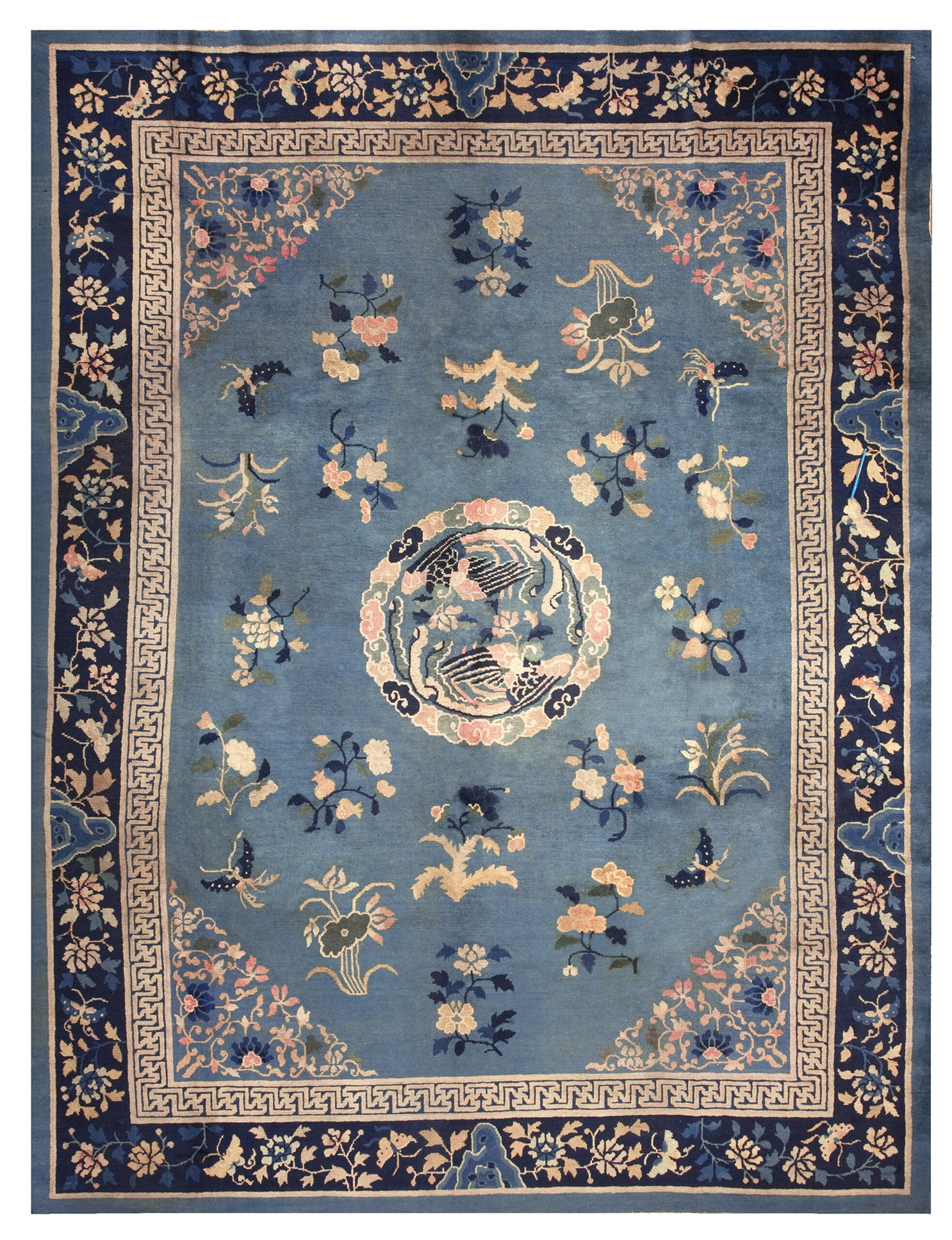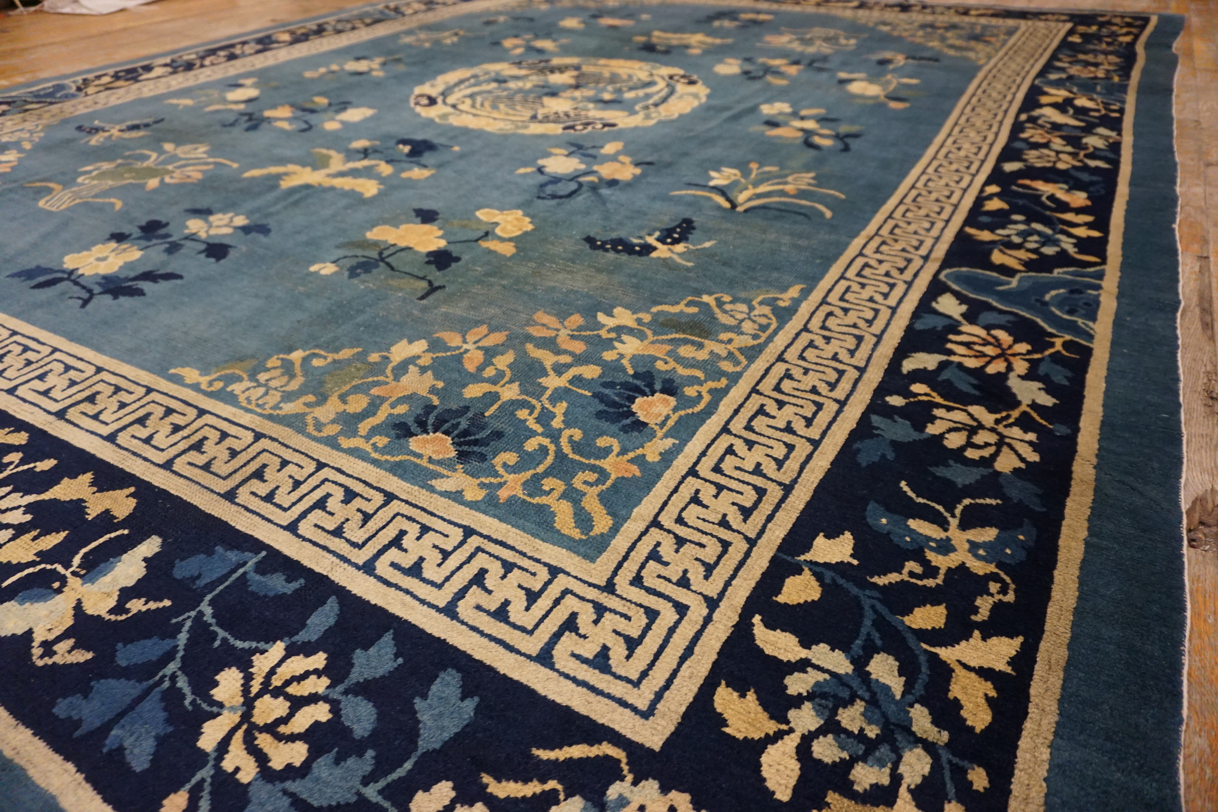 The craftsmanship evident in the tight knotting and detailed borders—including the classic Greek key inner guard band—speaks to the skill of the Peking weavers. This piece is not merely a floor covering but a significant example of antique rugs history, offering enduring elegance and a tangible connection to the cultural aesthetics of the early Republican era in China.