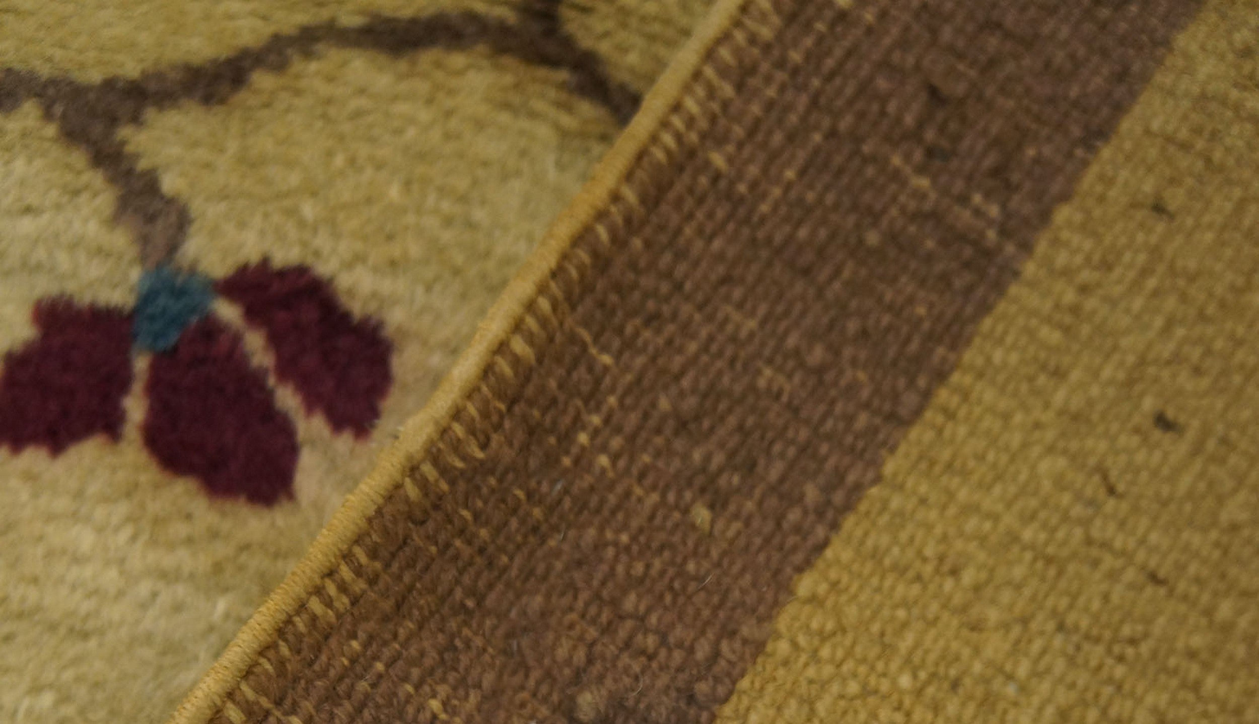 Due to its unique shape and medium dimensions, this rug serves as an exquisite focal point, ideal for defining a seating area or anchoring a sophisticated entryway. Its muted tones and artistic detailing ensure seamless integration into both period and contemporary settings. While not strictly a full room size rug, its presence is substantial enough to command attention in a refined living space.