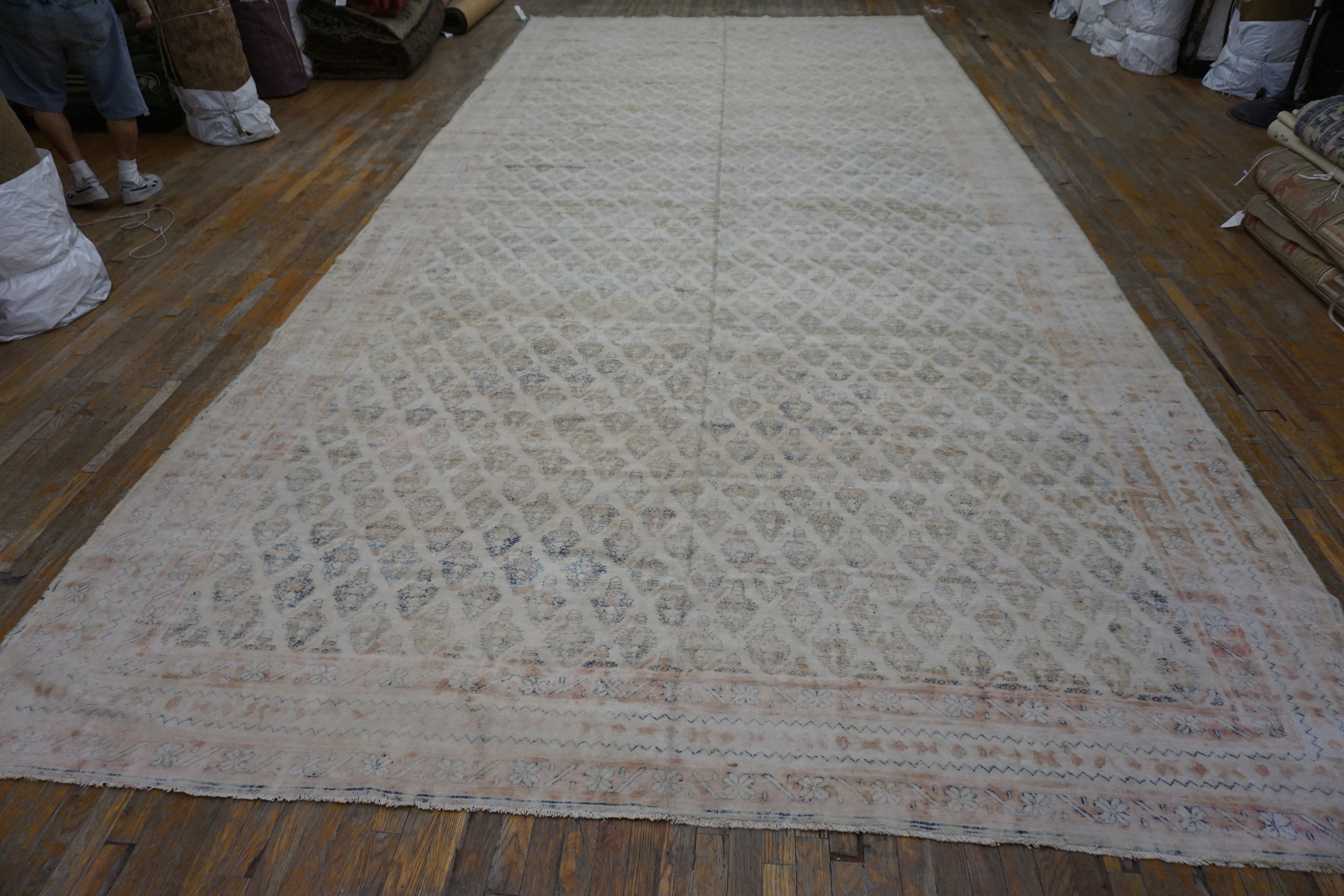 Measuring an exceptional size, this textile falls squarely into the category of room size rugs, designed to anchor large drawing rooms or formal dining spaces. The elongated dimensions and airy coloration ensure that the rug enhances the perceived spaciousness of a room rather than overwhelming it, making it ideal for contemporary or classical settings demanding expansive coverage.