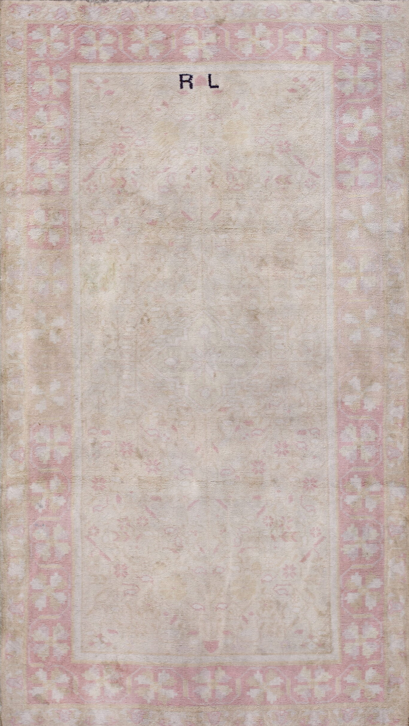 The primary field utilizes a sophisticated blend of ivory beige cream white tones, creating a luminous and versatile foundation suitable for contemporary or traditional interiors. Subtle accents of faded rose and blush define the delicate border, providing a gentle contrast without overwhelming the neutral field.