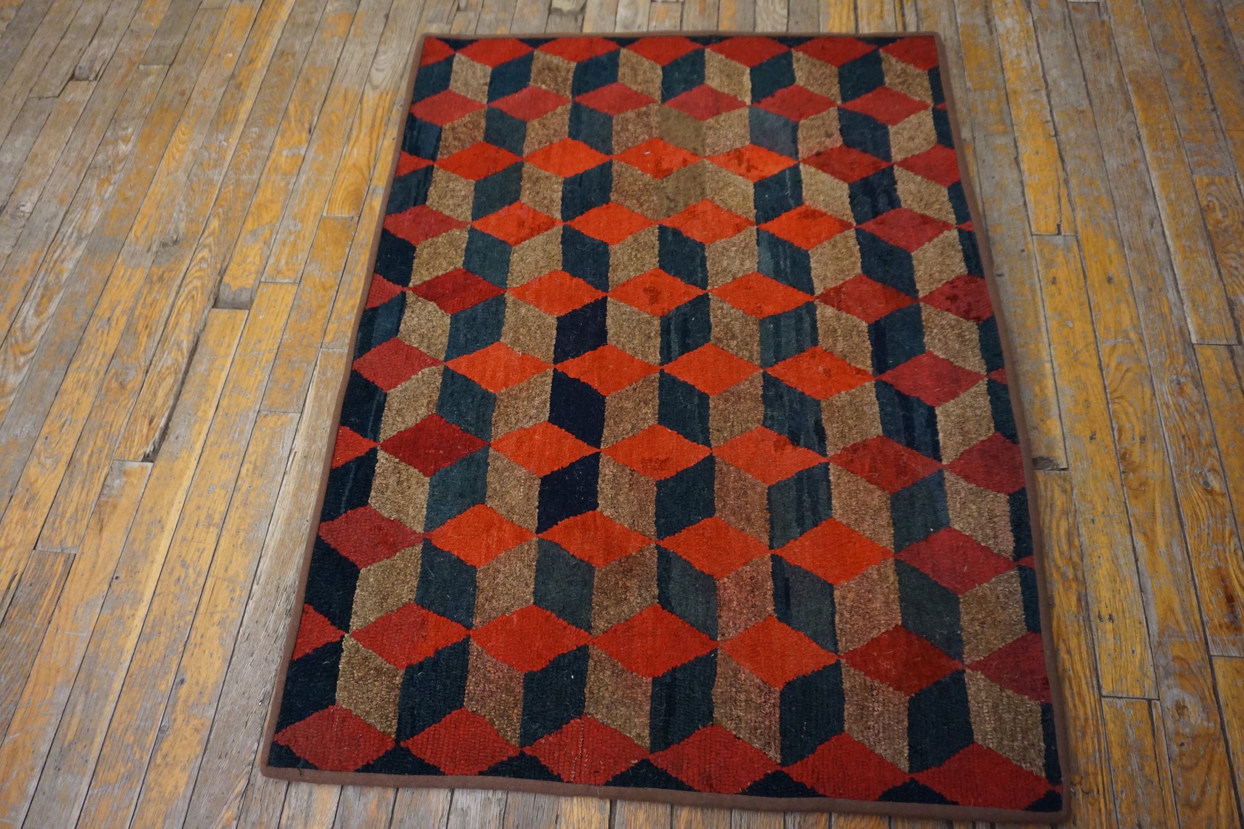 Antique Allover Geometric Wool & Cotton Hooked – Loop Pile Multicolor Jewel Tones 1925 Rug, Circa Date: 1925. This exceptional textile represents a fascinating period in American folk art, utilizing the robust hooked technique. As a superb example of antique rugs, its construction of wool and cotton ensures both durability and a compelling, textural surface.