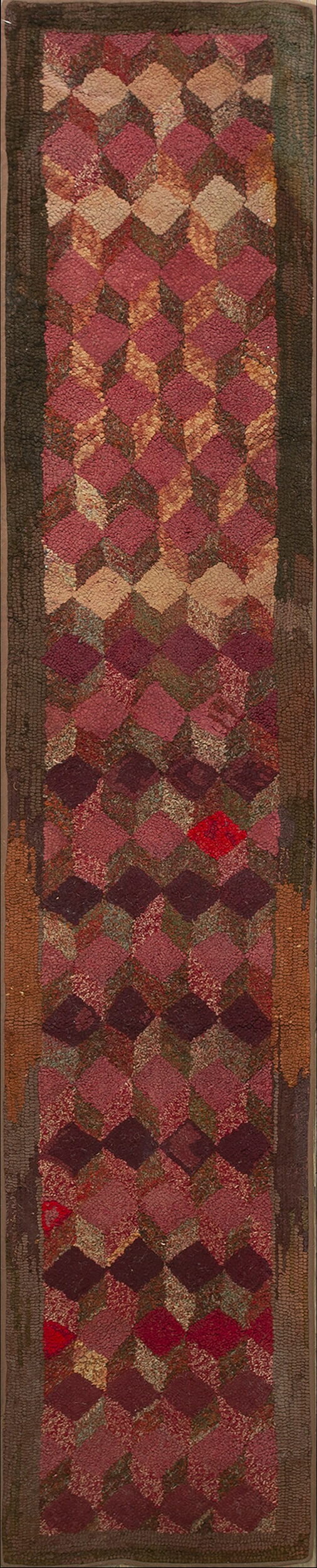 Antique American Geometric Layered Cube Pattern Hallway Runner Folk Art Rug