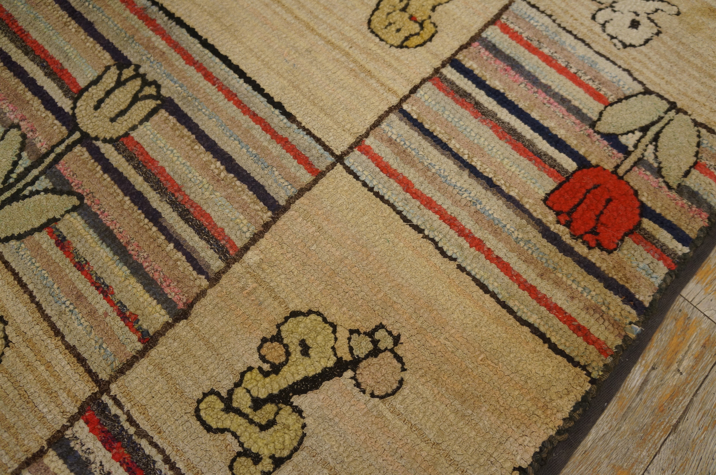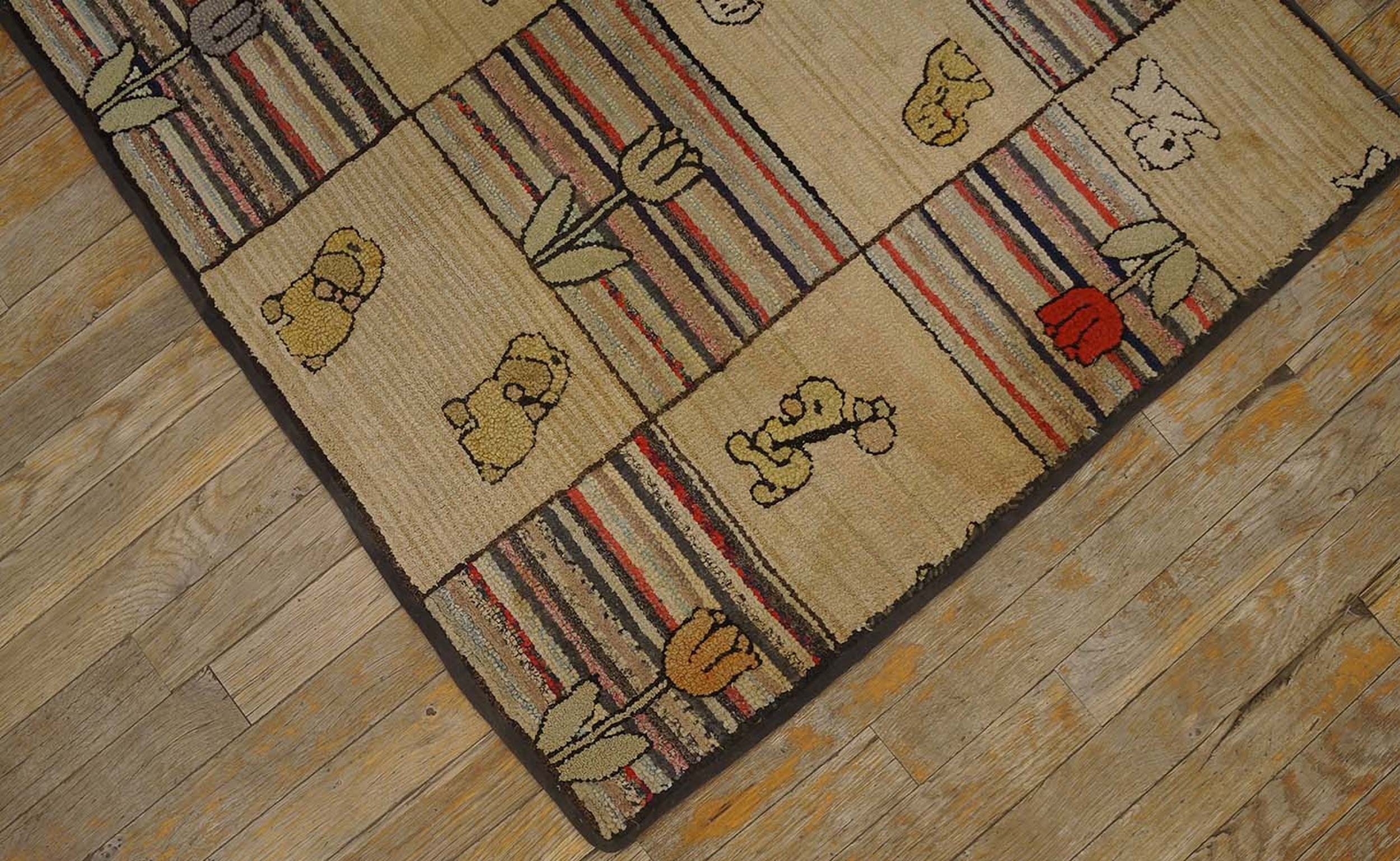 Reflecting the resourceful tradition of early 20th-century craftsmanship, this wool textile possesses a robust, textured surface typical of the hooked technique. Its durable construction and unique visual narrative make it a compelling piece among genuine antique rugs. The execution is precise yet retains the charming irregularity characteristic of handmade folk art, celebrating American decorative history.