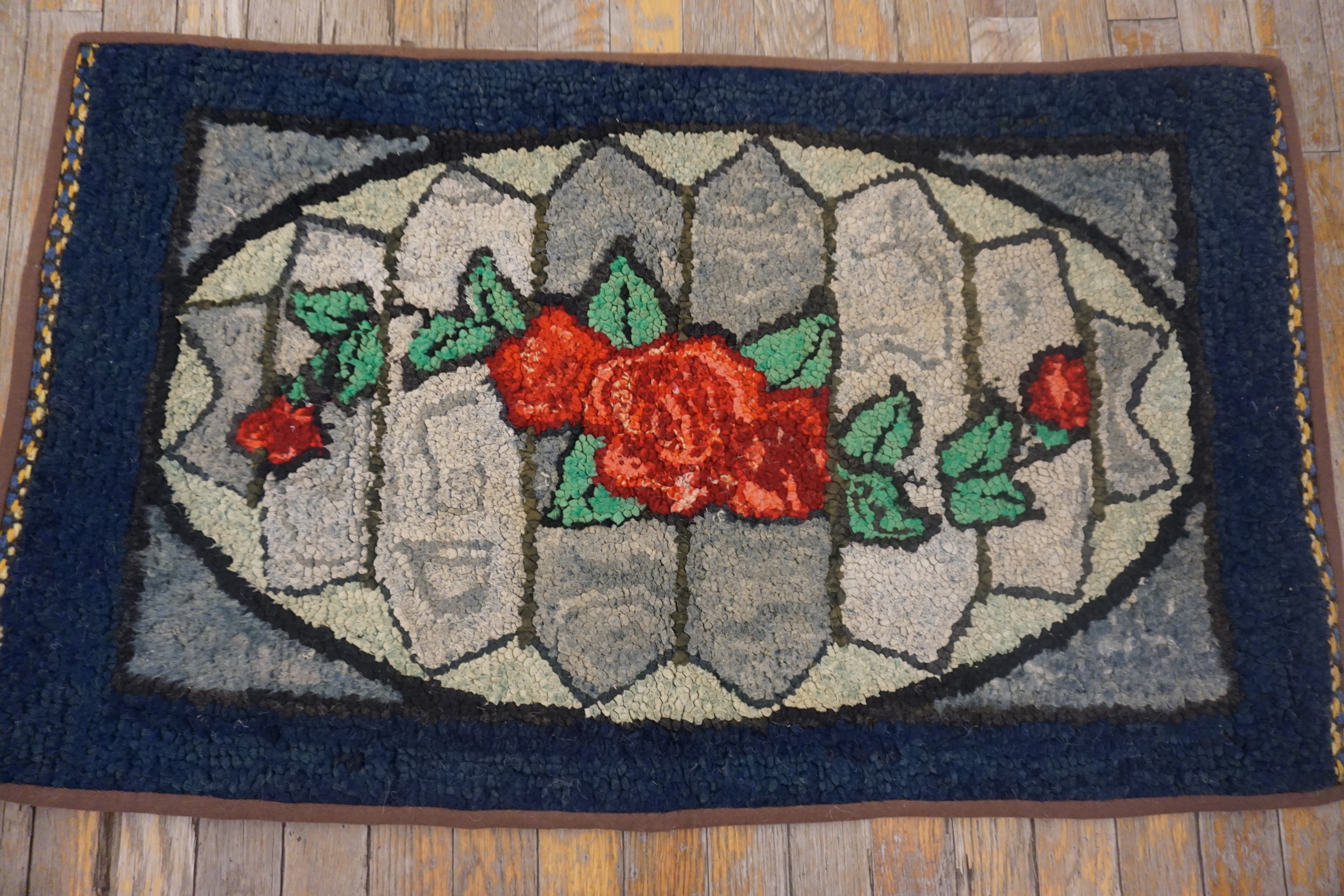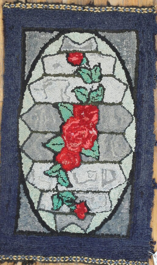 Antique American Hooked Blue 1890s Rug