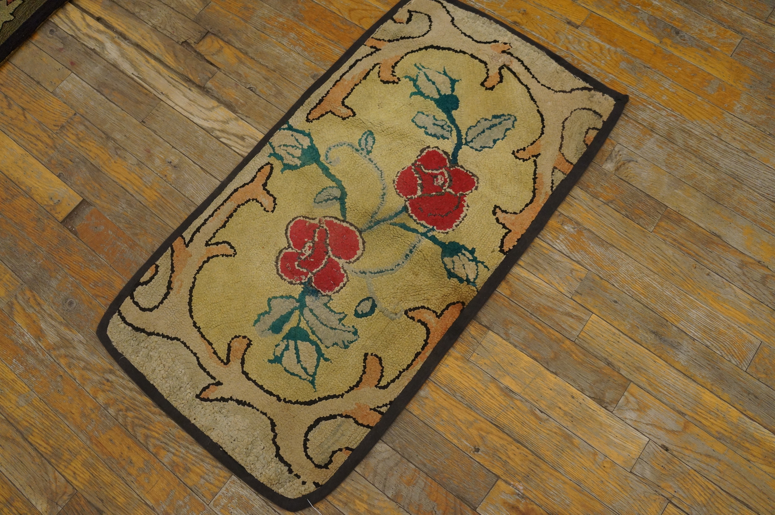 Antique American Hooked Rug America Yellow 1920s