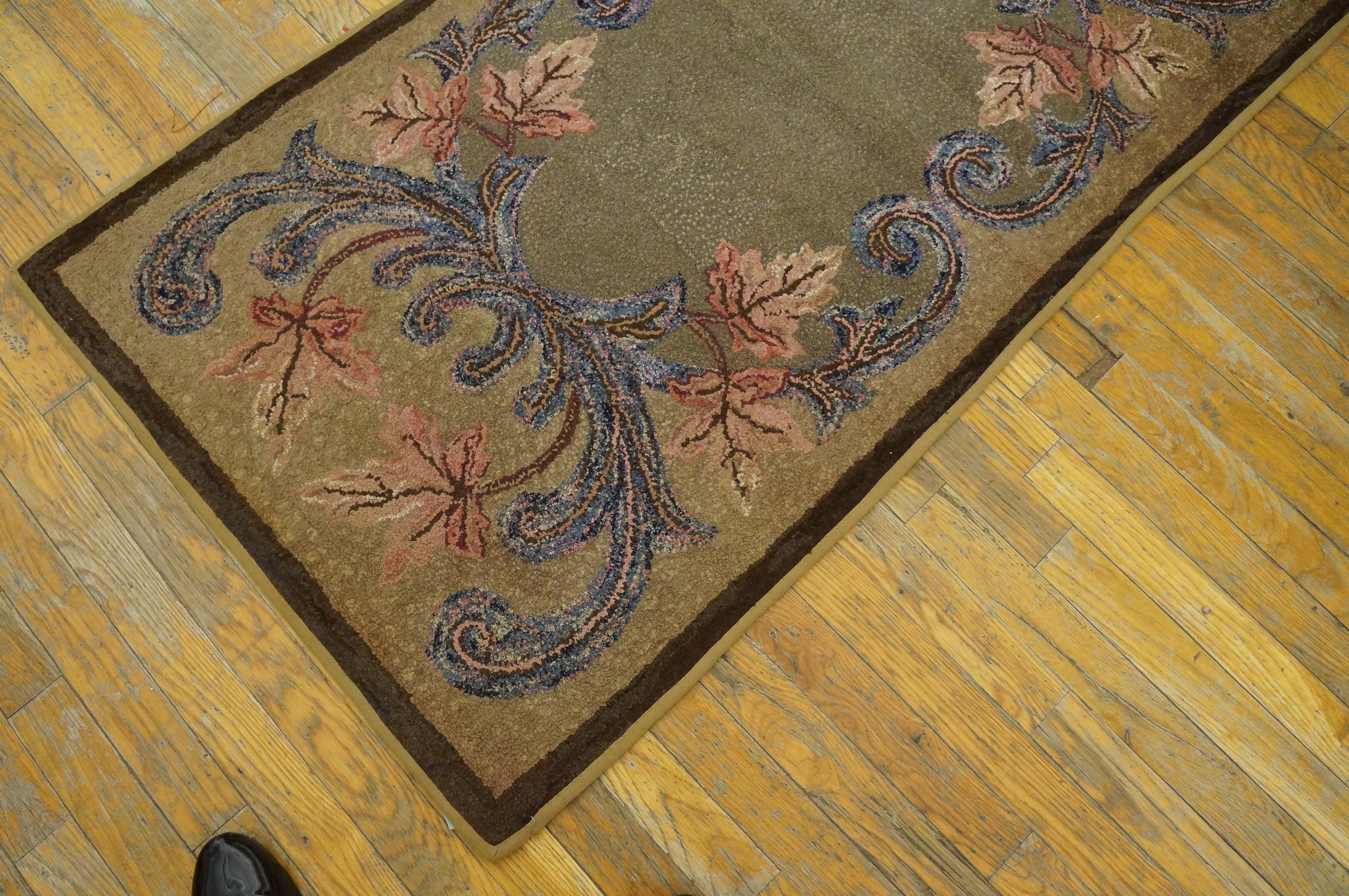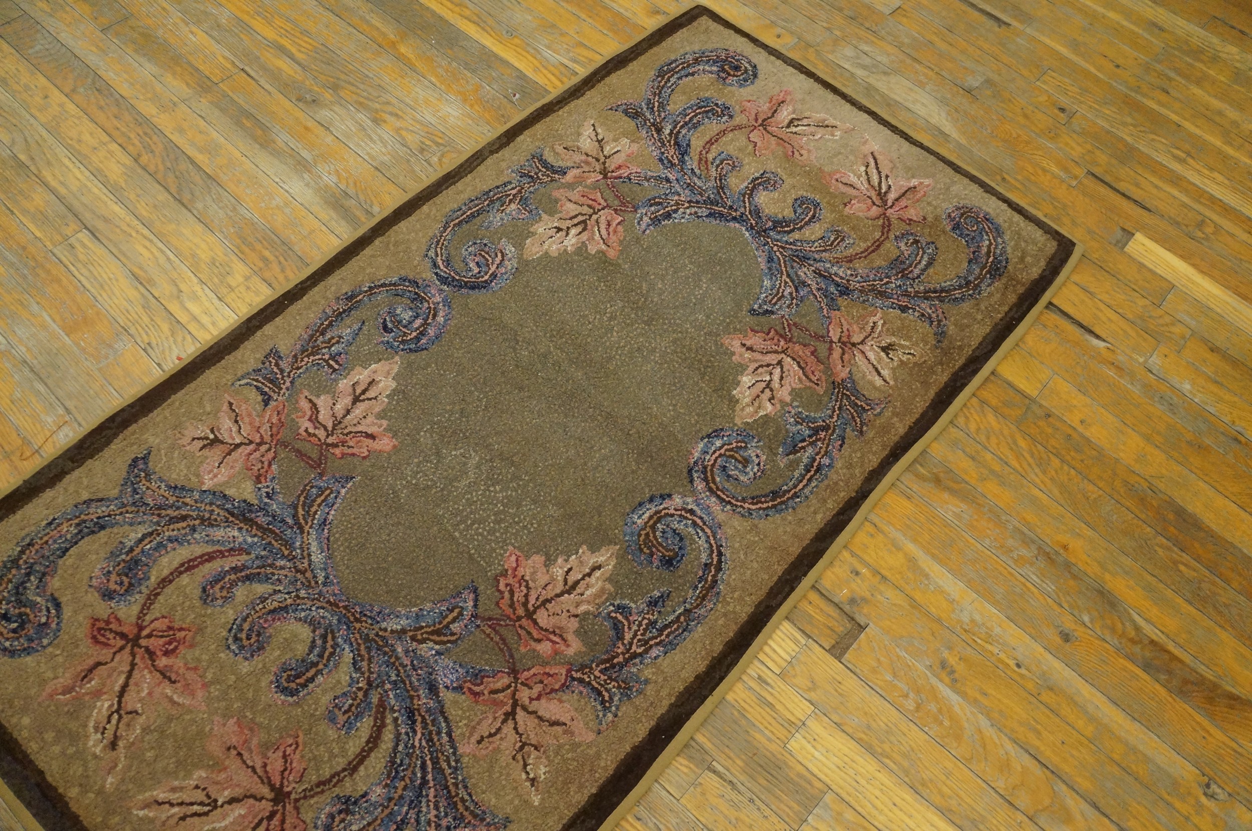Originally intended for domestic use, this piece reflects the American desire for finely crafted, decorative floor coverings. Its dimensions classify it as a highly versatile small scatter size rugs, perfect for adding a layer of historical elegance to an entryway, bedside, or intimate sitting area. This rug is a testament to the enduring quality of American textile artistry.