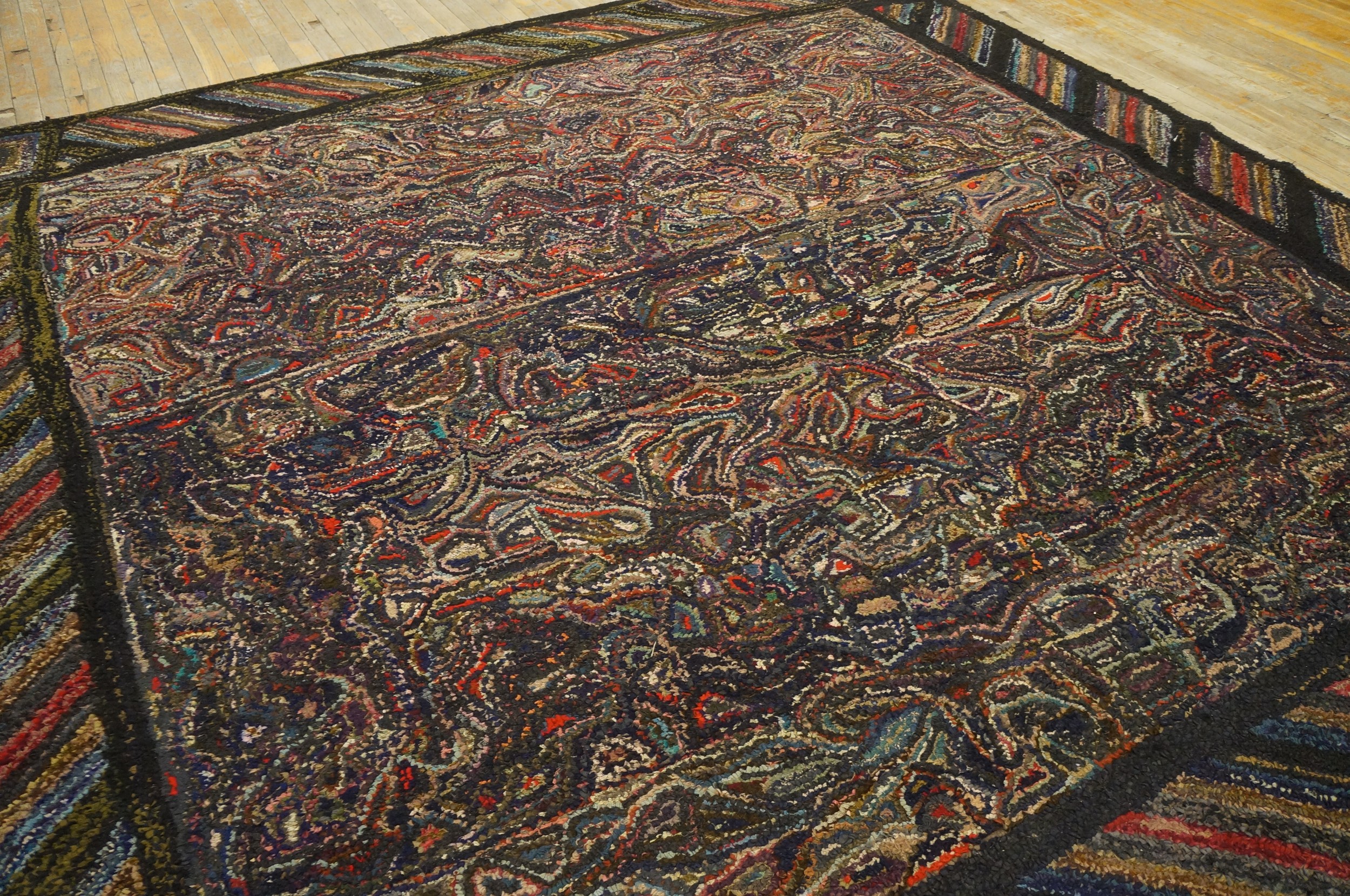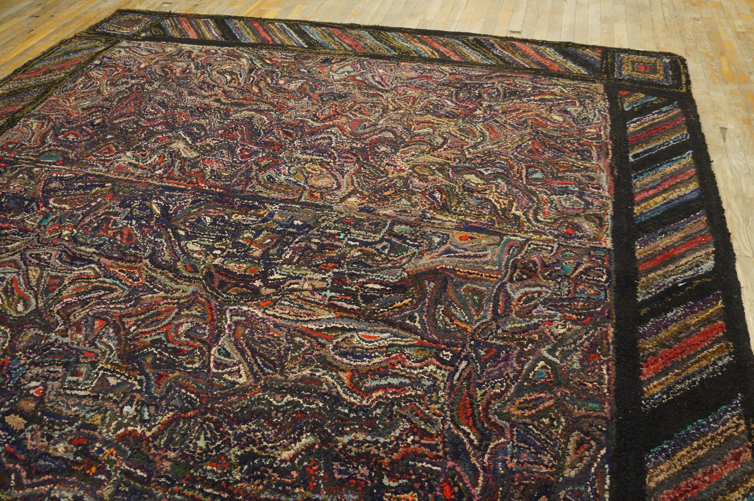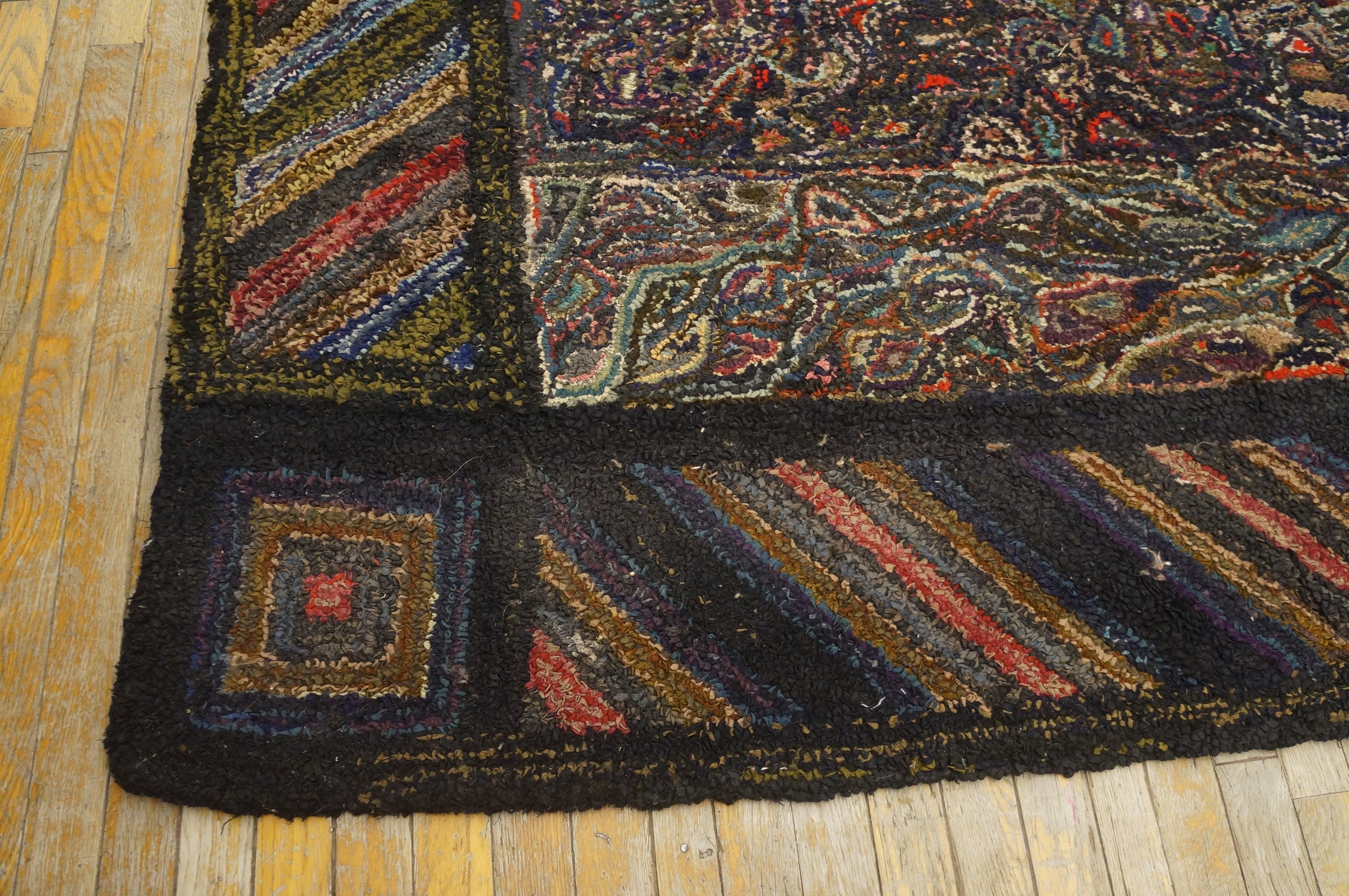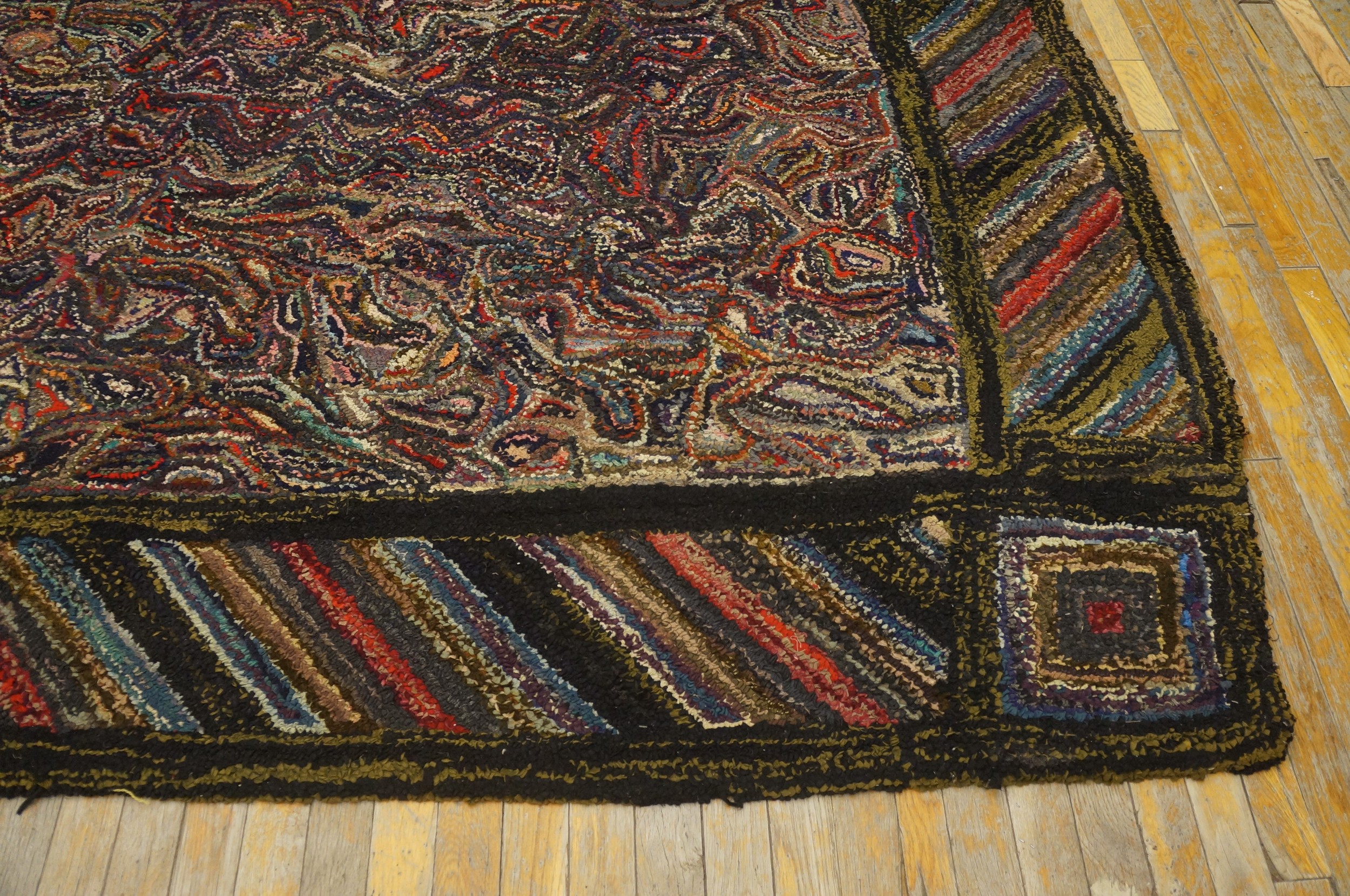 Antique American Hooked Rug American Allover Knotted, Country of Origin: American USA Rugs, Circa Date: 1930s. This exceptional textile exemplifies the unique folk-art tradition of American USA Rugs during the Depression era, blending traditional craft techniques with sophisticated, abstract design sensibilities.