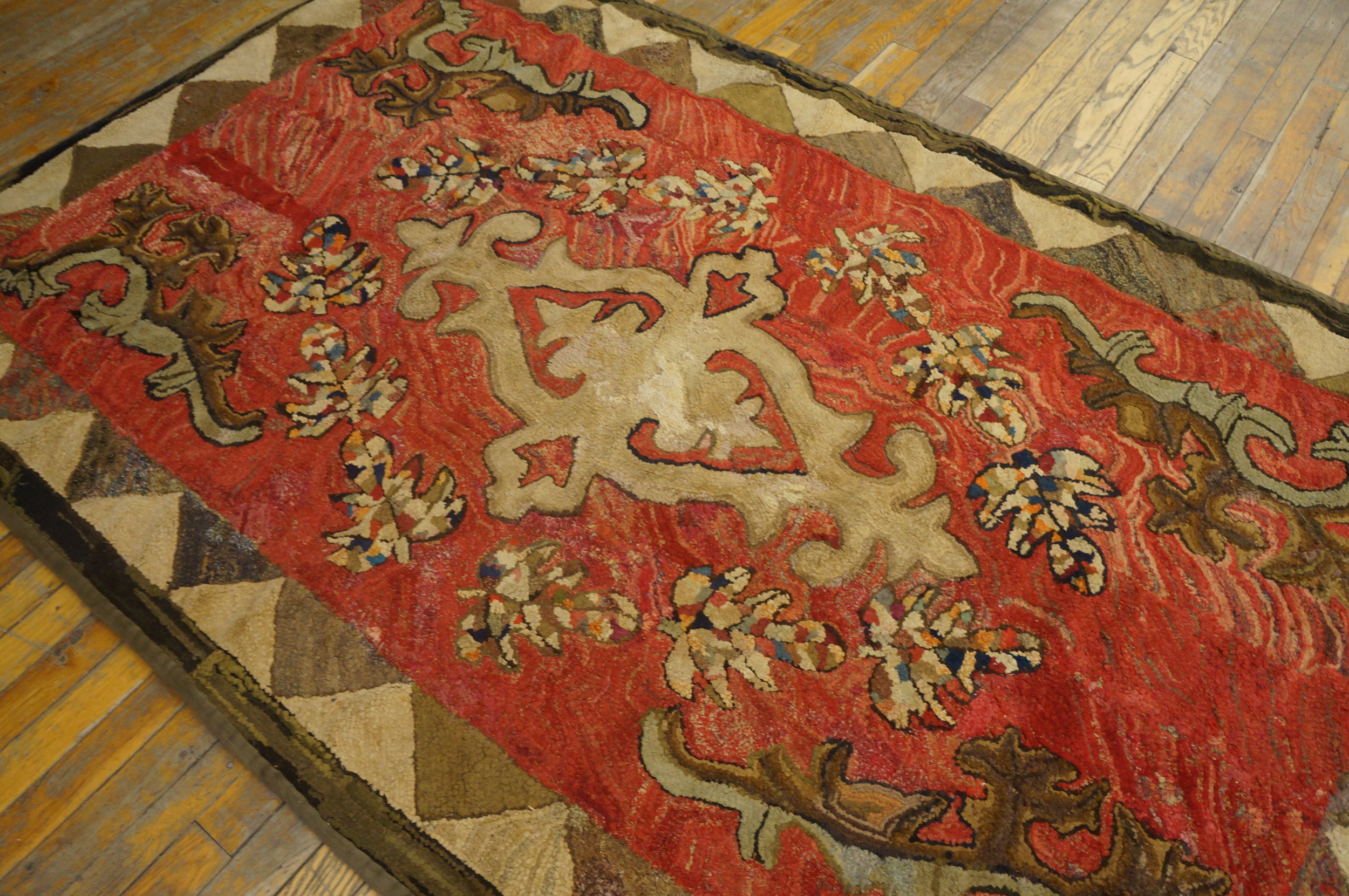 Measuring approximately 3×5 feet, this is an excellent example of scatter size rugs, perfect for adding historical texture to a hallway or intimate setting. As a testament to early American textile history, this piece is a highly collectible addition to any collection of antique rugs and textiles, retaining remarkable color saturation for its age.