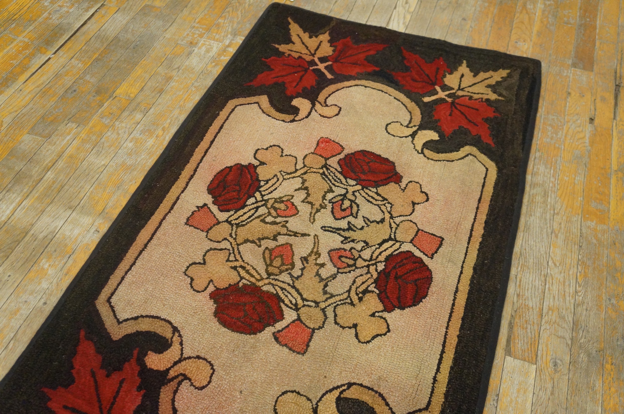 Given its dimensions, this piece functions perfectly as a decorative accent or a practical small scatter size rug. It offers a sophisticated, yet distinctly provincial, statement, serving as a charming piece of Americana suitable for a hallway, bedside, or intimate sitting area.
