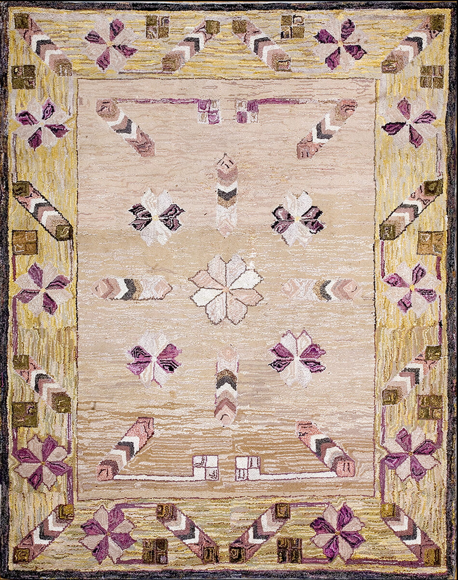 Hooked rugs are characterized by their looped or cut pile structure, which gives them a robust, almost three-dimensional surface texture. This technique allowed for a freedom of design often seen in textile arts created outside of commercial workshops. Such pieces are highly sought after by collectors of antique rugs for their individuality and historical connection to domestic American craft traditions.