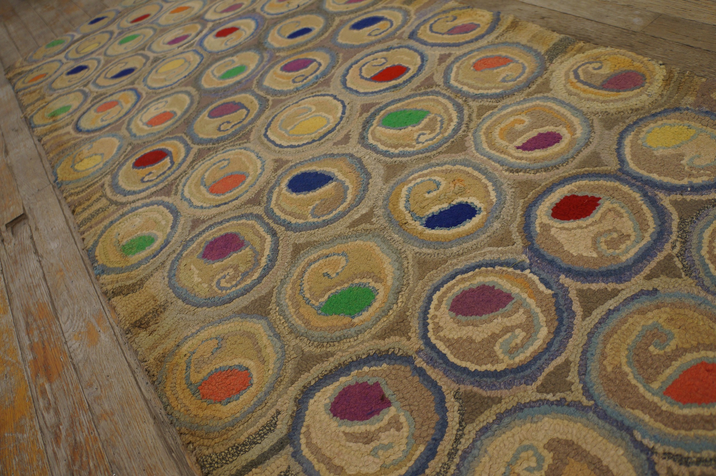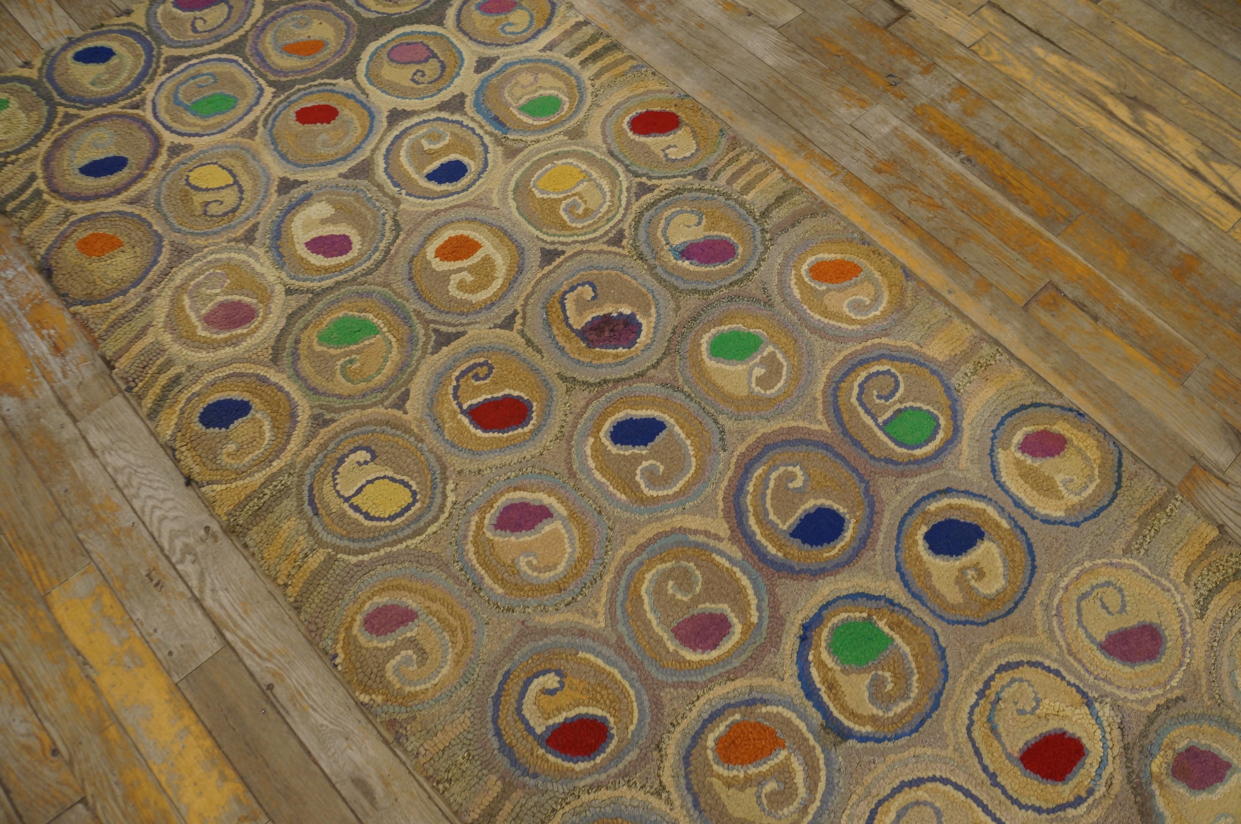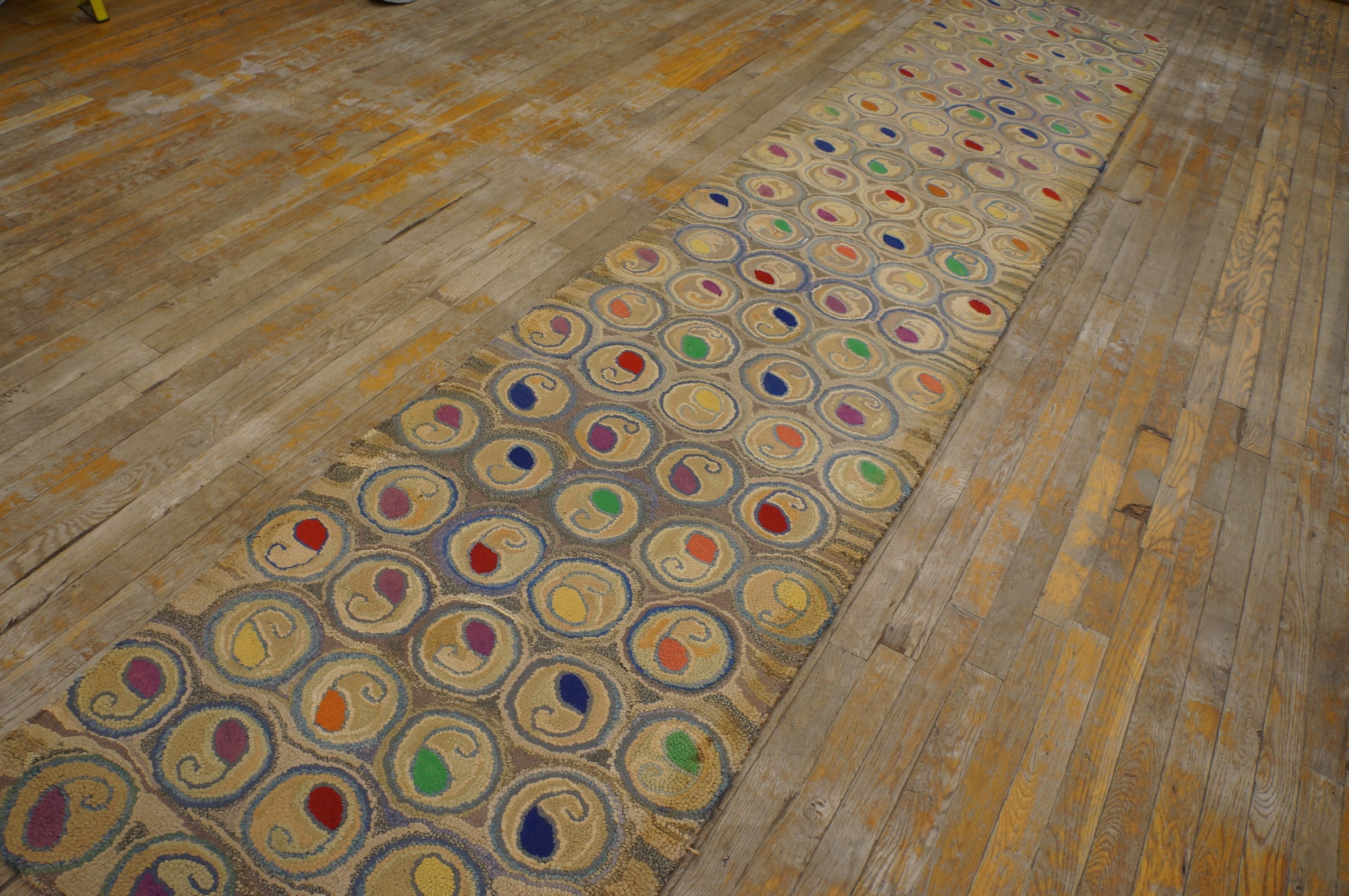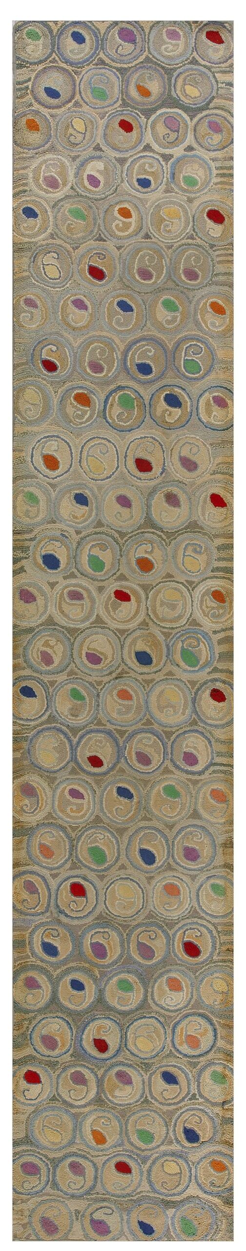 Antique American Hooked Rug Hallway Runner Wool Beige, Multicolor, Country of Origin: American USA Rugs, Circa Date: 1930s. This exceptional piece represents the finest tradition of American USA Rugs craftsmanship from the early 20th century. The hooked technique gives the wool surface a distinct, textural relief, elevating this functional item to a work of folk art.
