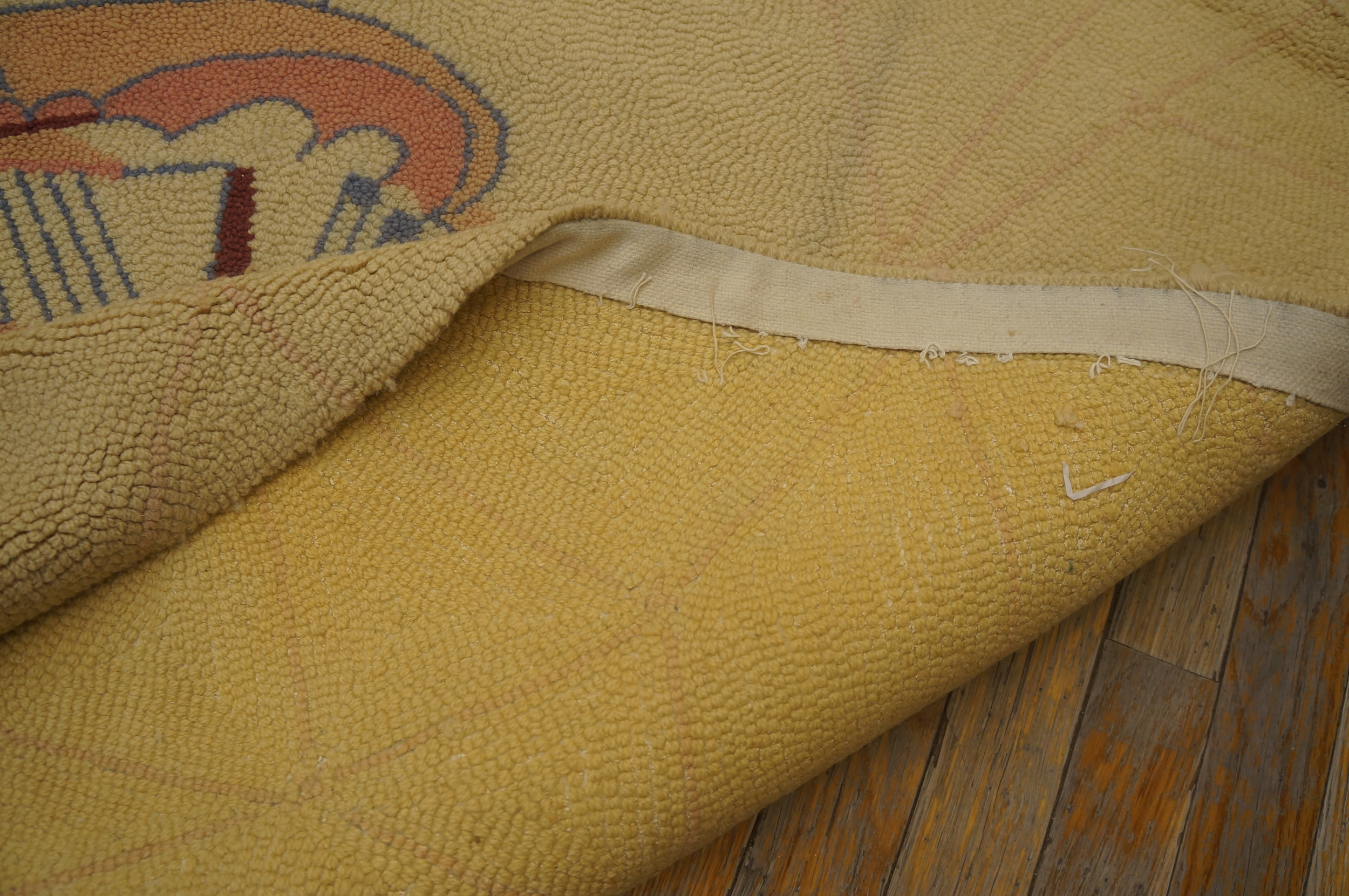 Possessing a refined scale suitable for a primary seating area or dining space, this textile functions as a sophisticated focal point. Its condition and unique artistry make it a compelling acquisition for collectors seeking room size rugs that merge historical textile methods with the enduring optimism of 1950s American design.