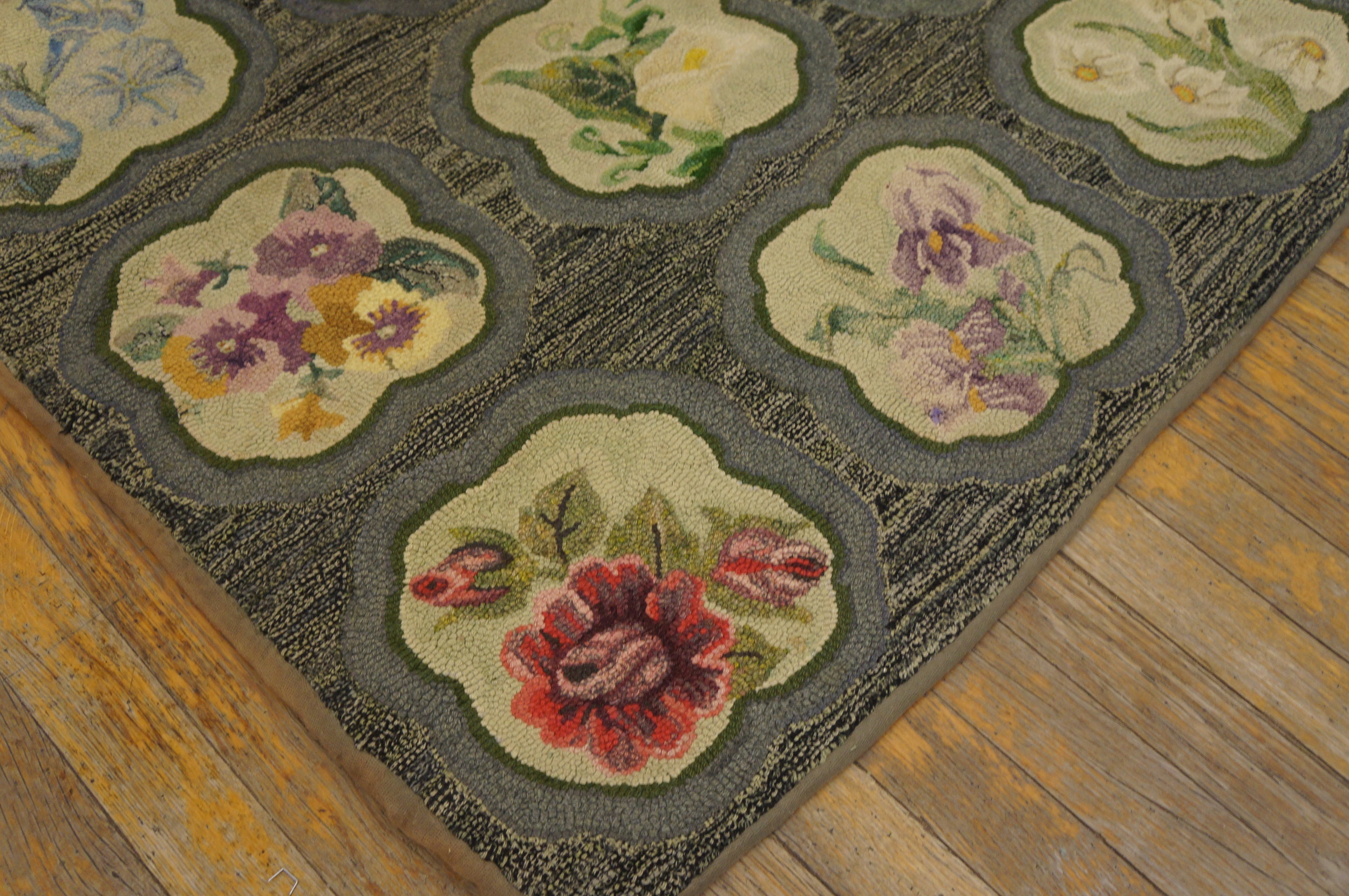 Dating to 1935, this piece offers a glimpse into American textile history, where utilitarian craft met decorative impulse. The wool and cotton foundation ensures durability, while the vibrant, yet aged, color palette retains its sophisticated appeal. It is a well-preserved example suitable for collectors seeking exceptional antique rugs with documented provenance and unique character.