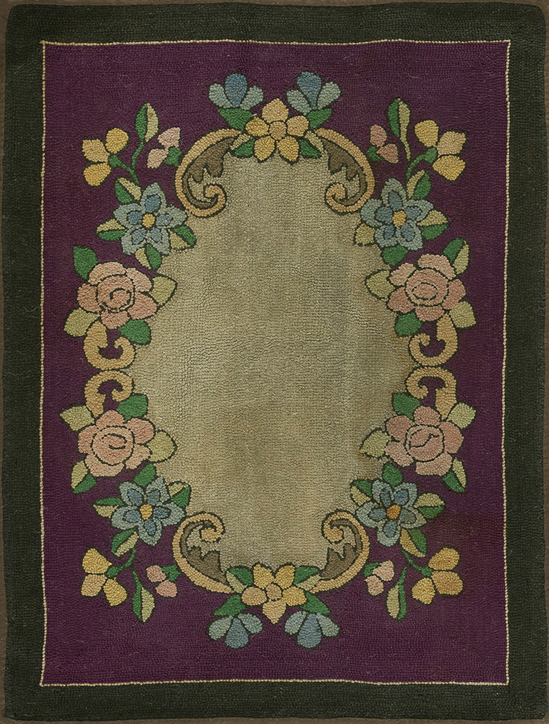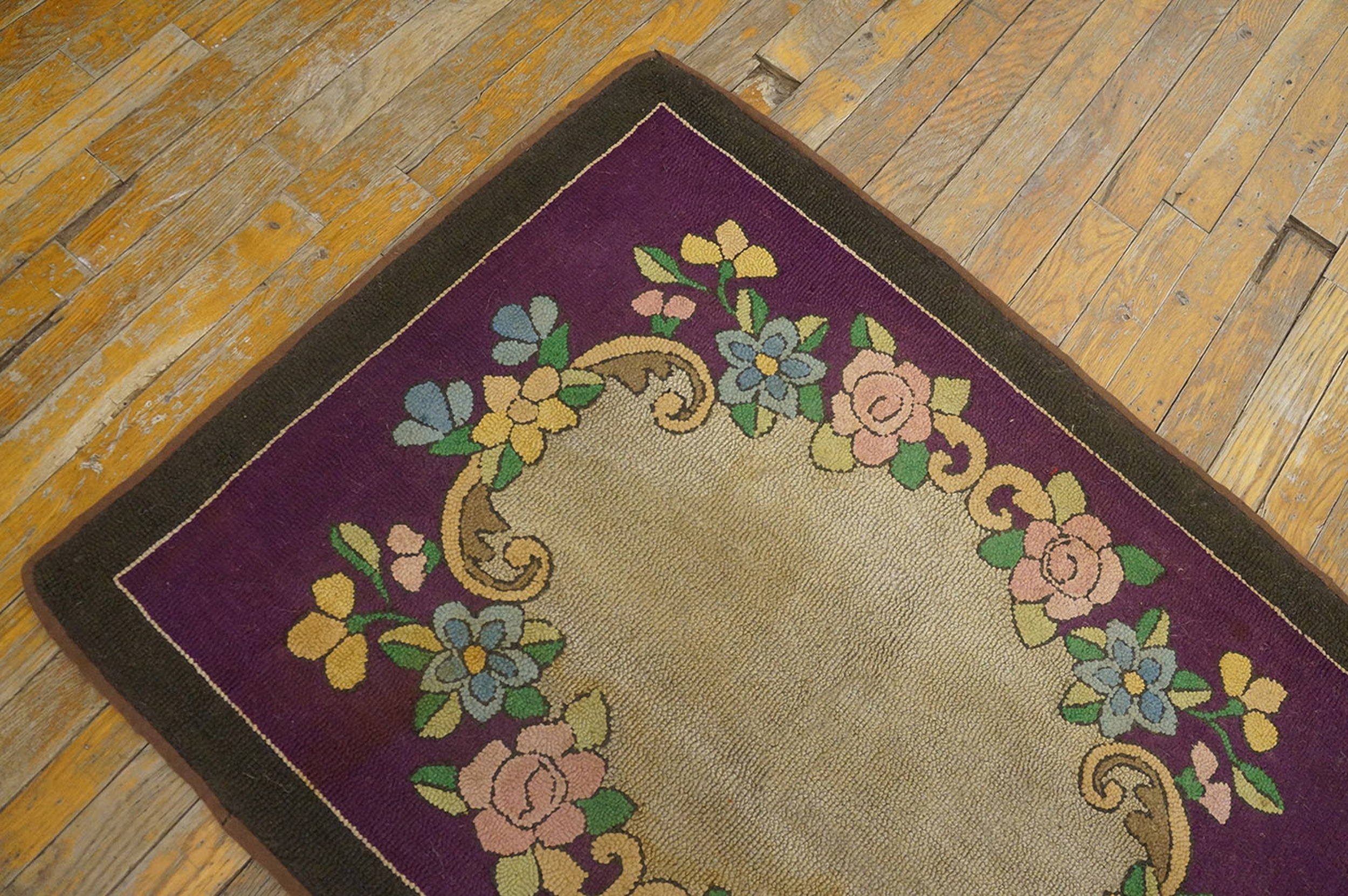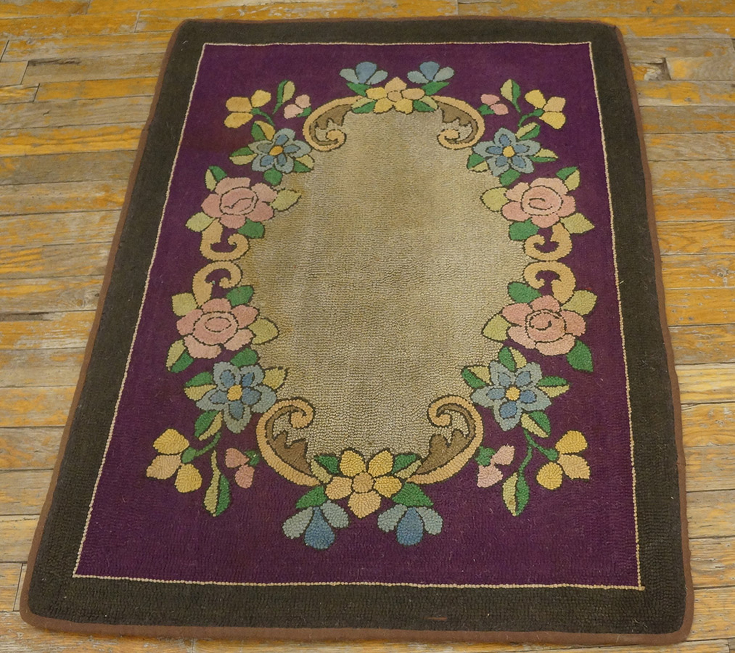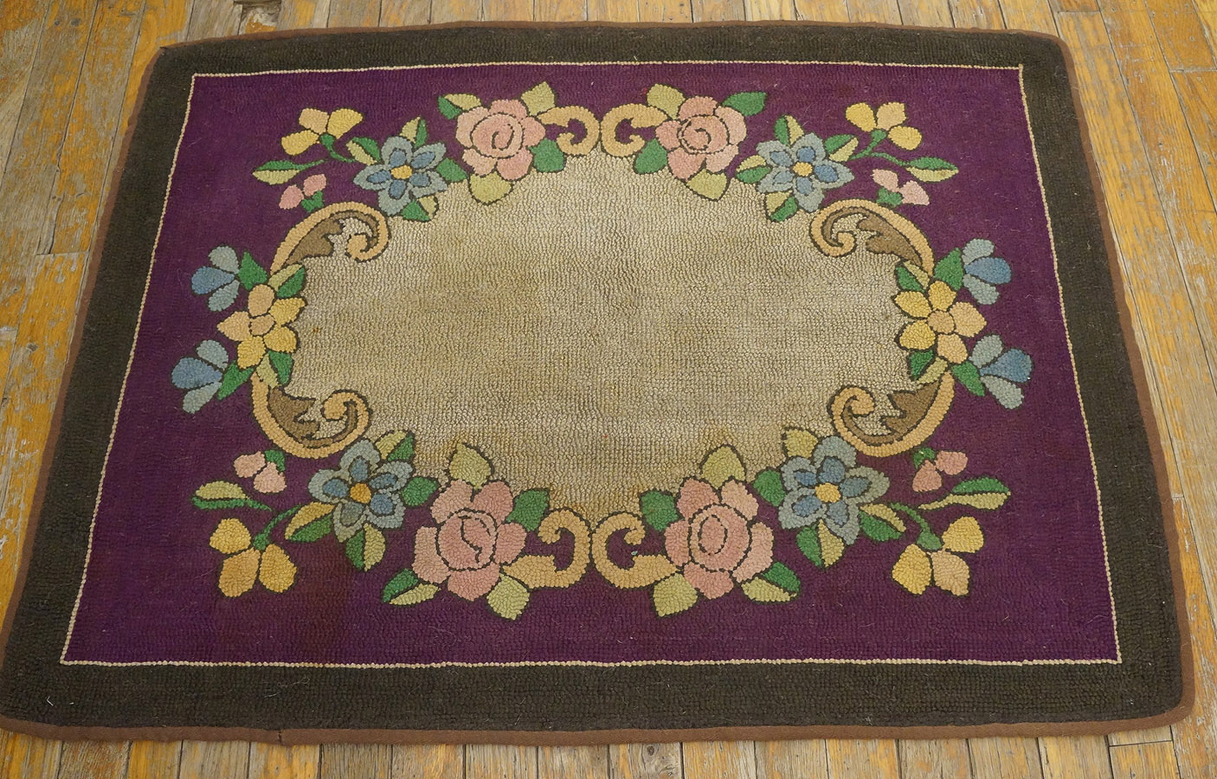 Antique American Hooked Rug Small Scatter Size Wool Purple