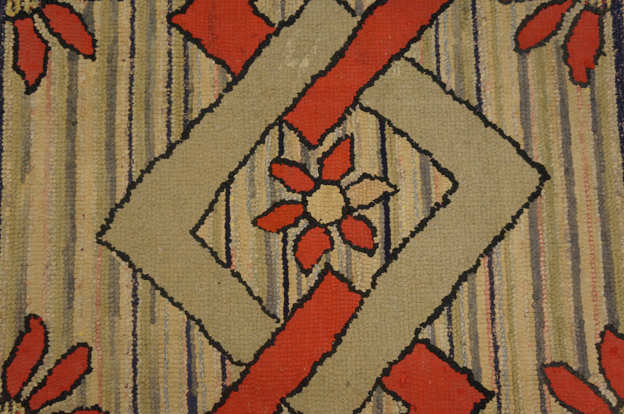 Antique American Interlocked Diamond Squares Folk Art Hooked Rug