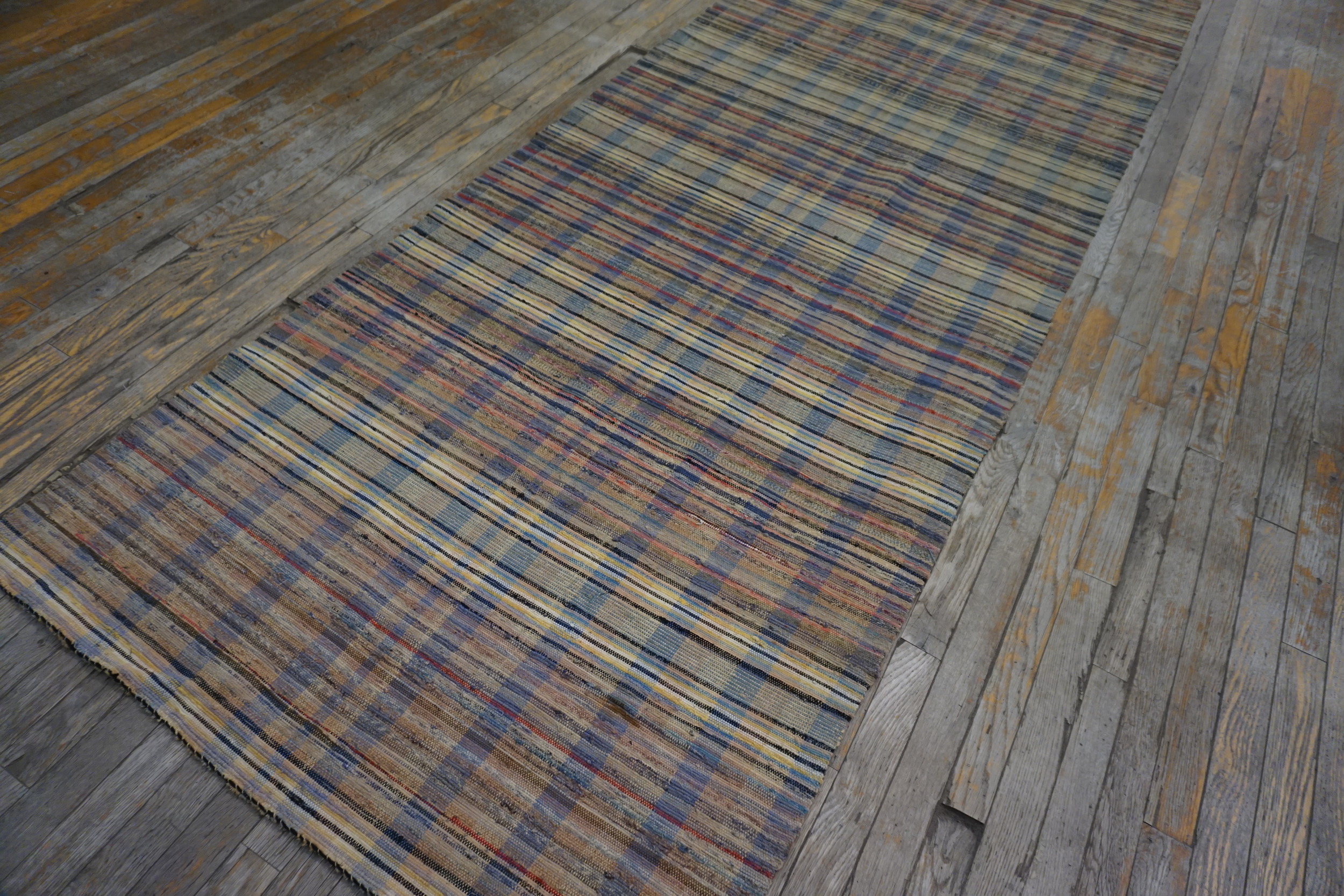 Antique American Rag Hallway Runner Cotton Multicolor Rug, Circa Date: 1930s. This distinctive textile offers a slice of early 20th-century American folk art, woven from repurposed cotton rags. The rag rug tradition emphasizes sustainability and texture, creating pieces that possess a unique, tactile charm, making them sought-after examples of antique rugs.
