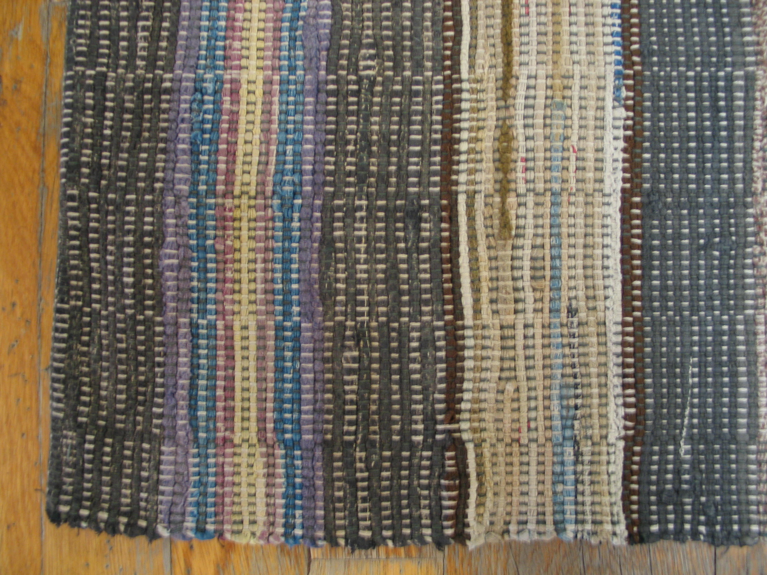 Beyond its utilitarian origins, this knotted rag rug represents a valuable piece of textile history. Its muted palette and strong linear composition make it a highly desirable acquisition for collectors seeking authentic antique rugs that embody early 20th-century American folk art and craftsmanship.