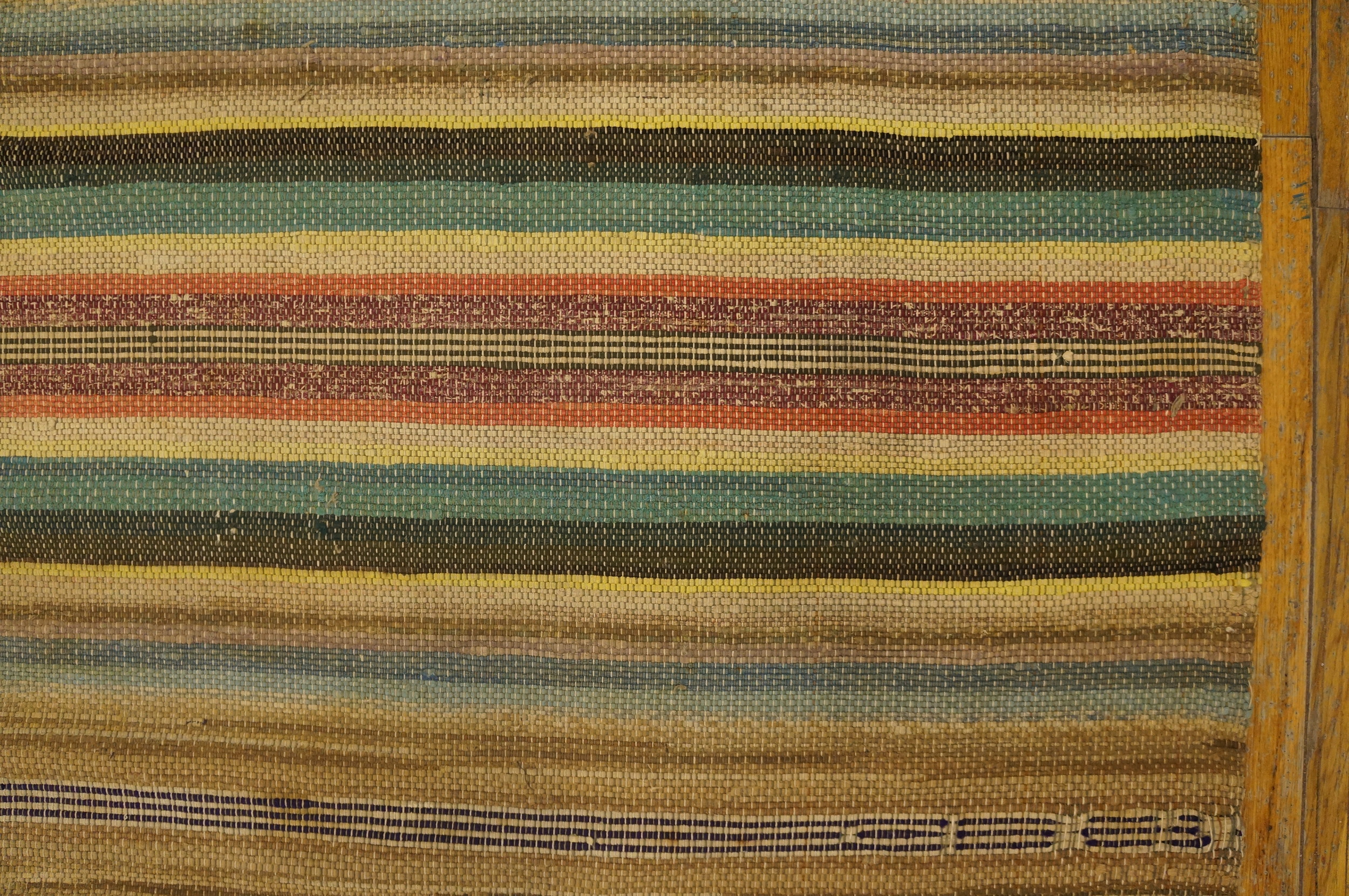 Dating to the 1880s, this textile offers a sophisticated, minimalist alternative to more formally patterned antique rugs. Its simple, linear aesthetic translates seamlessly into contemporary interiors, providing both historical grounding and a grounding element of texture. It is a quiet, yet powerful, testament to utilitarian American craftsmanship.