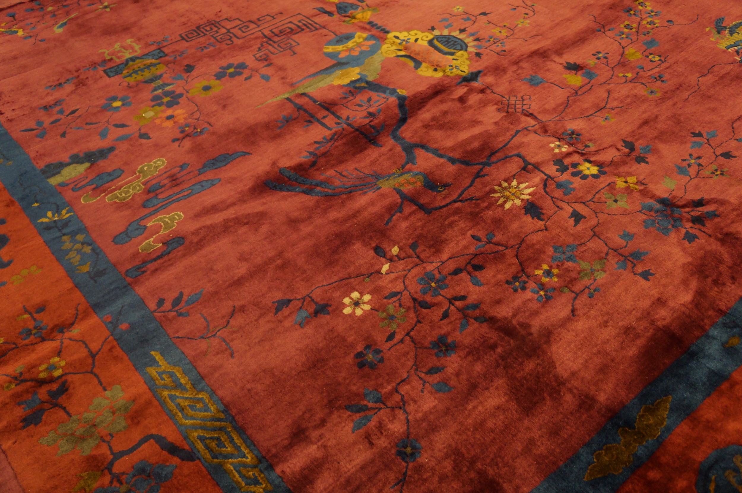 Antique Art Deco Chinese Floral Fuschia 1920s Rug, Circa Date: 1920s. This exceptional Chinese Art Deco piece represents the height of 1920s design, blending traditional Far Eastern iconography with the bold, modern aesthetics of the West. It stands as a remarkable example among fine antique rugs of the period.