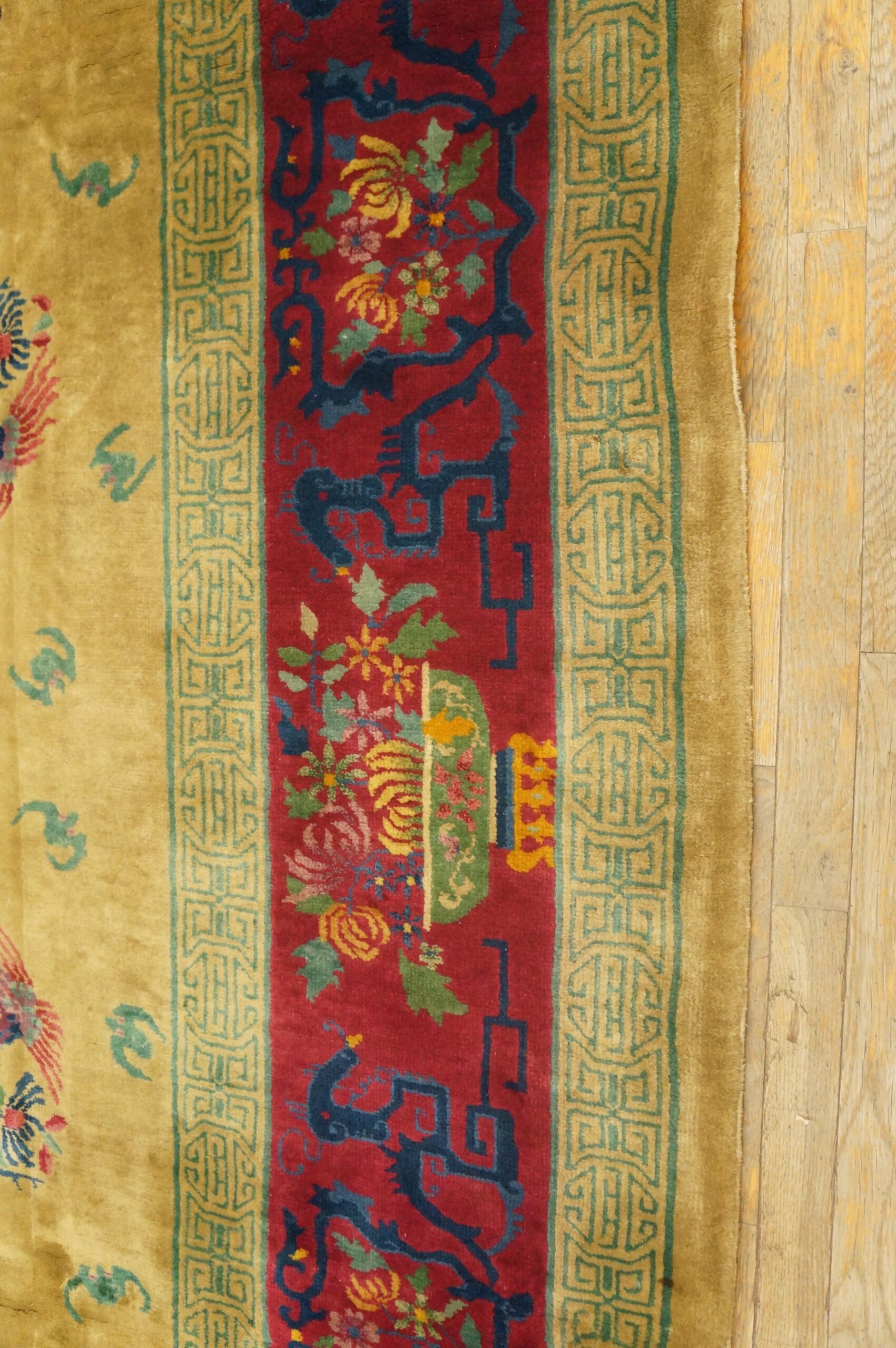 As a substantial piece, this rug commands attention, suitable for defining a major living space or dining area. Its excellent condition and historical significance make it a prized acquisition for collectors seeking authentic Art Deco Chinese textiles. This piece functions perfectly as a magnificent room size rug, offering both enduring beauty and a tangible link to 1920s design history.