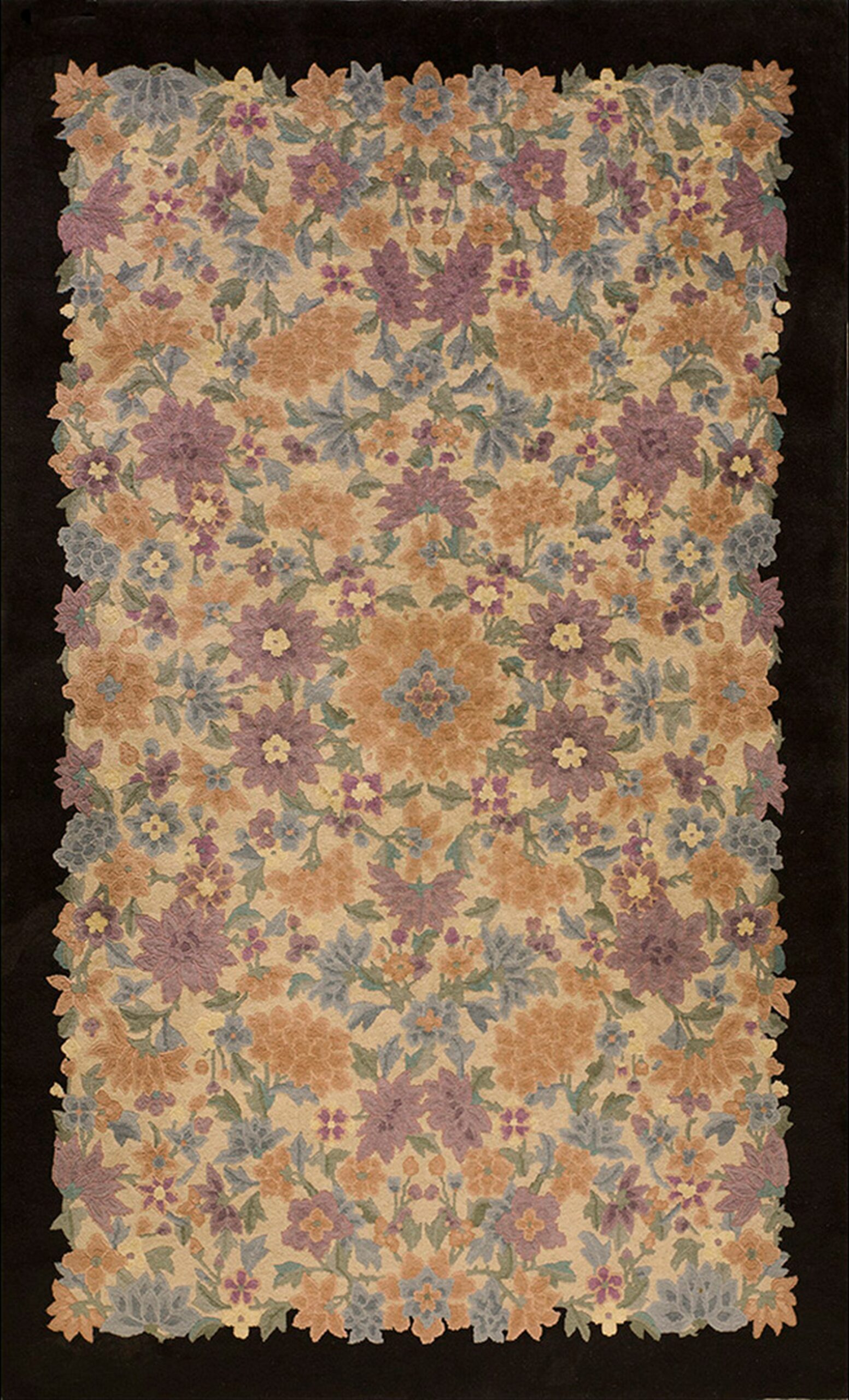 Antique Art Deco Chinese Floral Multi 1920s Rug, Circa Date: 1920s. This exceptional piece exemplifies the confluence of traditional Chinese weaving artistry and the burgeoning Western Art Deco movement of the Jazz Age. The dense, repeating pattern moves away from classical medallions toward a more naturalistic, yet stylized, presentation typical of antique rugs from this transitional period.