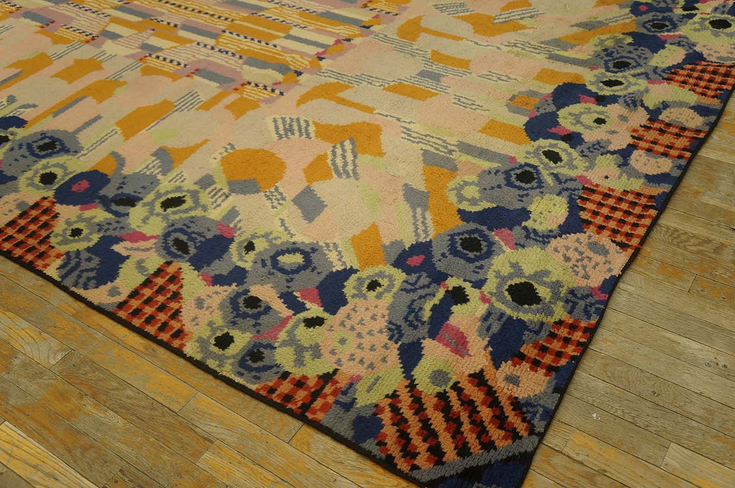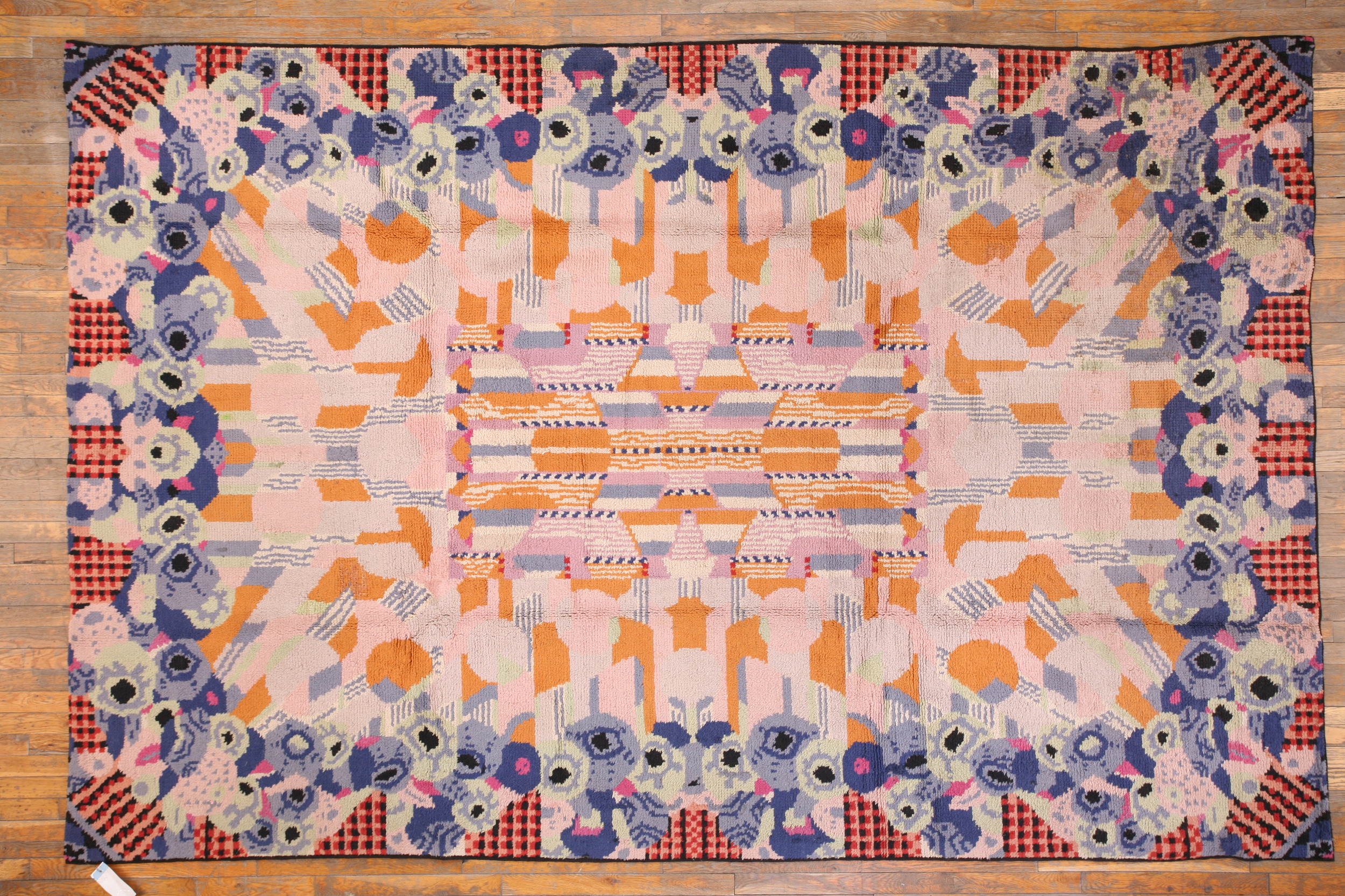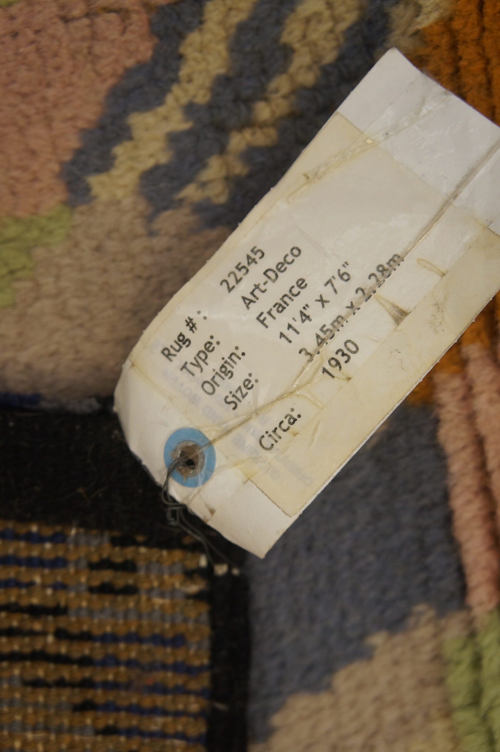 Antique Art Deco French Geometric Medallion Hand Knotted Pile Rug, Country of Origin: France, Circa Date: 1930s. This exceptional piece captures the vibrant, modern spirit of the 1930s, showcasing the pinnacle of art Deco rugs design. The execution, rooted in the traditions of French rugs weaving, demonstrates a sophisticated shift away from classical motifs toward bold abstraction.
