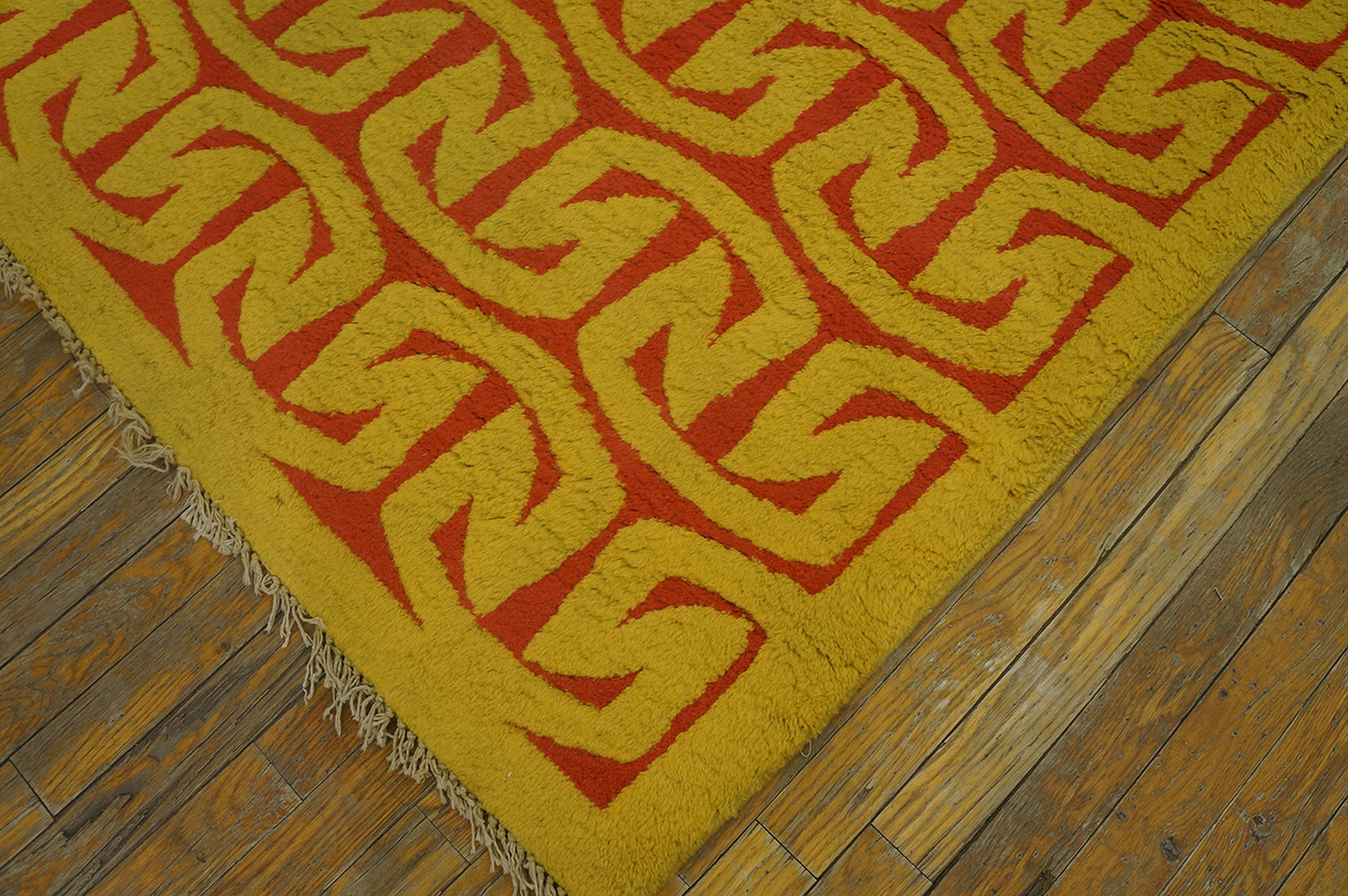 Vintage Art Deco – European Spanish Knotted Rug, Circa Date: 1950s. This exceptional Spanish knotted rug captures the bold, graphic sensibilities of mid-century design, merging the geometric discipline of Art Deco with the vibrant palette of the 1950s. It represents a superb example of vintage area rugs that prioritized texture and high-impact coloration over traditional motifs.