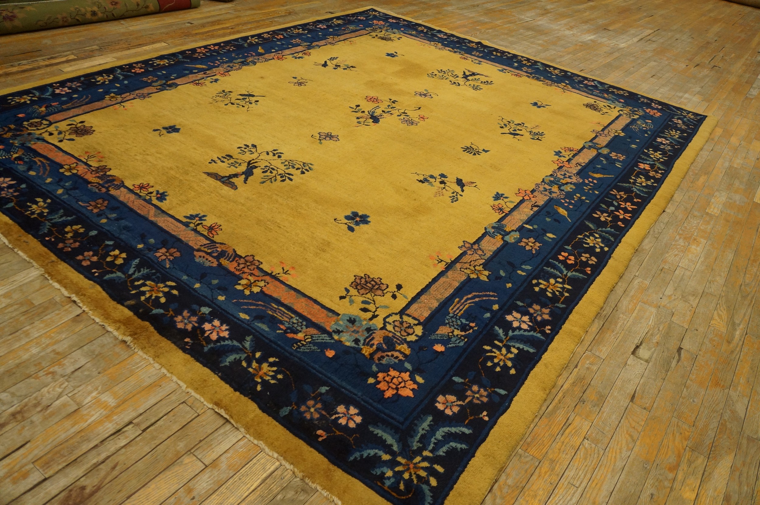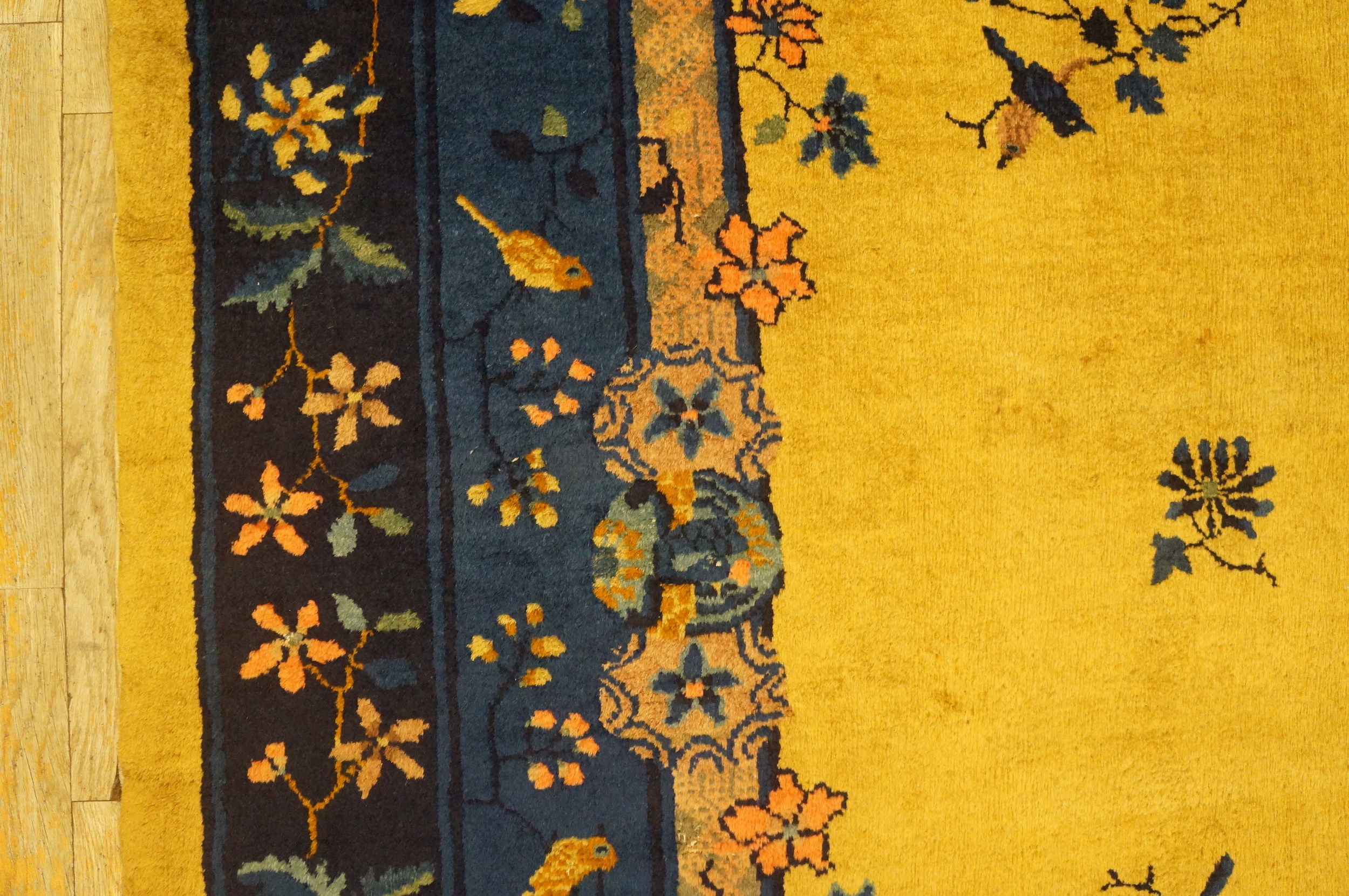 Antique Art Deco Room Size Wool Blue Navy, Yellow Rug, Circa Date: 1920s. This striking example of Chinese Art Deco design captures the transitional elegance of the Roaring Twenties. Its bold use of color and simplified motifs distinguish it among antique rugs of the period, offering a sophisticated foundation for contemporary or traditional interiors.