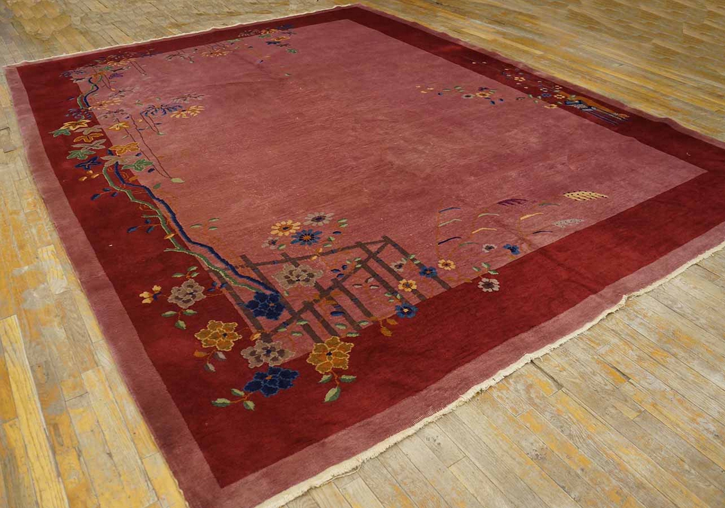 Woven with high-quality wool, the rug exhibits the thick pile and luxurious hand typical of fine Chinese production from this era. It remains a superb decorative artifact, representing the best of antique rugs that bridged traditional Eastern craftsmanship with modern Western sensibilities.