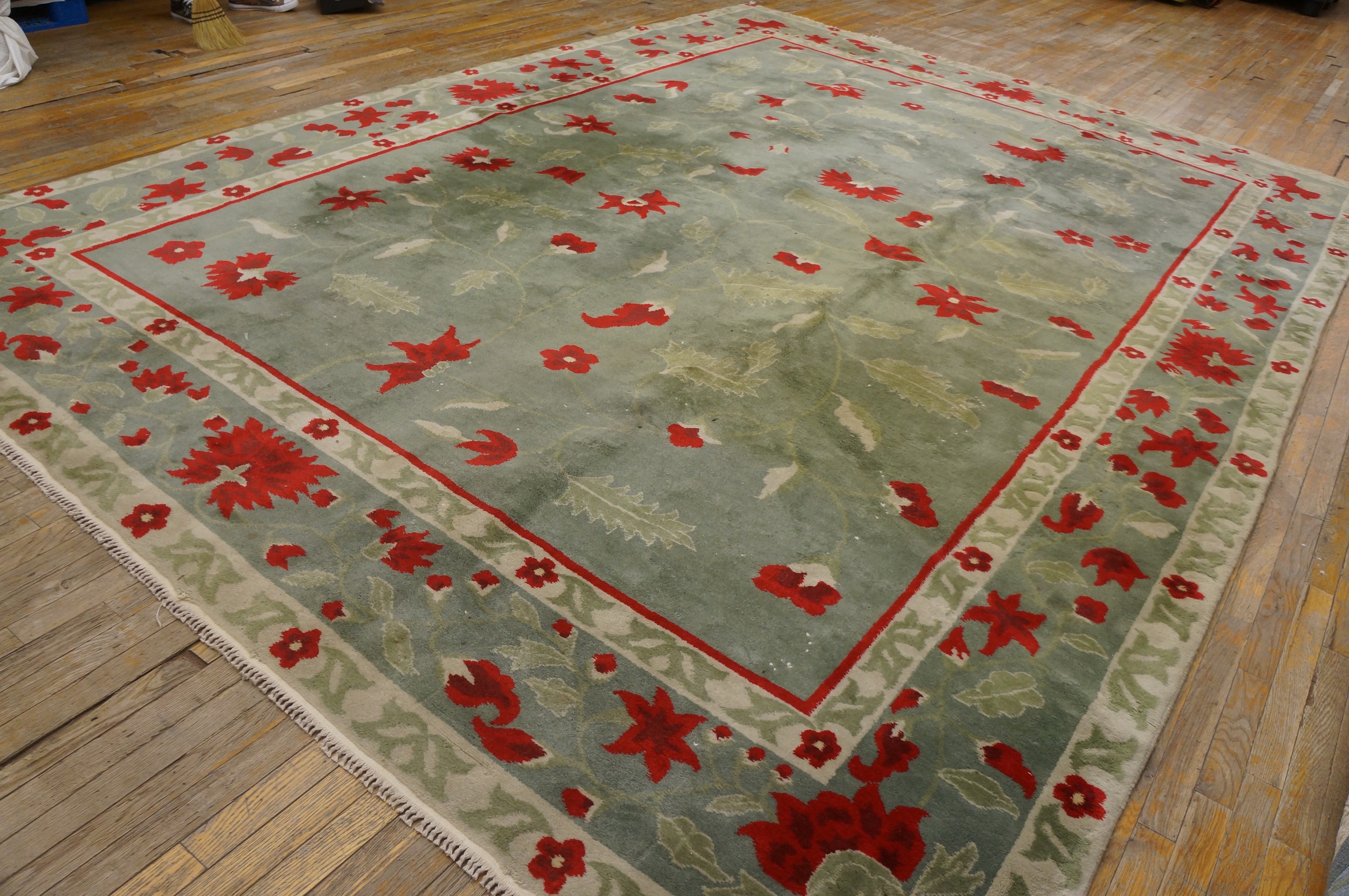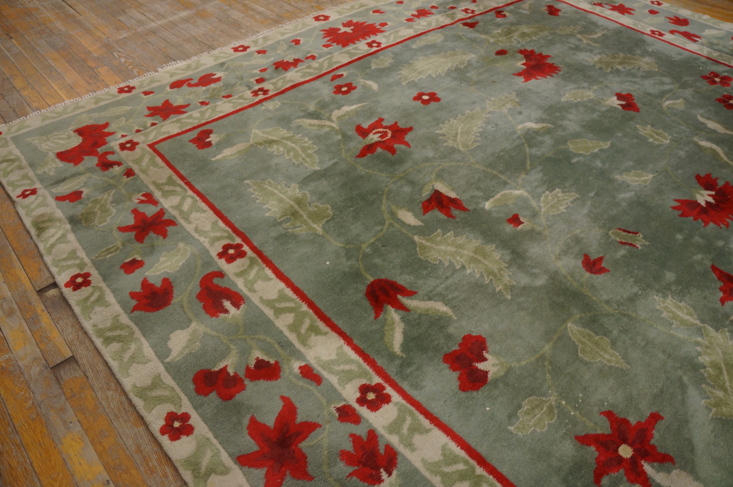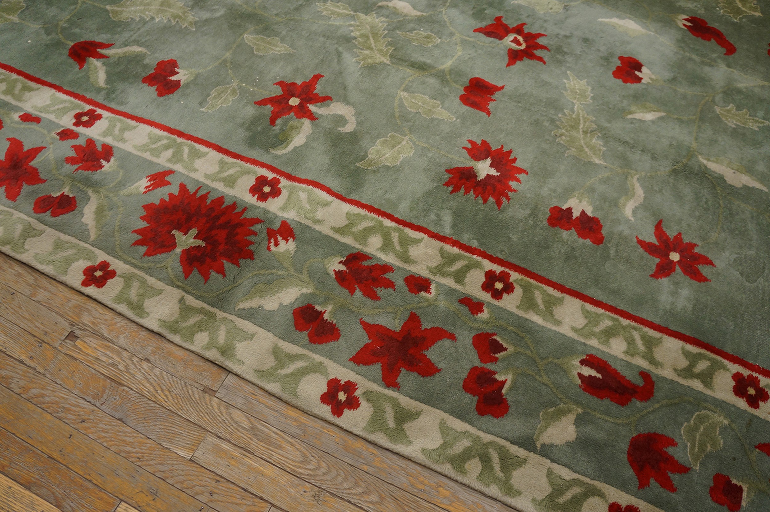 Antique Art Deco Room Size Wool Green, Red Rug, Circa Date: 1935. This exceptional example of early 20th-century design captures the transitional aesthetic of the Art Deco movement. The wool pile features a sophisticated field of muted seafoam, a characteristic shade often found in green color rugs from this period.