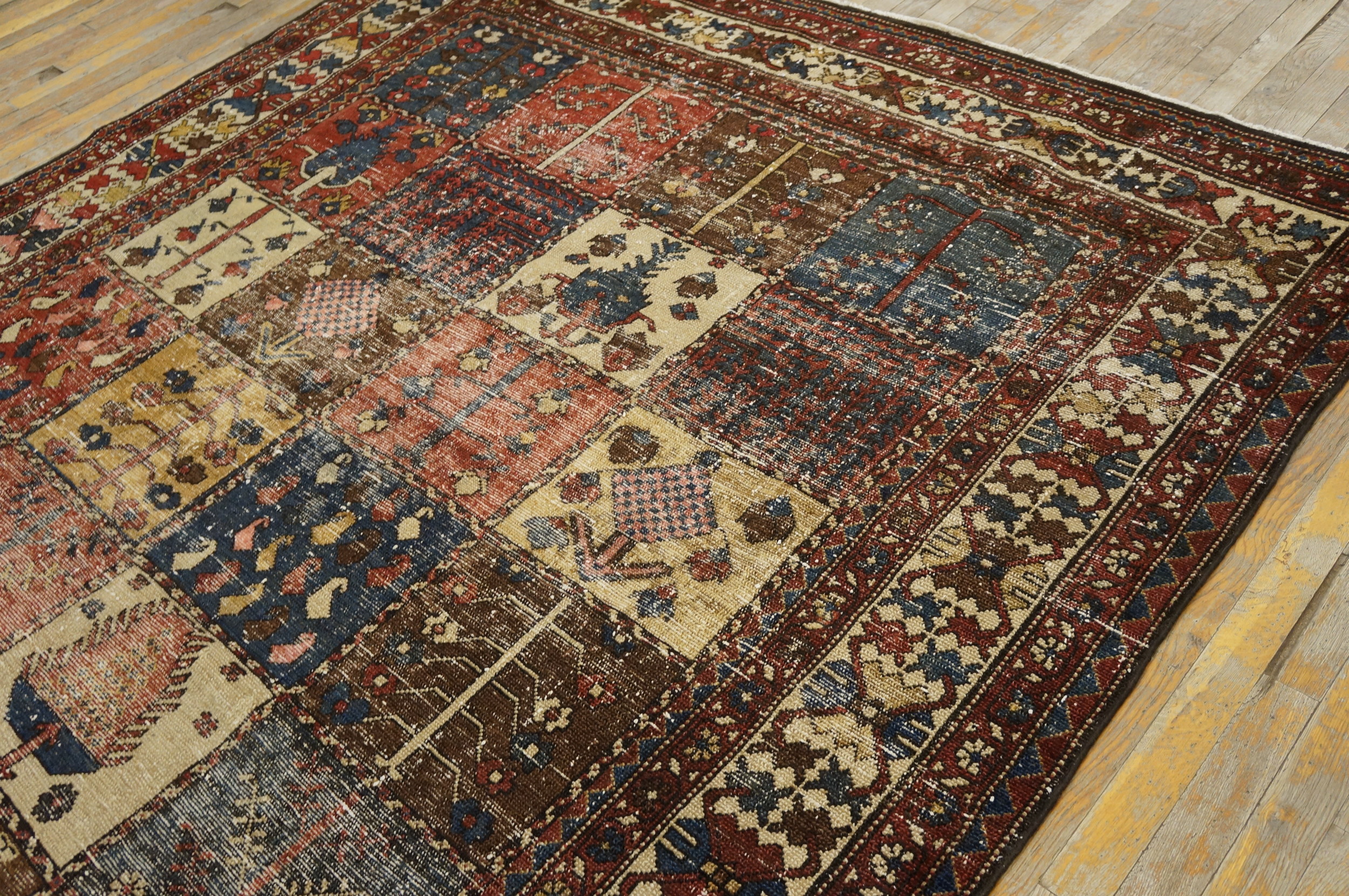Antique Allover Hand Knotted Pile Rug, Circa Date: 1920s. This exceptional example of antique rugs presents a fascinating compartmentalized field, organized into a rhythmic grid of individual squares, each showcasing a distinct, highly stylized motif.