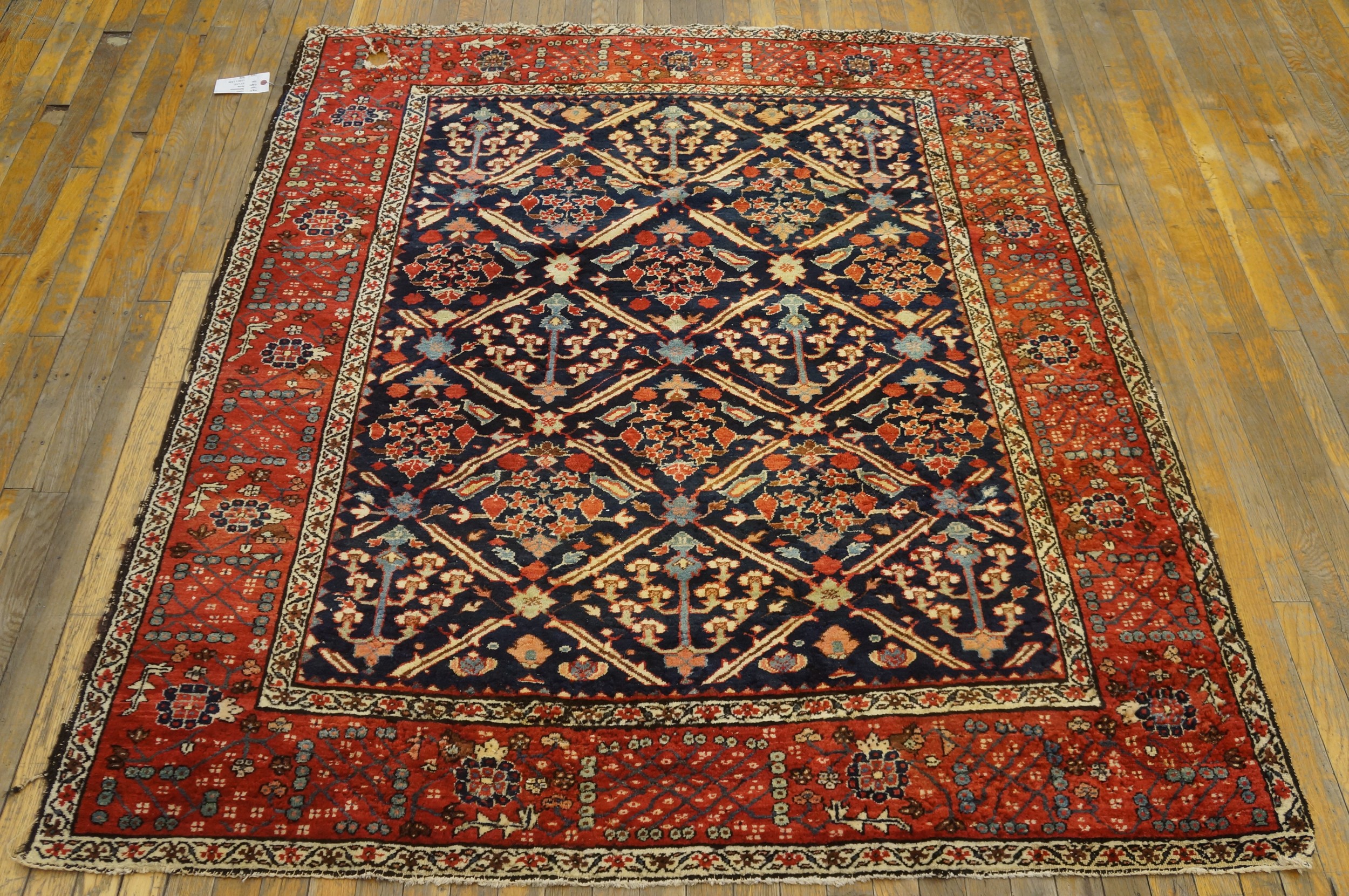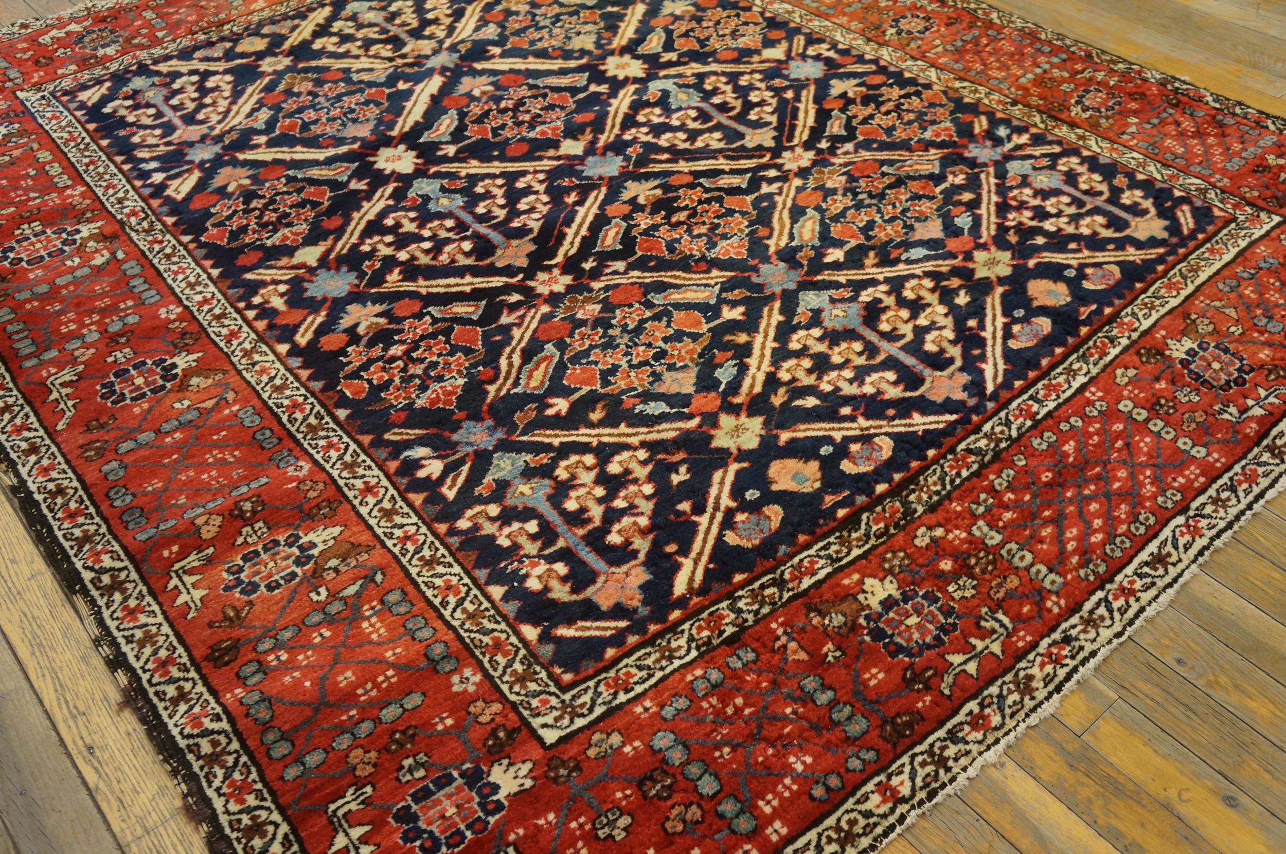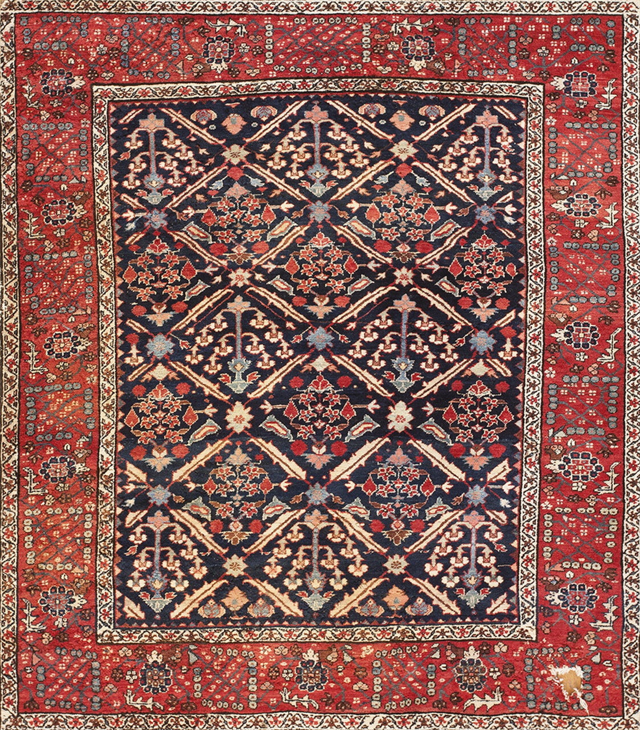 Bakshaish rugs from this early period are highly prized by collectors for their primitive boldness and exceptional wool quality. This piece represents a significant historical document of 19th-century weaving, offering both enduring durability and sophisticated visual appeal, making it a valuable addition to any collection of antique rugs.