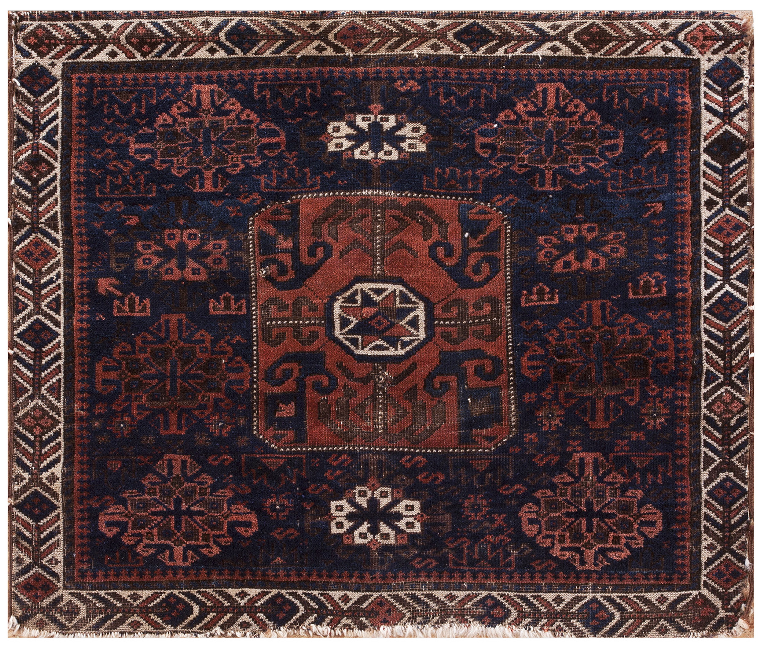 Antique Baluch Geometric Medallion Hand Knotted Pile Rug, Circa Date: 1900s. This exquisite example of tribal weaving showcases the deep, saturated color palette characteristic of baluch rugs. Woven by nomadic or semi-nomadic peoples, these pieces are prized for their authenticity and dense, durable pile, reflecting centuries of tradition.
