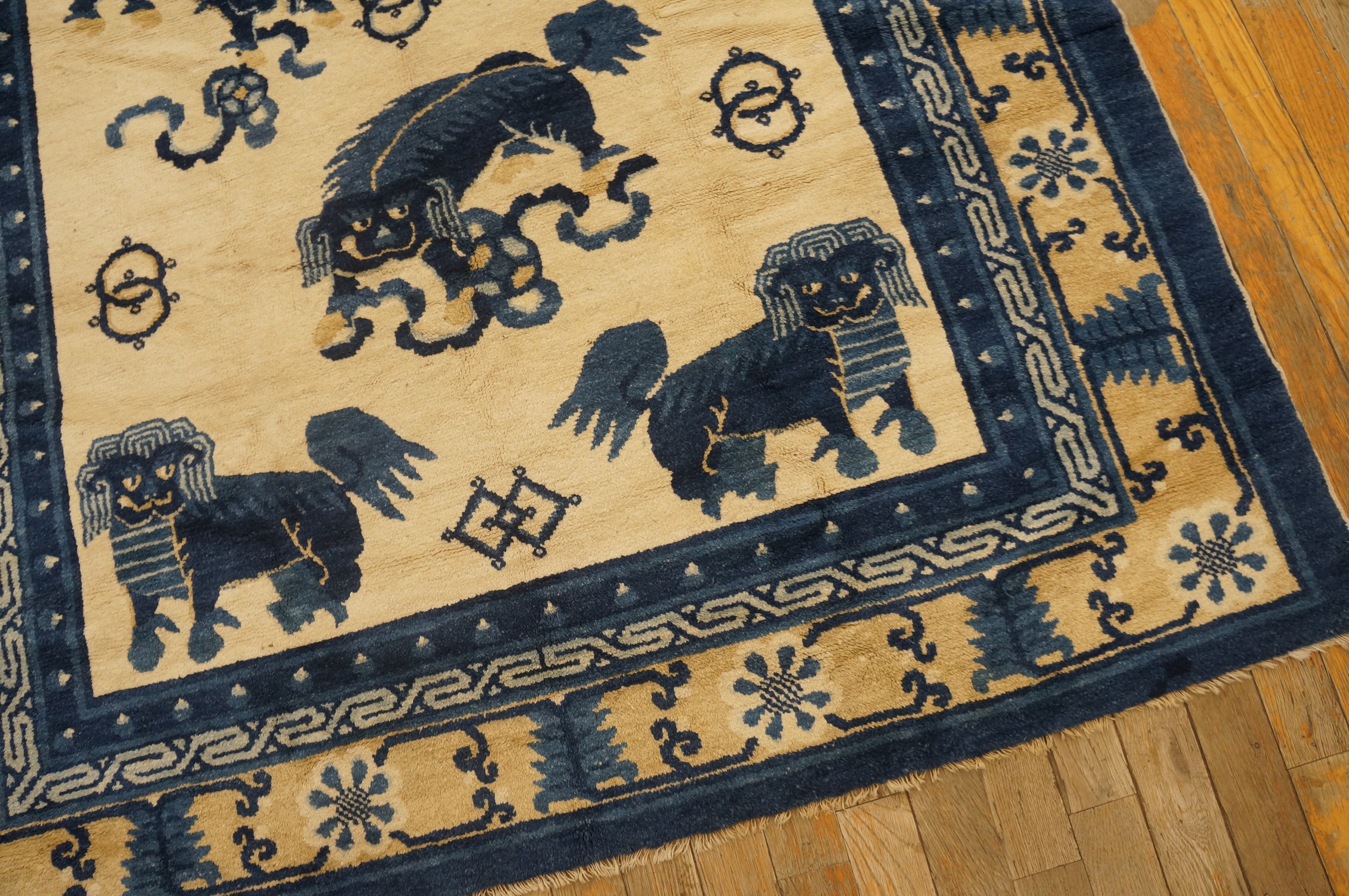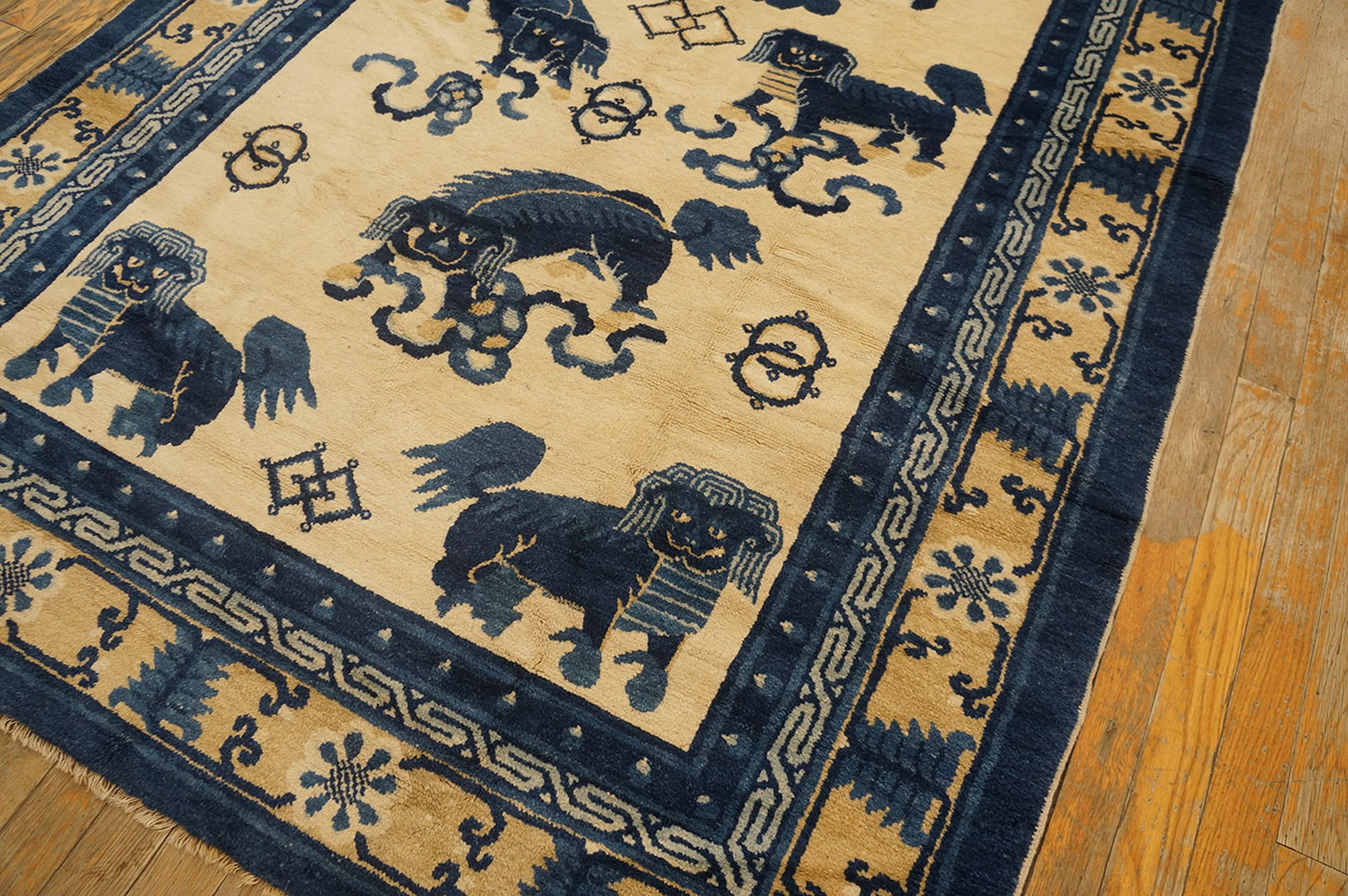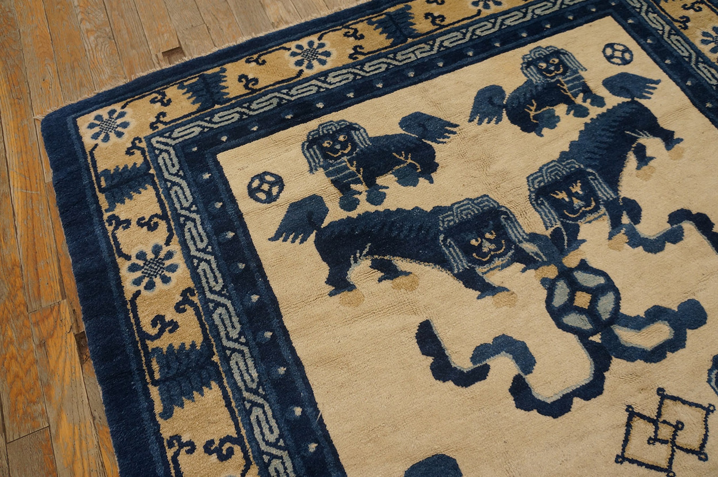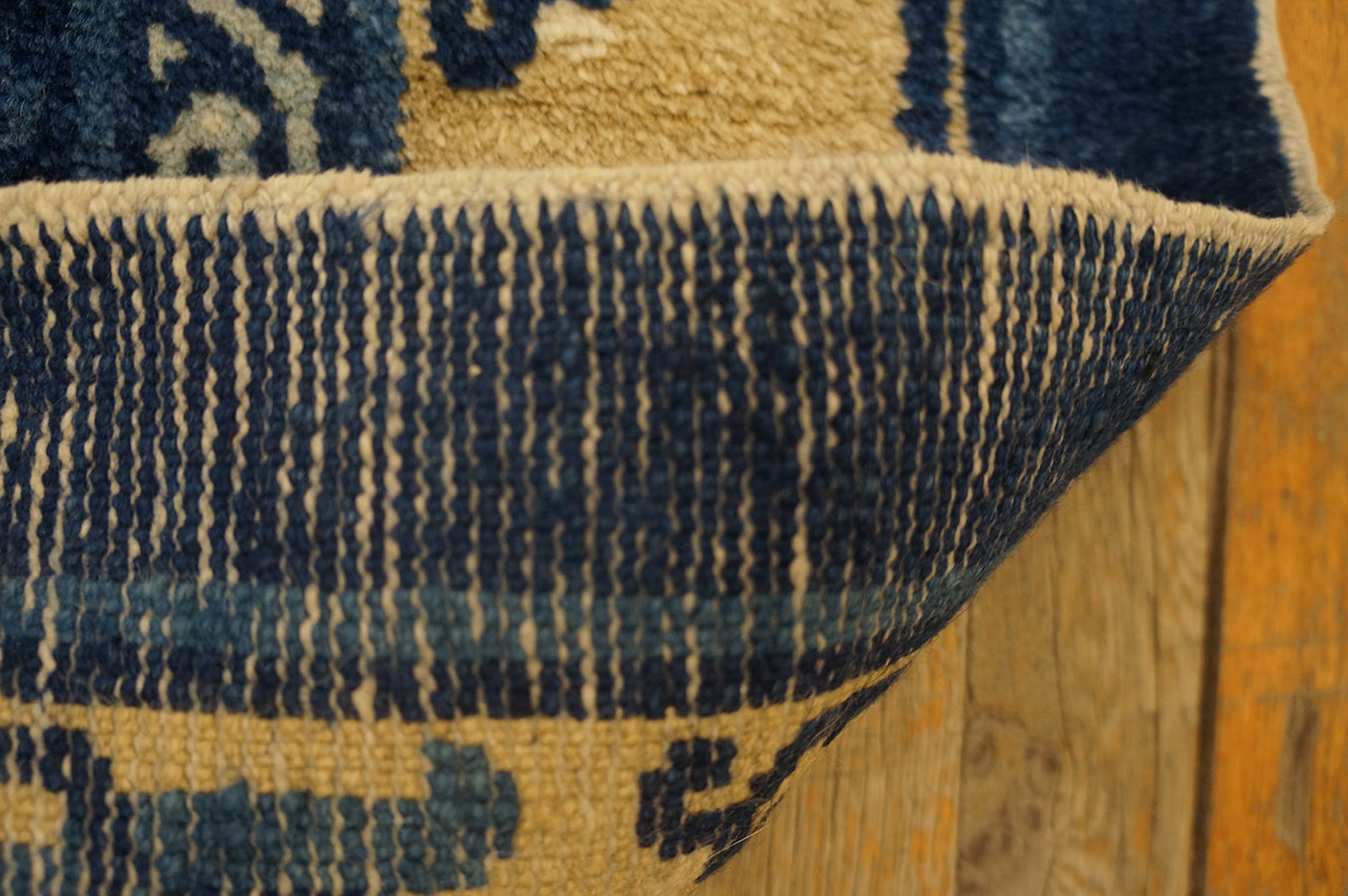 Antique Chinese – Ningxia Small Scatter Size Wool Ivory Rug, Country of Origin: China, Circa Date: 1880s. This exceptional late 19th-century weaving represents a superb example of antique rugs from the imperial tradition, characterized by its striking graphic clarity and use of limited, powerful color palettes.