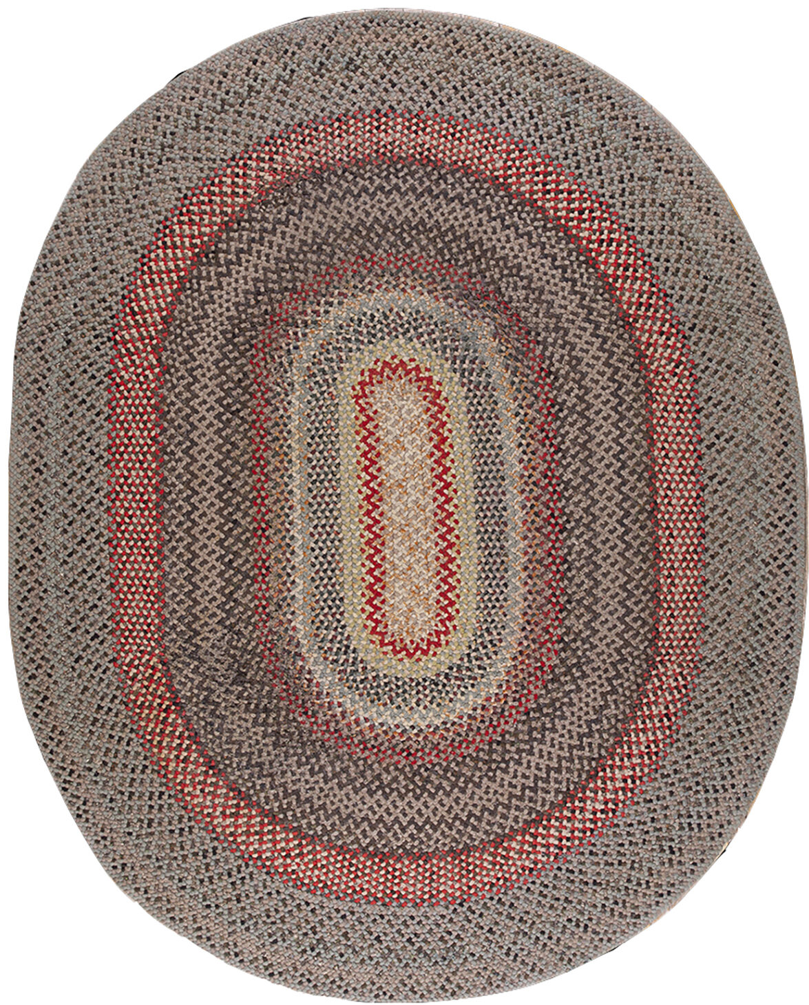 Antique Braided American Allover Rug, Country of Origin: American USA Rugs, Circa Date: 1940s. This exceptional piece exemplifies the enduring quality of American USA Rugs from the mid-20th century. Its distinctive oval form and robust texture offer a charming, grounded aesthetic, moving beyond traditional pile weaving to embrace a rustic, yet highly durable, domestic style.