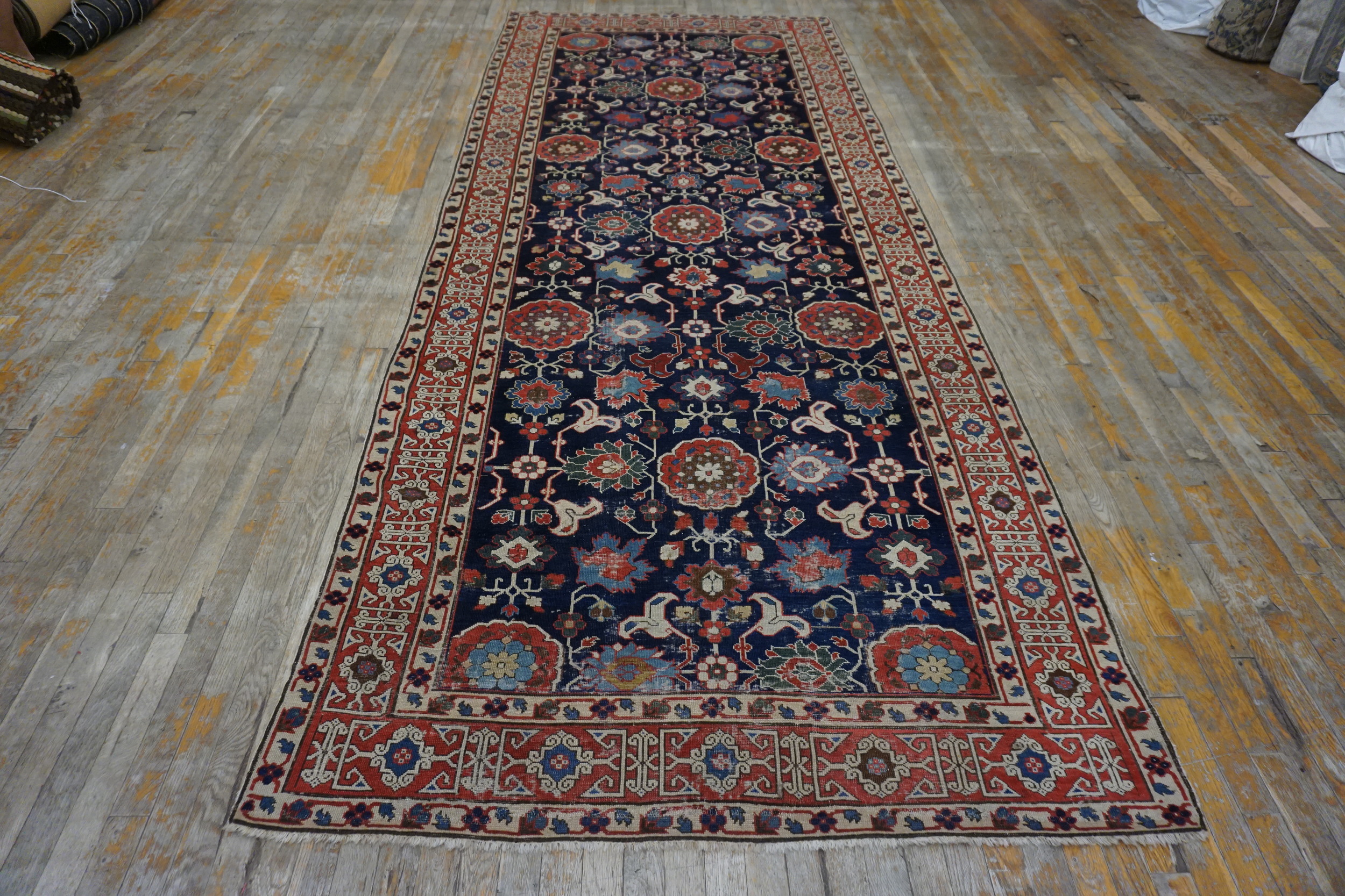 Woven specifically as a hallway runner, its narrow, elongated dimensions are perfectly suited for long corridors or stair landings, providing both historical elegance and practical utility. This rare format, combined with its age and complexity, makes it a highly desirable acquisition for collectors seeking authentic, early Caucasian textiles.