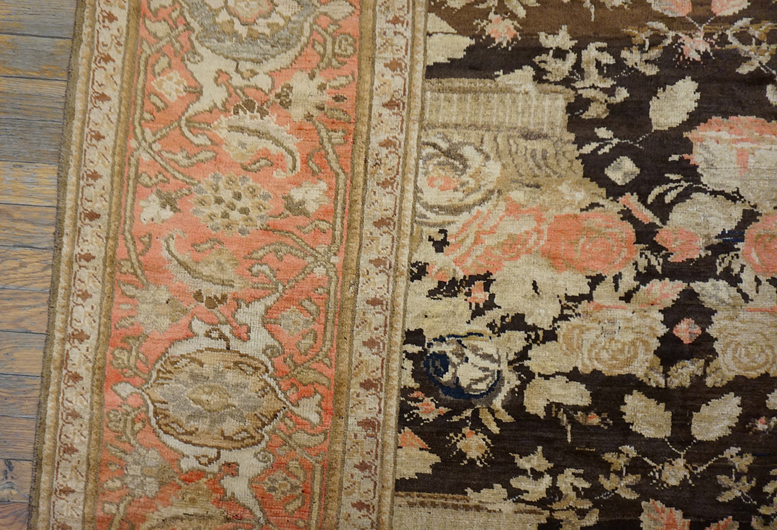 Antique Caucasian – Karabagh Room Size Wool Brown Rug, Circa Date: 1900s. This exceptional example of antique rugs from the Karabagh region showcases the area’s unique synthesis of traditional Caucasian structure with sophisticated European design influences prevalent at the turn of the century.