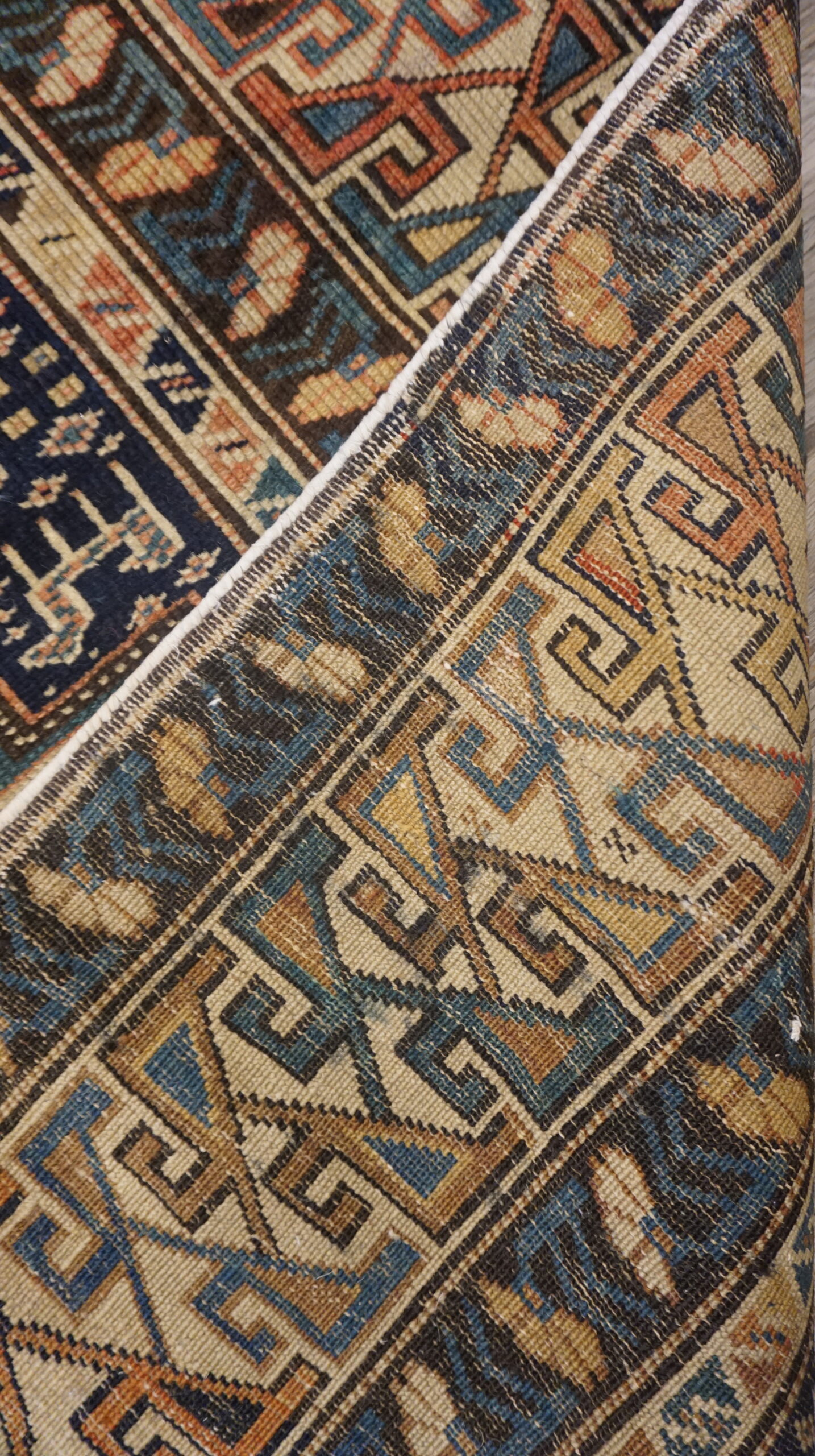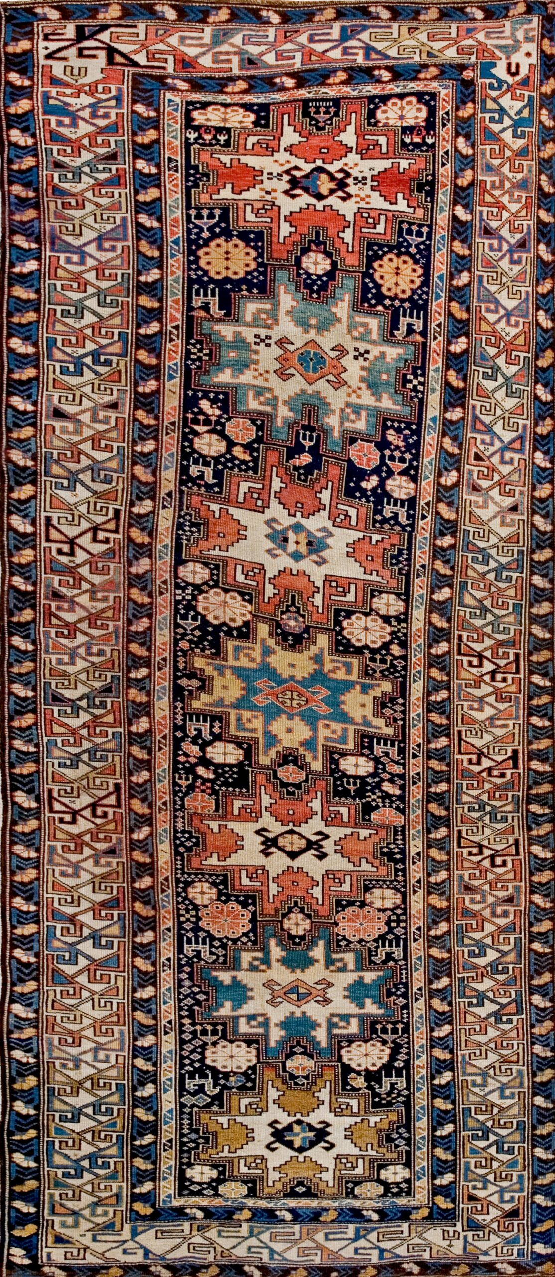 Antique Caucasian – Shirvan Hallway Runner Wool Blue Rug, Country of Origin: Caucasus, Circa Date: 1890s. This exceptional piece represents the finest tradition of antique rugs from the late 19th century. Its dense wool pile and geometric precision immediately identify it as a product of the Caucasian weaving centers.