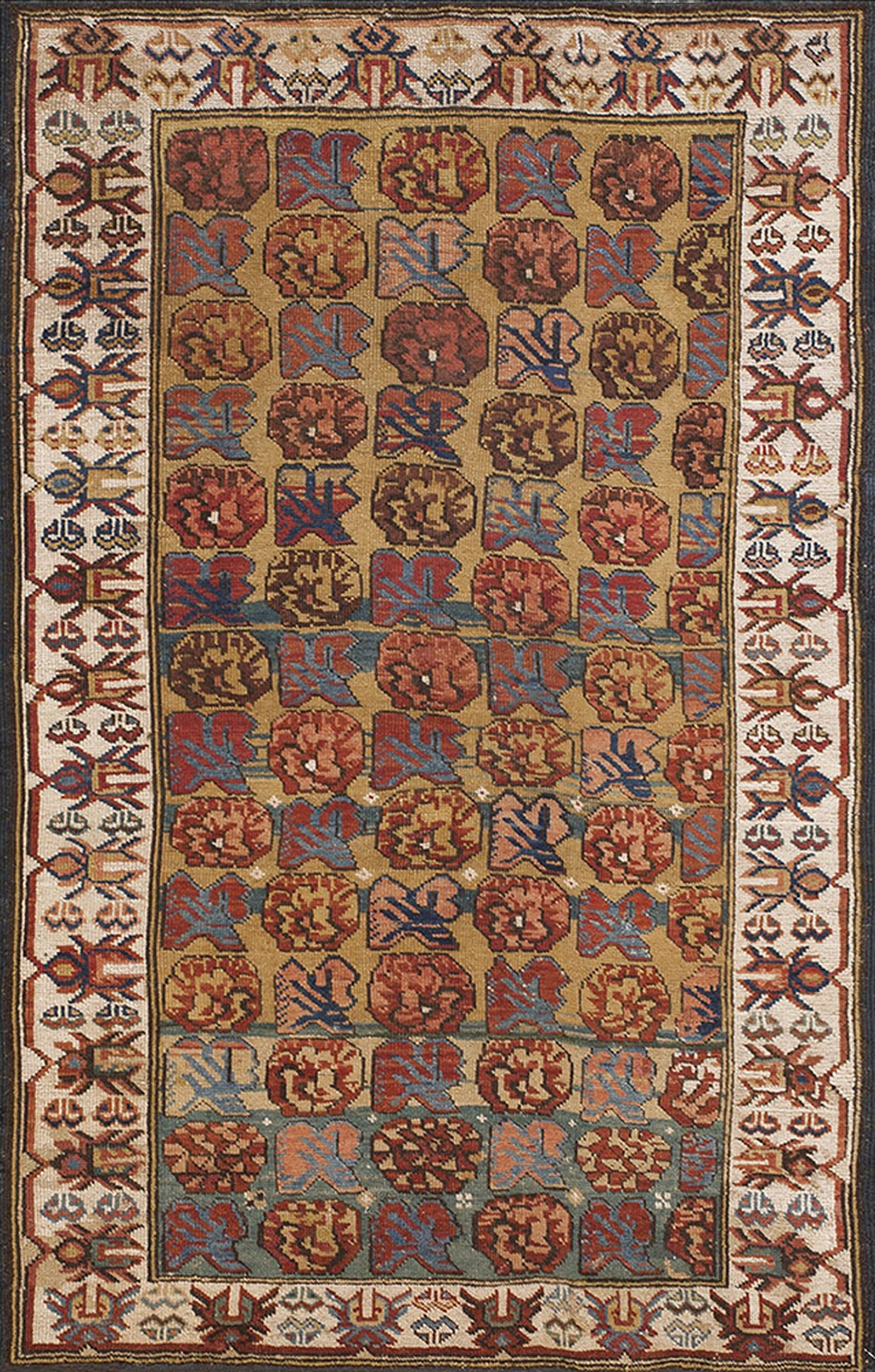 Antique Caucasian – Russia Knotted Rug, Circa Date: 1890s. This exceptional example of 19th-century weaving from the Zeichur region of the Caucasus Mountains represents the pinnacle of tribal textile art. It is a vital piece within the history of antique rugs, showcasing the technical precision and bold design sensibilities characteristic of the Quba district.