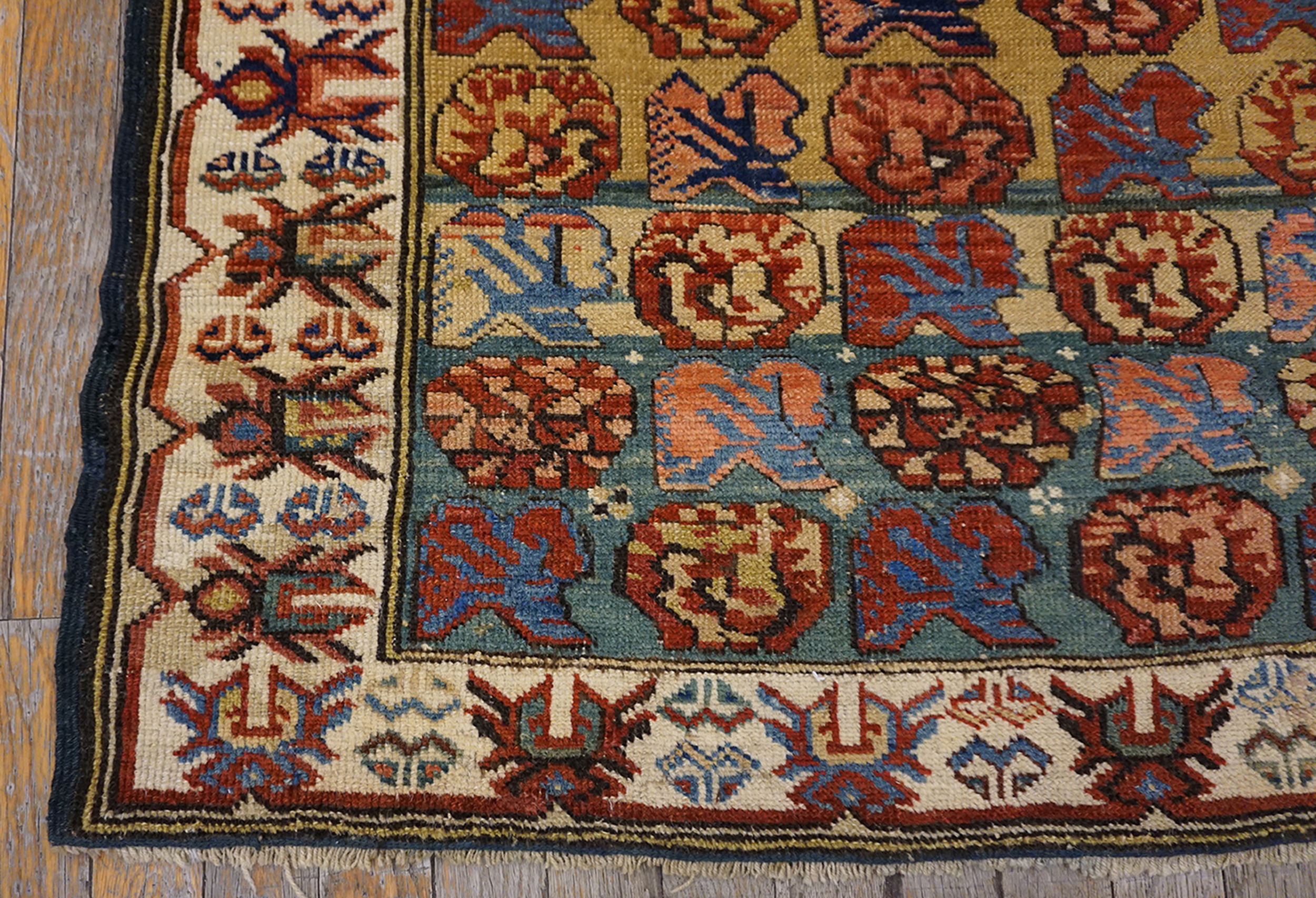 The densely packed field features the characteristic stylized rosette or “Zeichur blossom” motif, arranged in a highly structured grid. This geometric repetition creates a striking allover pattern that maximizes visual density and impact, typical of the finest nomadic and village weavings from the late 19th century.