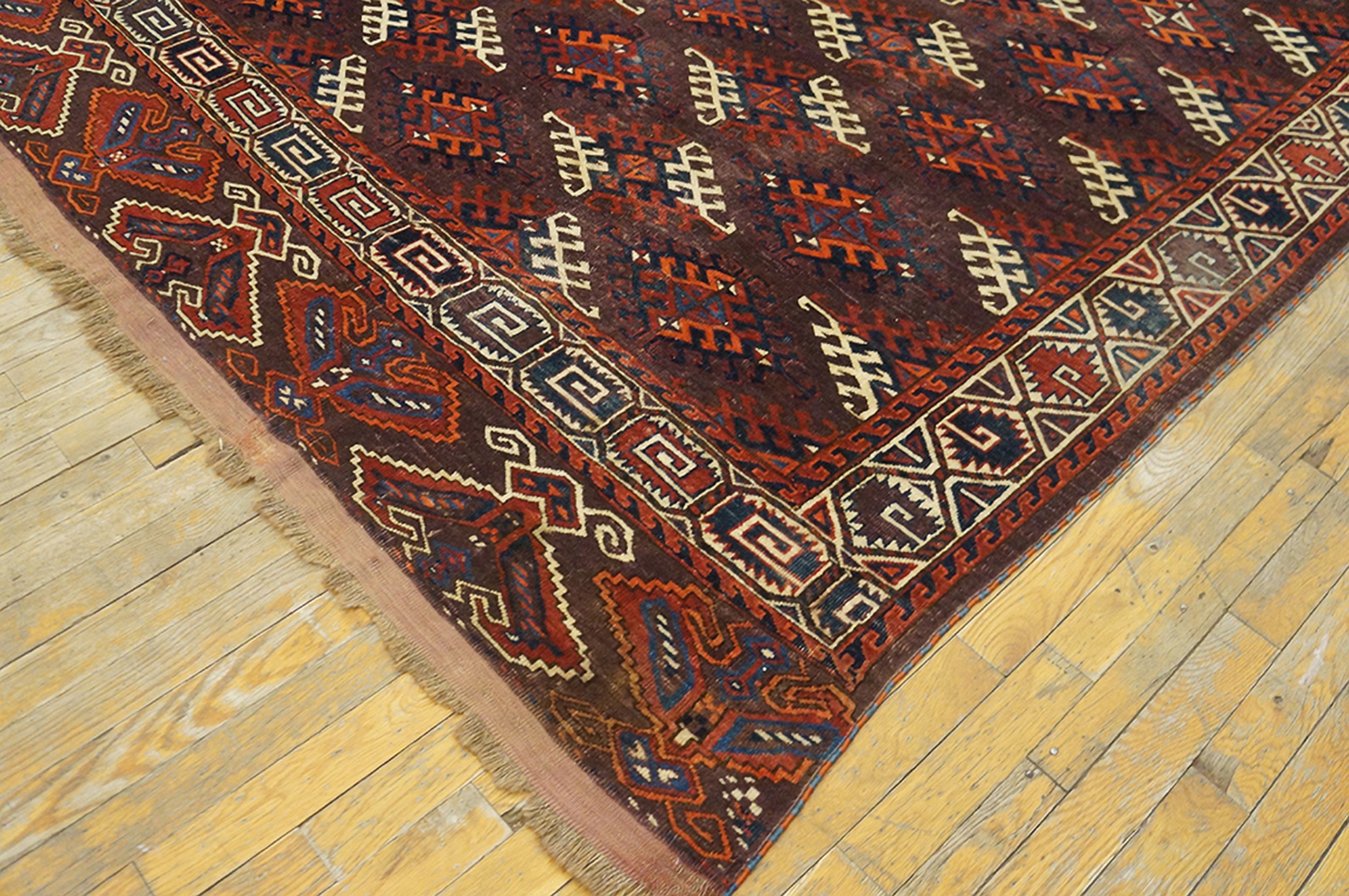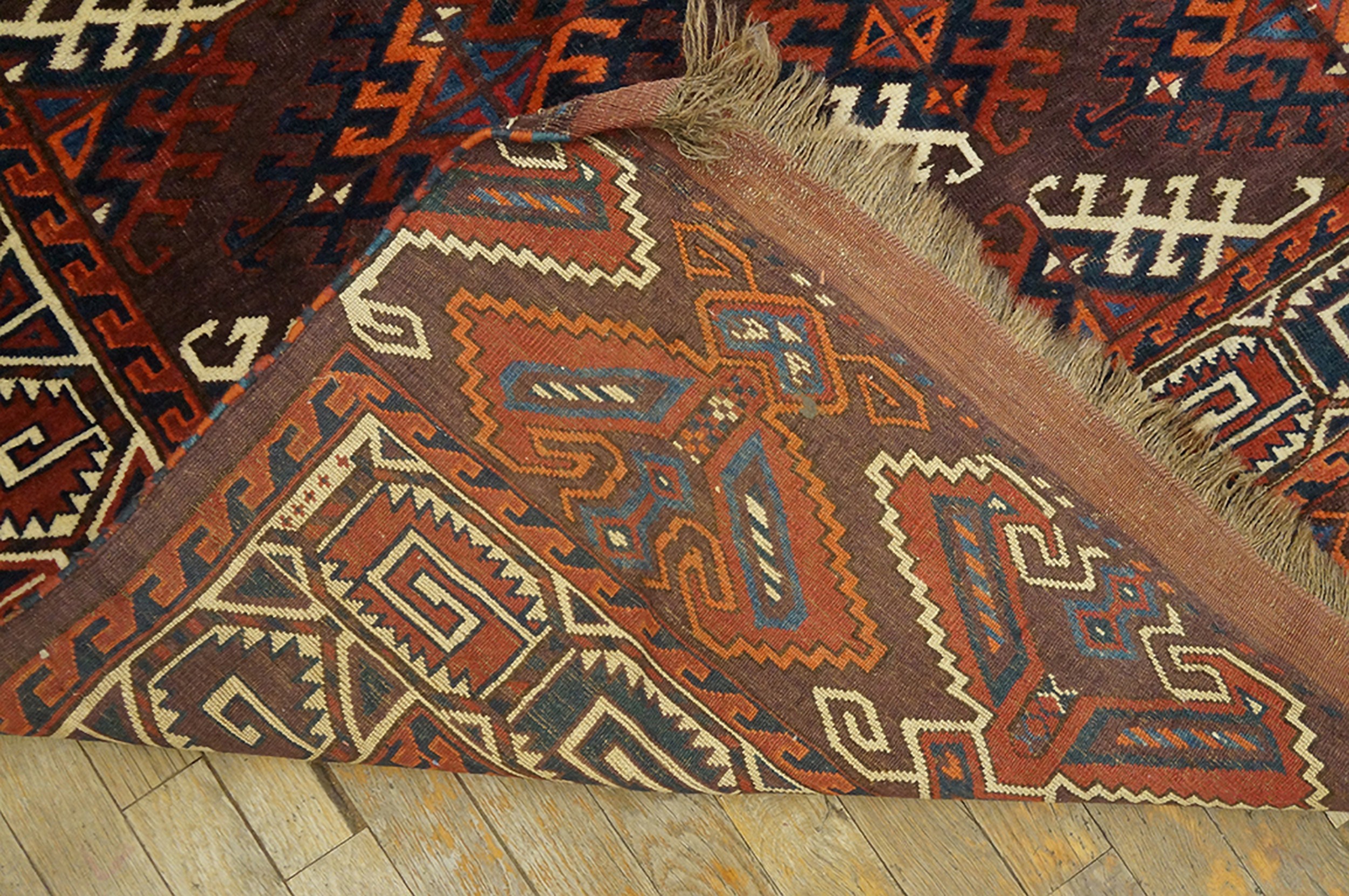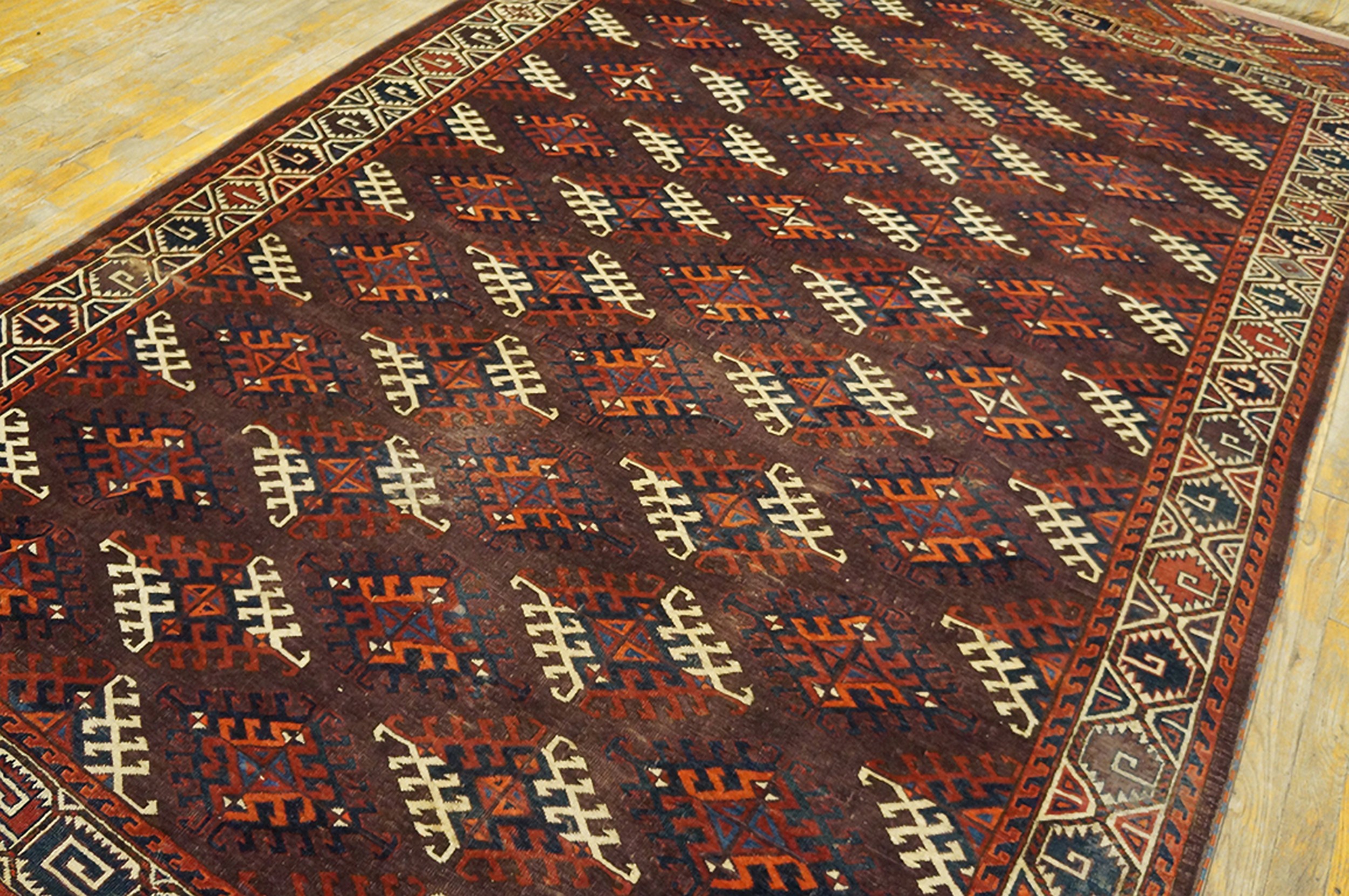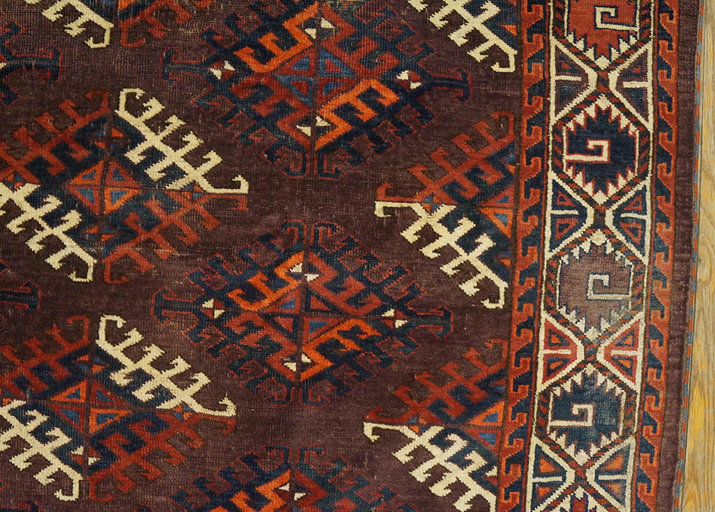While many Turkmen weavings were produced as tent furnishings, this particular scale suggests it was intended for use in a more permanent dwelling, perhaps approaching the dimensions of early room size rugs. Its powerful visual presence and remarkable preservation make it a compelling artifact of nomadic artistry, offering a rare glimpse into the textile traditions of the Transcaspian region.