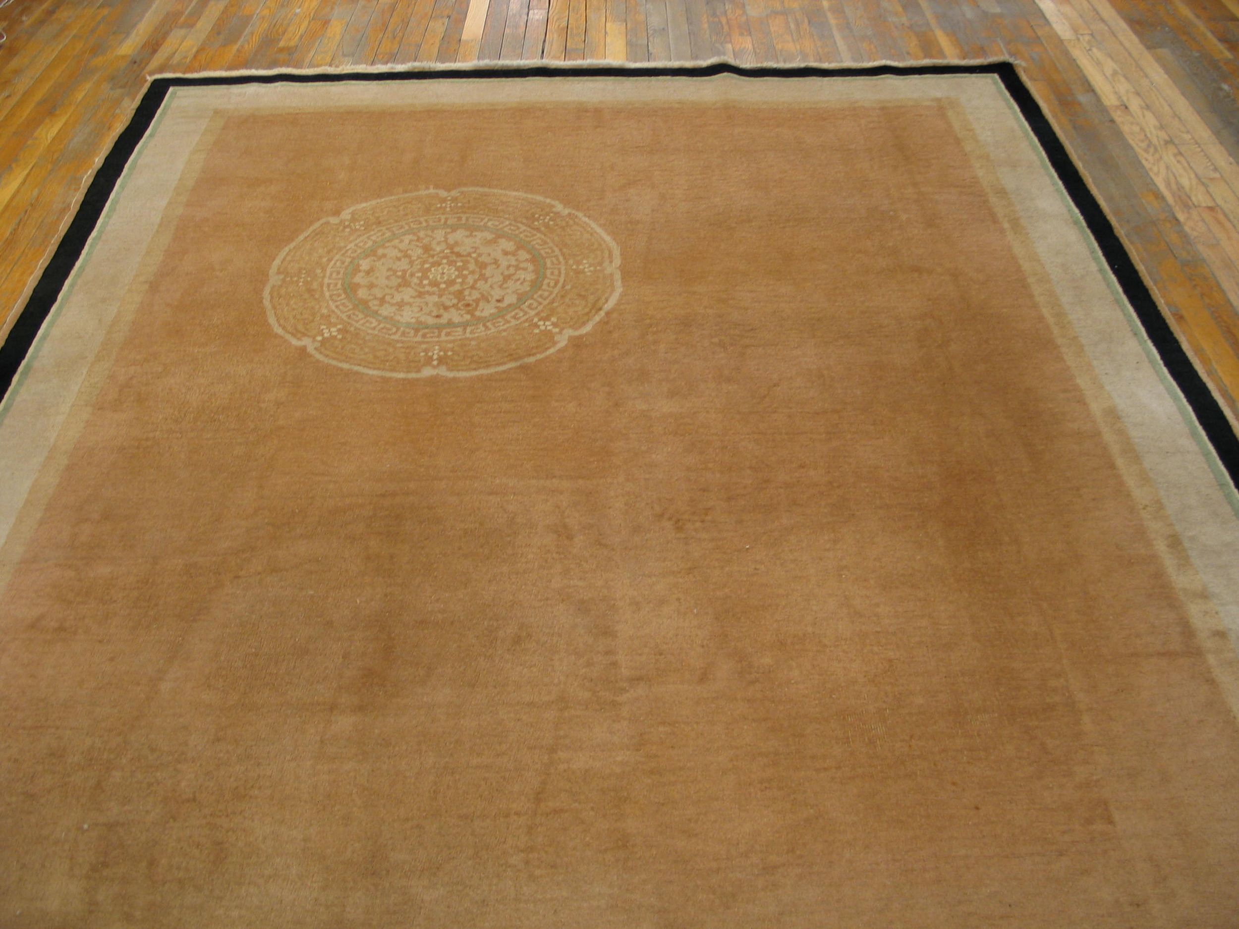 Produced in Chinese rugs workshops during a period of significant artistic modernization, this carpet represents the finest quality of early 20th-century weaving. Its substantial dimensions classify it among the most desirable room size rugs, designed to anchor a sophisticated interior space without overwhelming the surrounding decor. This rug measures approximately 7.08ft x 9.05ft.