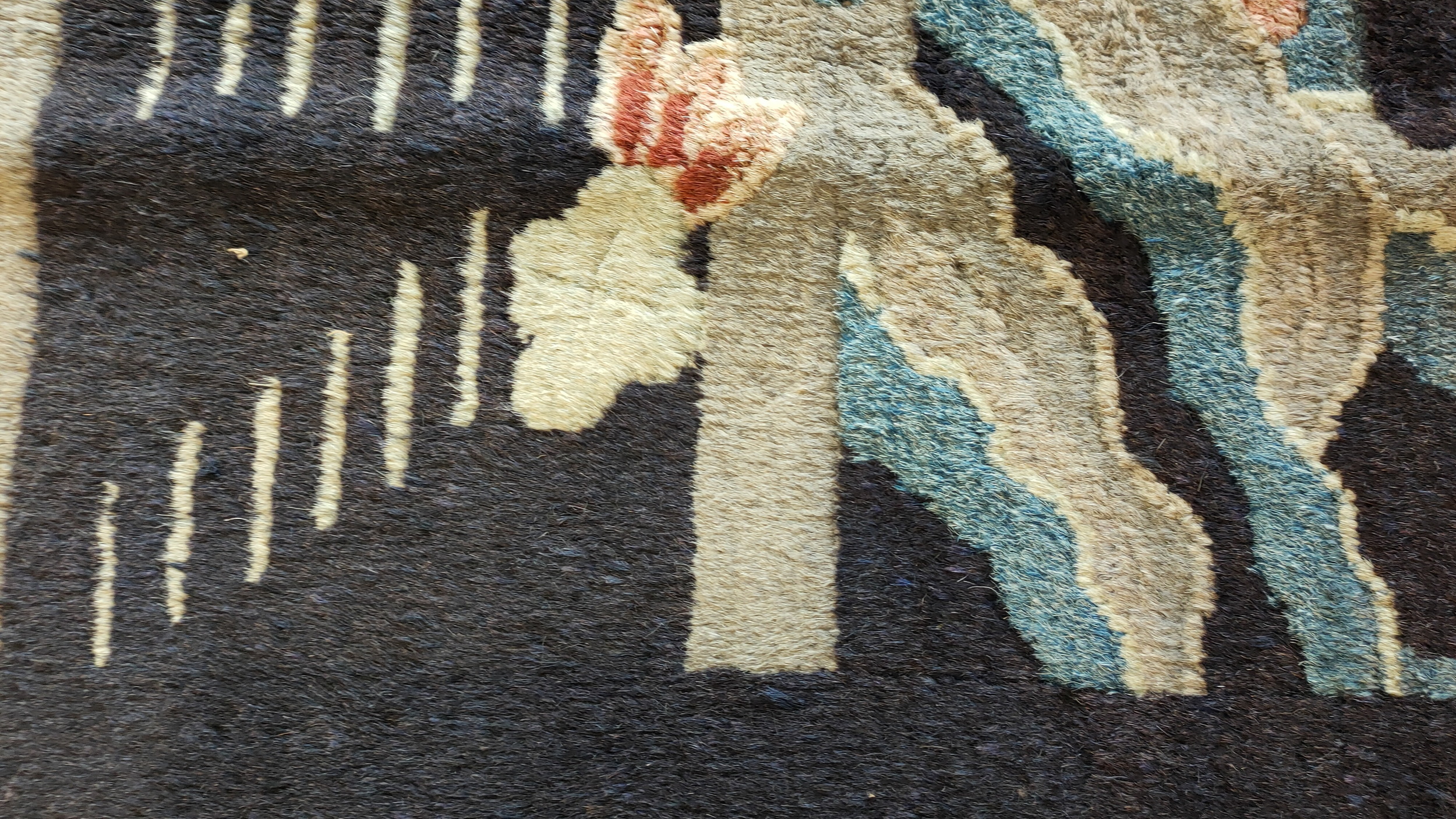 The high pile and expert hand-knotting speak to the quality of Chinese weaving during the 1920s, a time when these decorative pieces were highly sought after internationally. This piece is a superb example of the transitional style, offering both historical integrity and timeless decorative appeal for collectors of fine antique rugs.