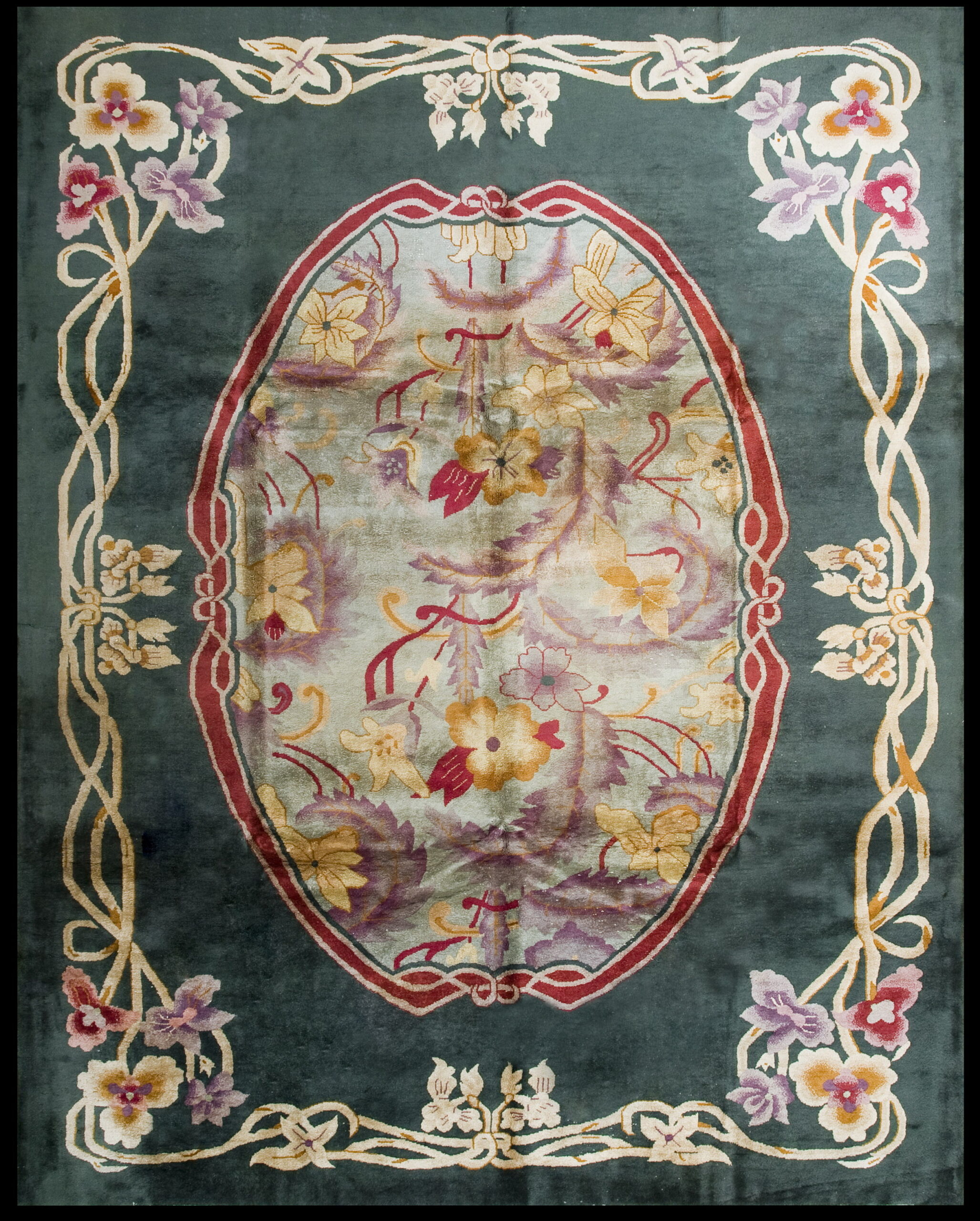 Antique Chinese Art Deco / Art Nouveau Room Size Wool Rug