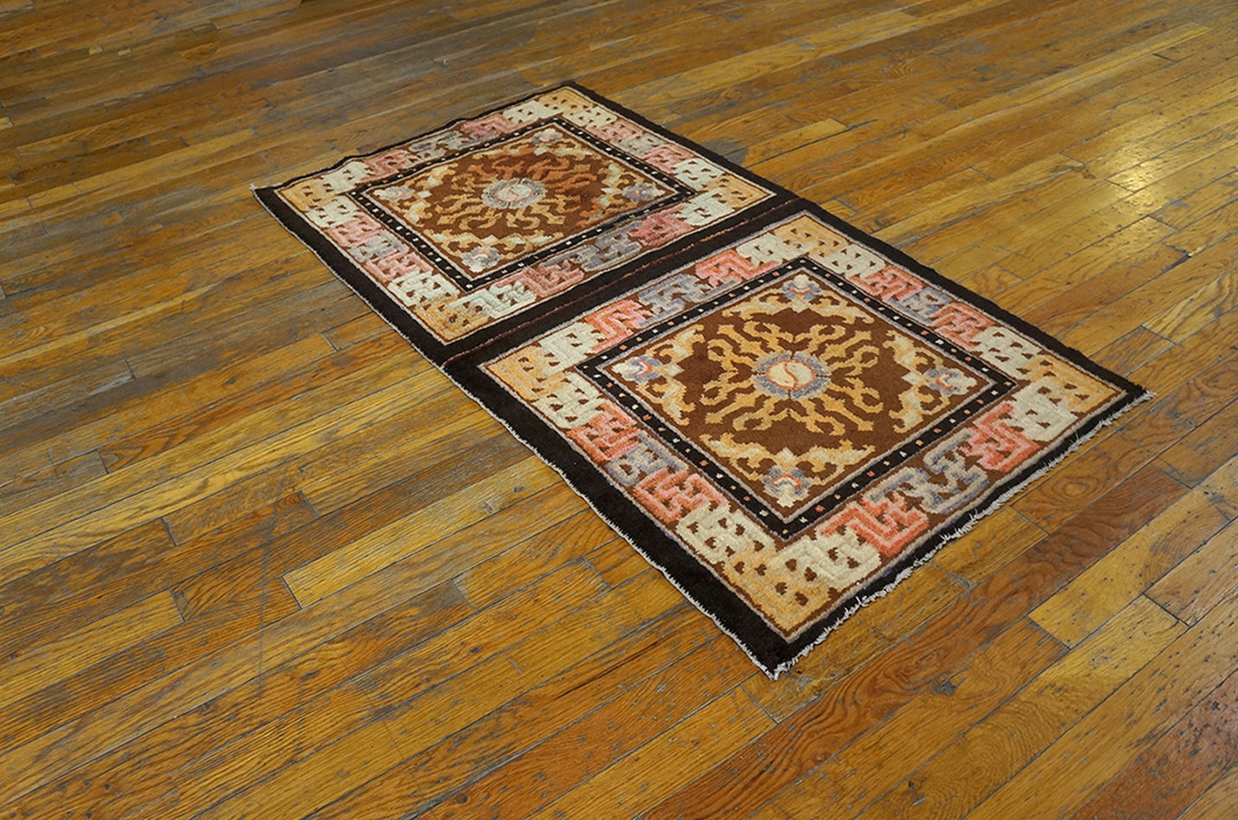 Antique Chinese – Baotou Chinese Brown 1920s Rug, Circa Date: 1920s. This exceptional piece originates from the Baotou region of Inner Mongolia, renowned for producing highly distinctive, small-scale antique rugs during the early 20th century. Its construction and palette reflect the unique artistic confluence of traditional Chinese motifs and the robust, utilitarian wools of the region.
