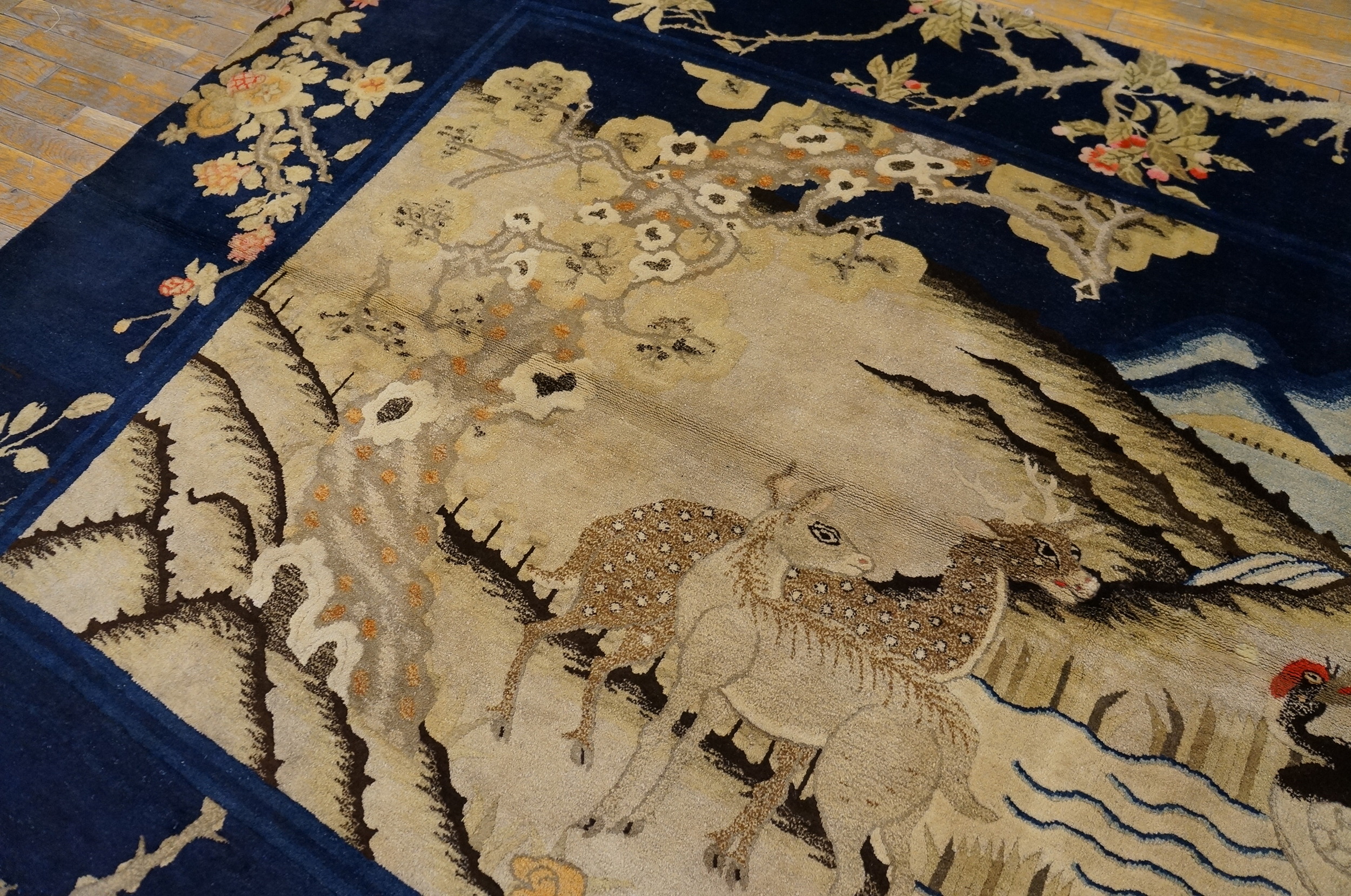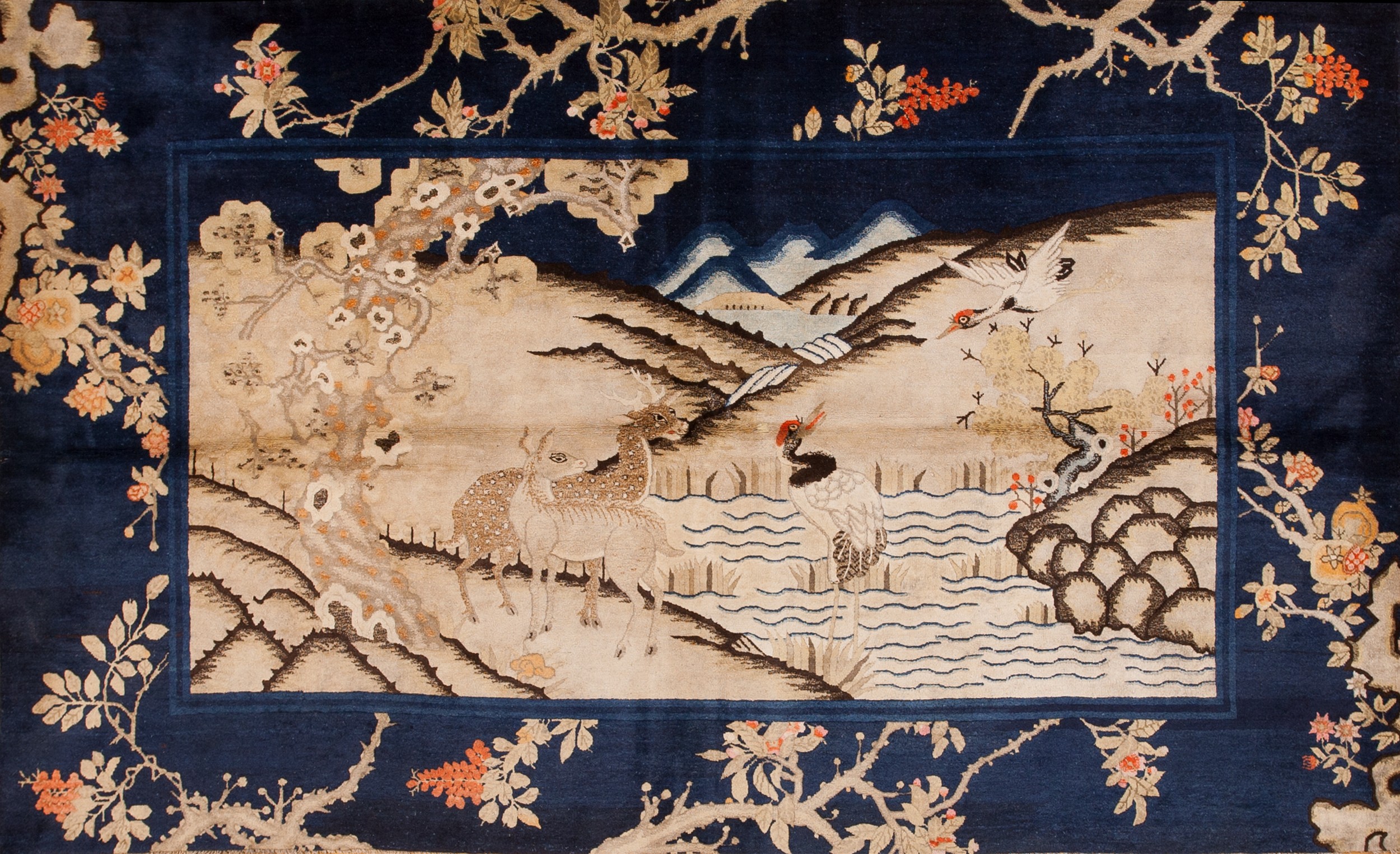 This piece stands as a testament to the enduring artistry of Chinese weaving traditions. Its fine wool pile and complex pictorial design ensure it remains a highly desirable example among collectors of early 20th-century antique rugs, offering both historical depth and unparalleled decorative appeal.